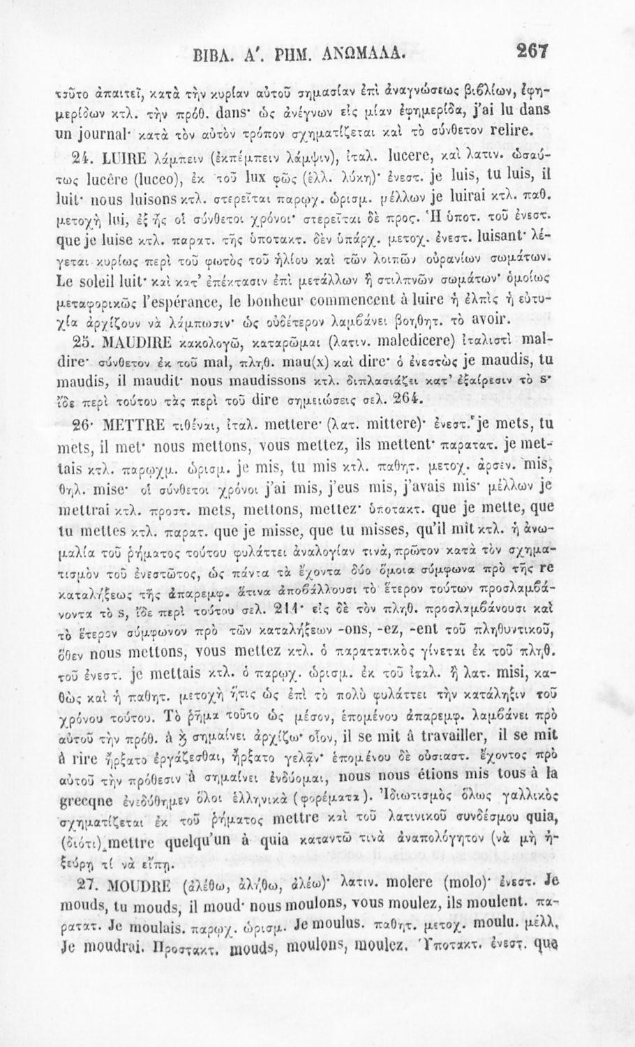 Μαθητικό βοήθημα που περιέχει τους κανόνες γραμματικής της γαλλικής γλώσσας και είναι χωρισμένο σε τεχνολογικό και ετυμολογικό/ορθογραφικό μέρος.