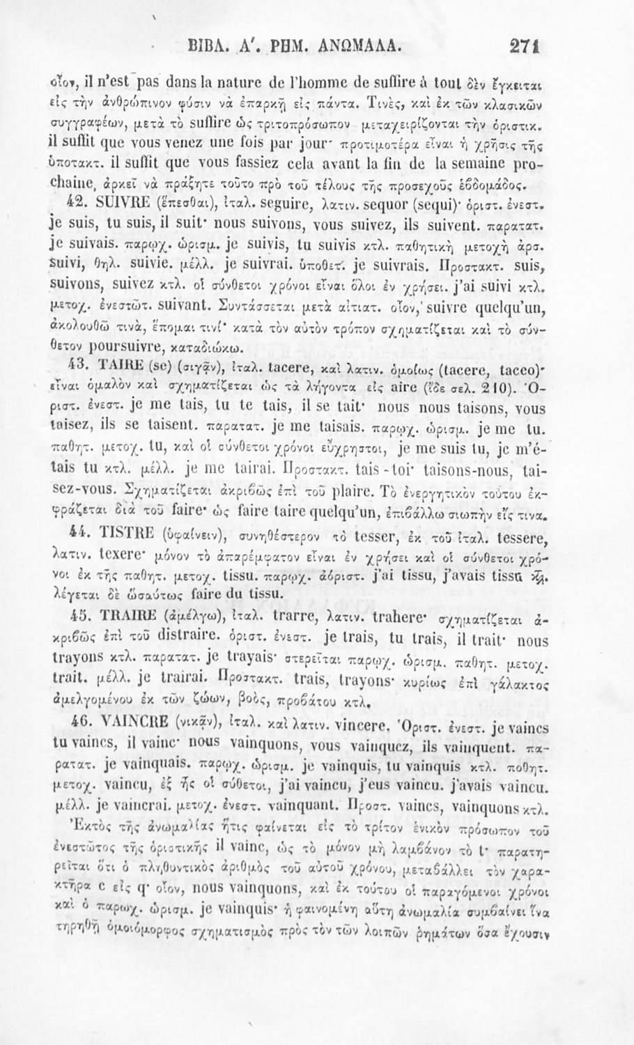 Μαθητικό βοήθημα που περιέχει τους κανόνες γραμματικής της γαλλικής γλώσσας και είναι χωρισμένο σε τεχνολογικό και ετυμολογικό/ορθογραφικό μέρος.
