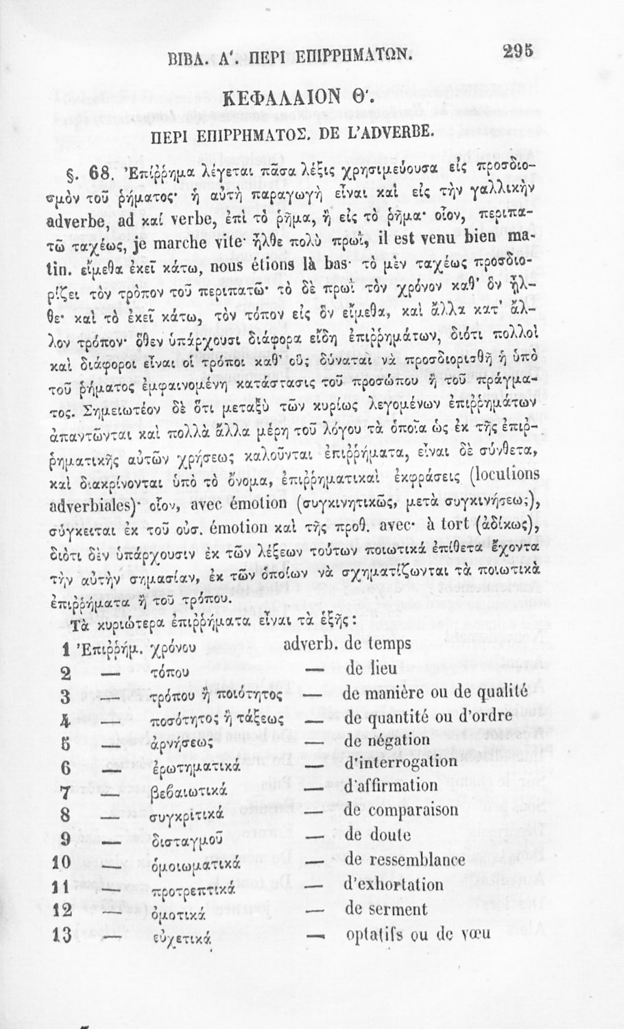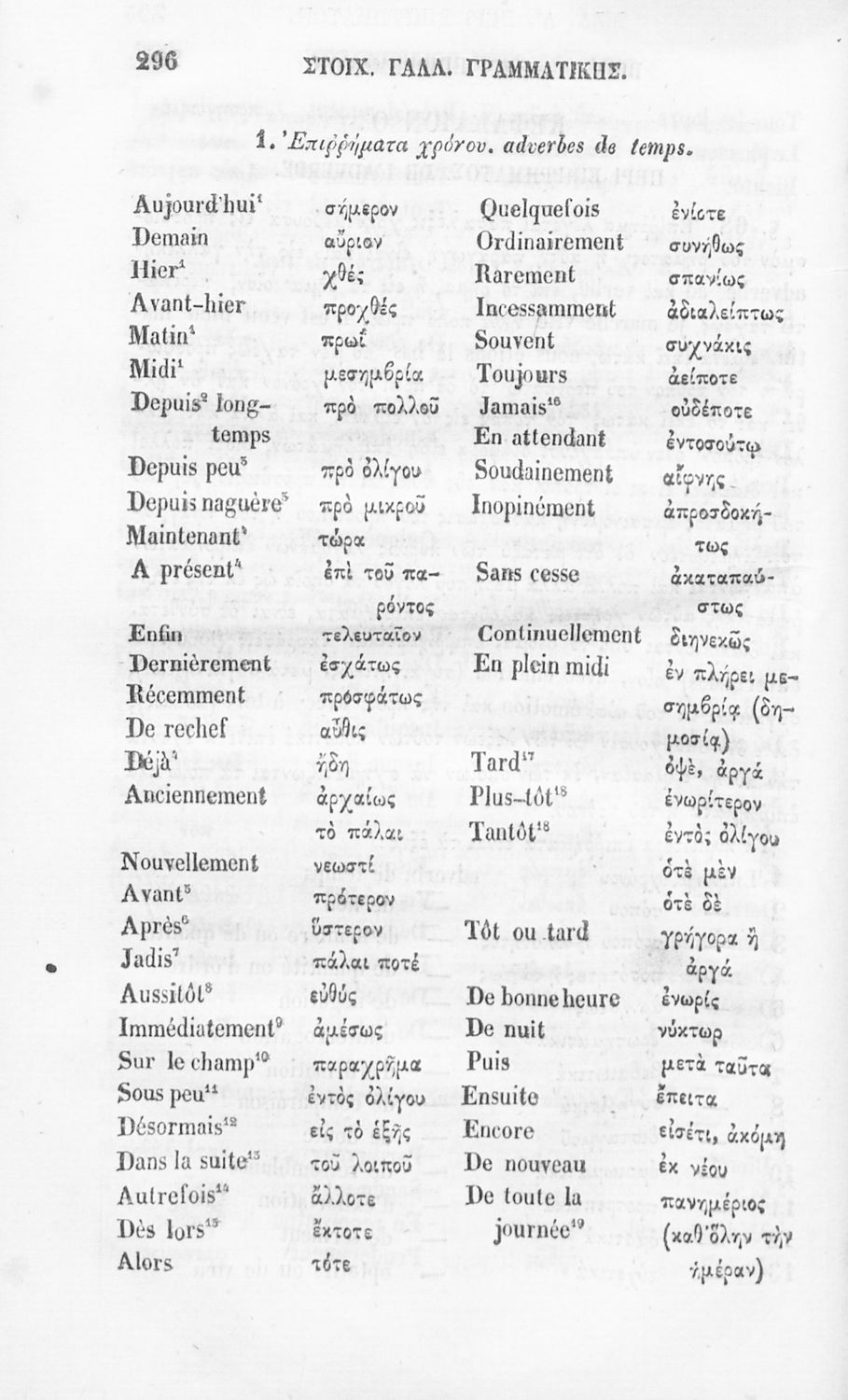 Μαθητικό βοήθημα που περιέχει τους κανόνες γραμματικής της γαλλικής γλώσσας και είναι χωρισμένο σε τεχνολογικό και ετυμολογικό/ορθογραφικό μέρος.