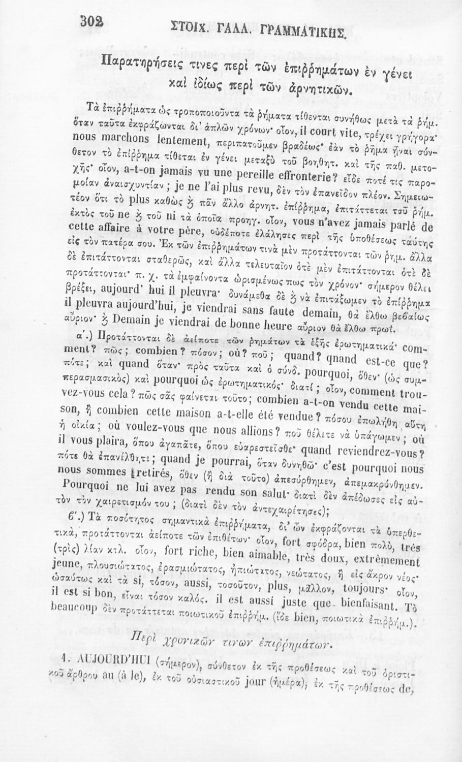 Γραμματική της Γαλλικής γλώσσας για τα Τετρατάξια Γυμνάσια, τη Γ΄ τάξη των Αστικών Σχολείων των Θηλέων και τα Διδασκαλεία της Δημοτικής Εκπαίδευσης που περιλαμβάνει θεωρία, ασκήσεις και λεξιλόγιο.