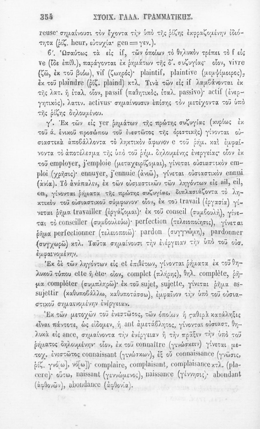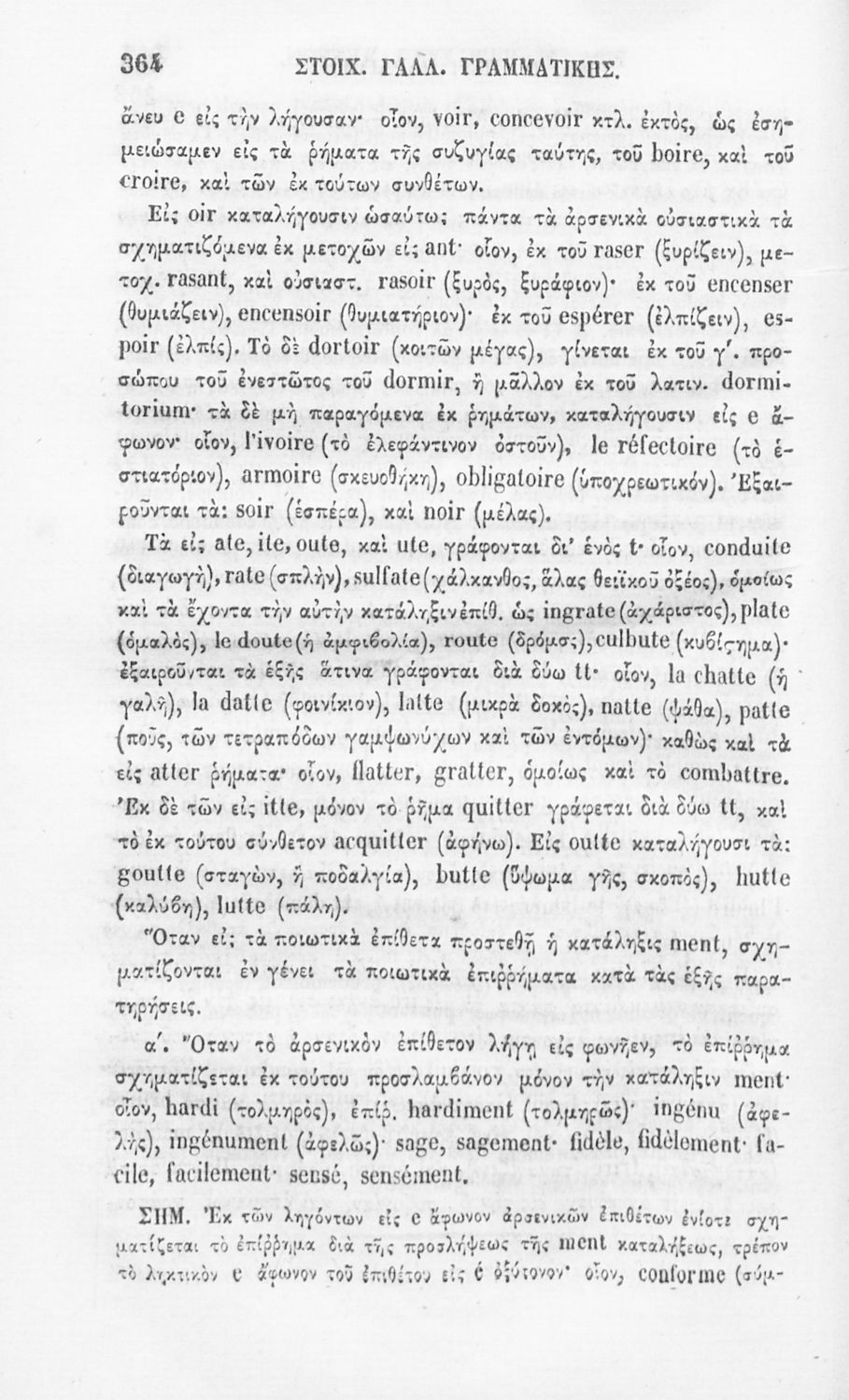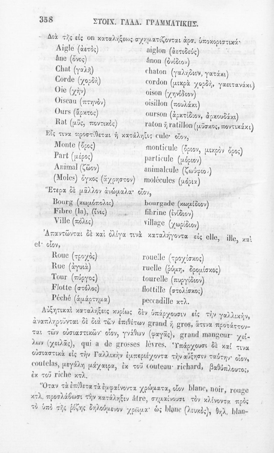 Μαθητικό βοήθημα που περιέχει τους κανόνες γραμματικής της γαλλικής γλώσσας και είναι χωρισμένο σε τεχνολογικό και ετυμολογικό/ορθογραφικό μέρος.