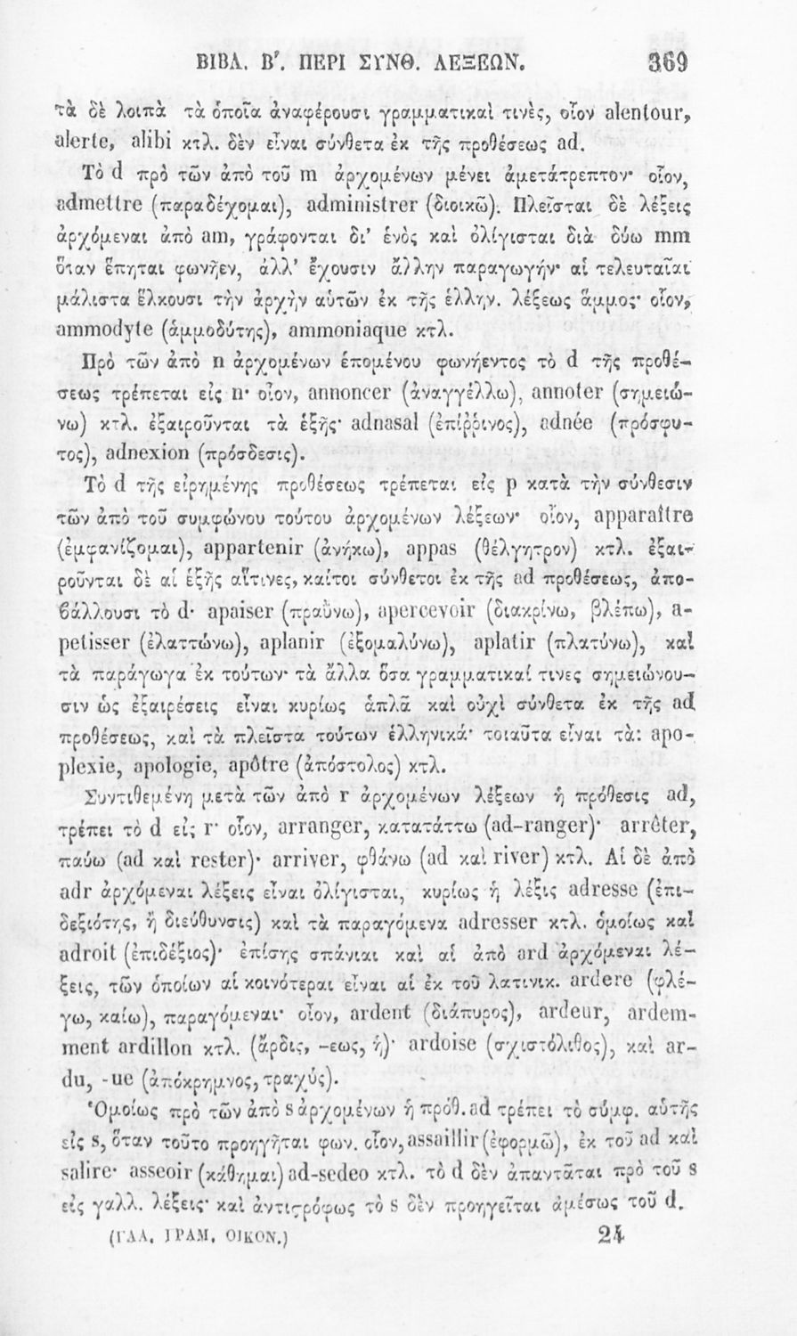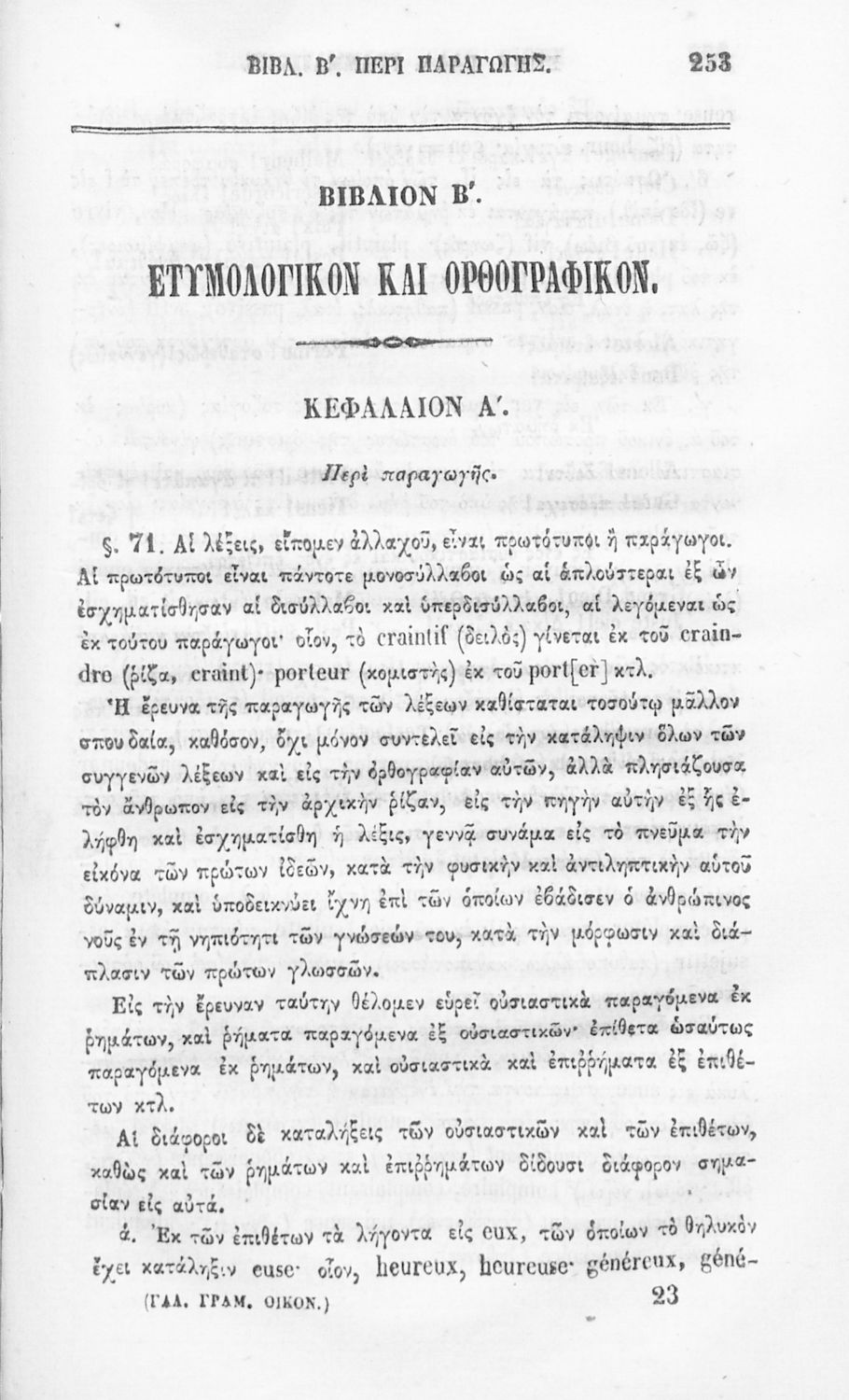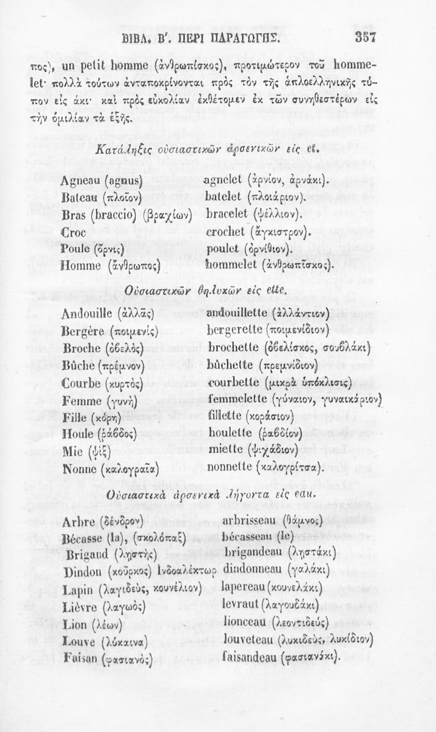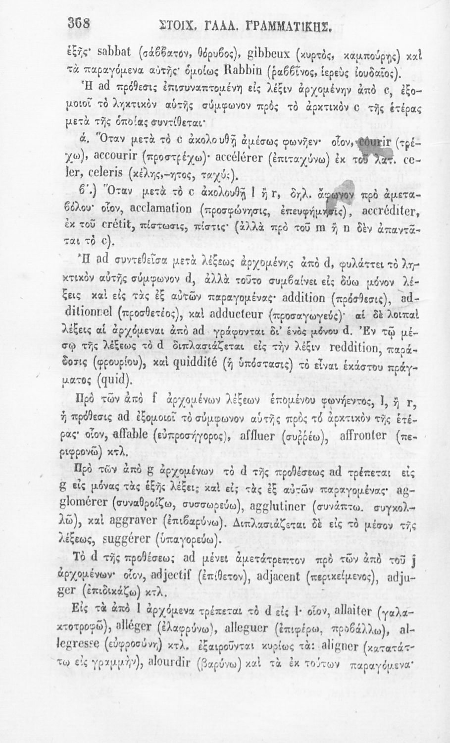 Μαθητικό βοήθημα που περιέχει τους κανόνες γραμματικής της γαλλικής γλώσσας και είναι χωρισμένο σε τεχνολογικό και ετυμολογικό/ορθογραφικό μέρος.
