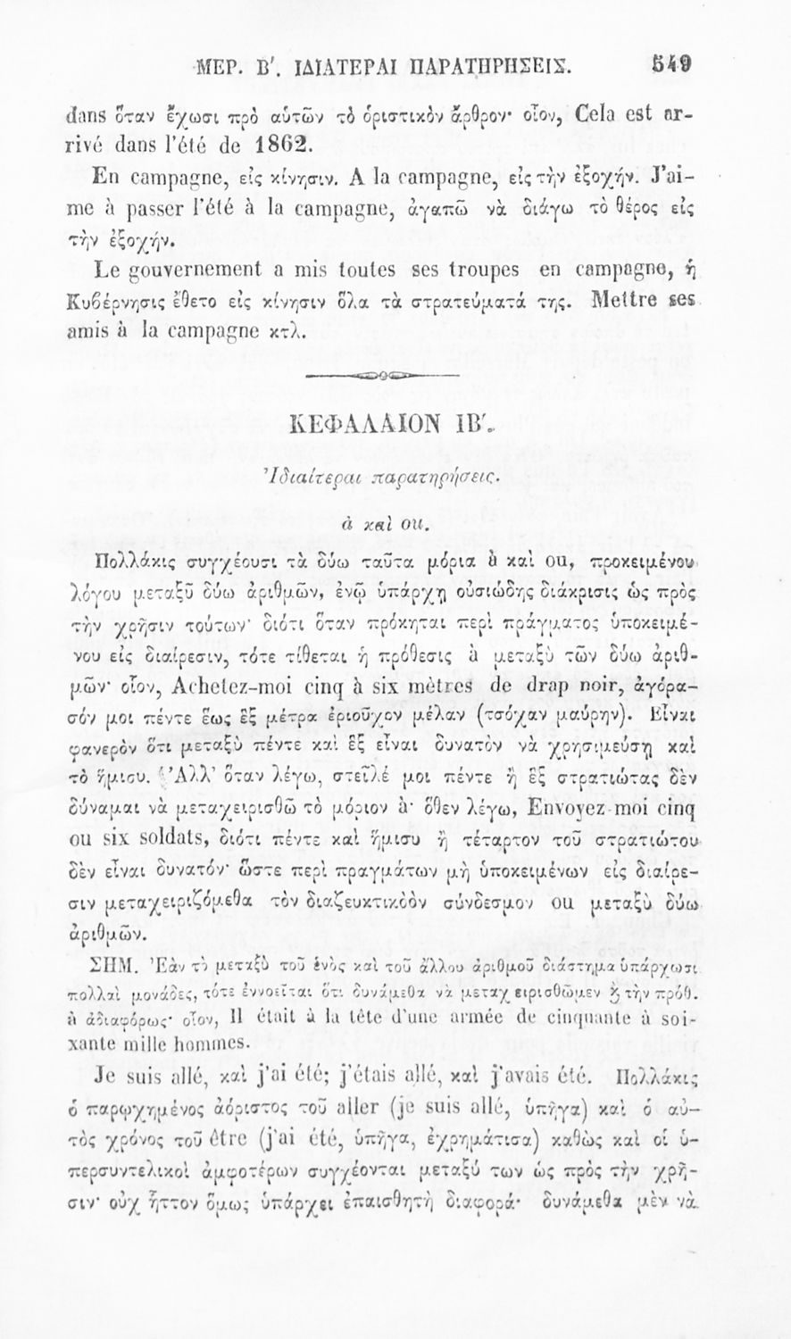 Γραμματική της Γαλλικής γλώσσας για τα Τετρατάξια Γυμνάσια, τη Γ΄ τάξη των Αστικών Σχολείων Θηλέων και τα Διδασκαλεία της Δημοτικής Εκπαίδευσης που περιλαμβάνει θεωρία, ασκήσεις και λεξιλόγιο.