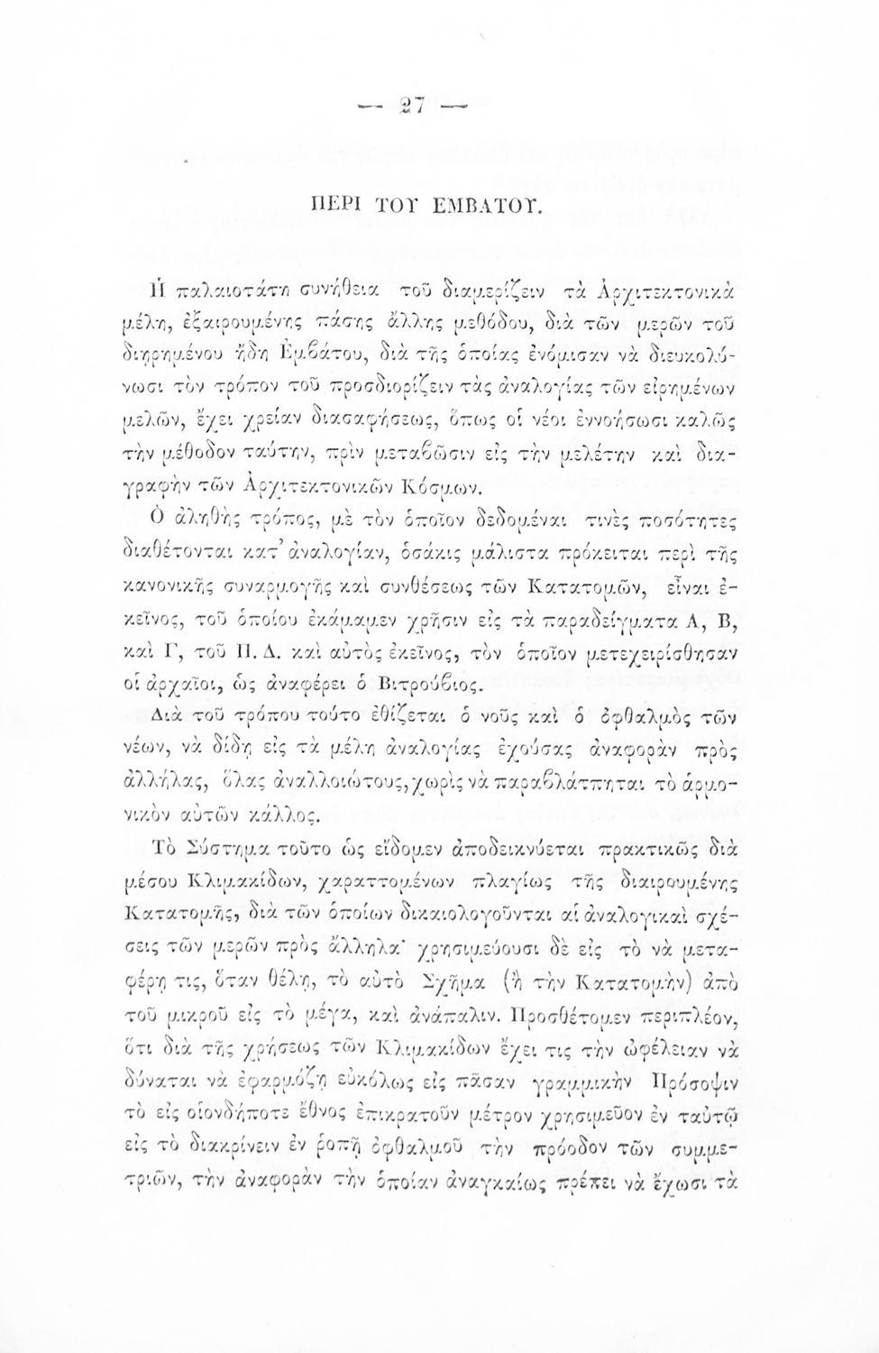 LDR 01154 2200193 4500 035 ## _a02-03027 040 ## _aΕλληνικό Λογοτεχνικό και Ιστορικό Αρχείο 041 ## _ael 100 ## _aΙωάννης Χρόνης 110 ## _a1862.39 245 0# _aΕγχειρίδιον αστυκής αρχιτεκτονικής προς χρήσιν των φοιτητών του εν Κερκύρα Ιονίου Γυμνασίου και Λυκείου 260 ## _aΑθήνα _bΤυπογραφείο Η Ιονία _c1862 300 ## _a78 _bΣκίτσα (ασπρόμαυρα), Σχεδιαγράμματα (ασπρόμαυρα) 520 ## _aΣχολικό εγχειρίδιο το οποίο προοριζόταν για τη διδασκαλία στοιχείων αστικής αρχιτεκτονικής στους μαθητές του Ιονίου Γυμνασίου και Λυκείου. 521 ## _aΙόνιο Γυμνάσιο / Λύκειο 522 ## _aΕλλάδα 546 ## _aΚαθαρεύουσα 563 ## _aΣκληρό Εξώφυλλο 650 #4 _aΑετώματα _aΑρχιτεκτονική _aΙχνογραφίες