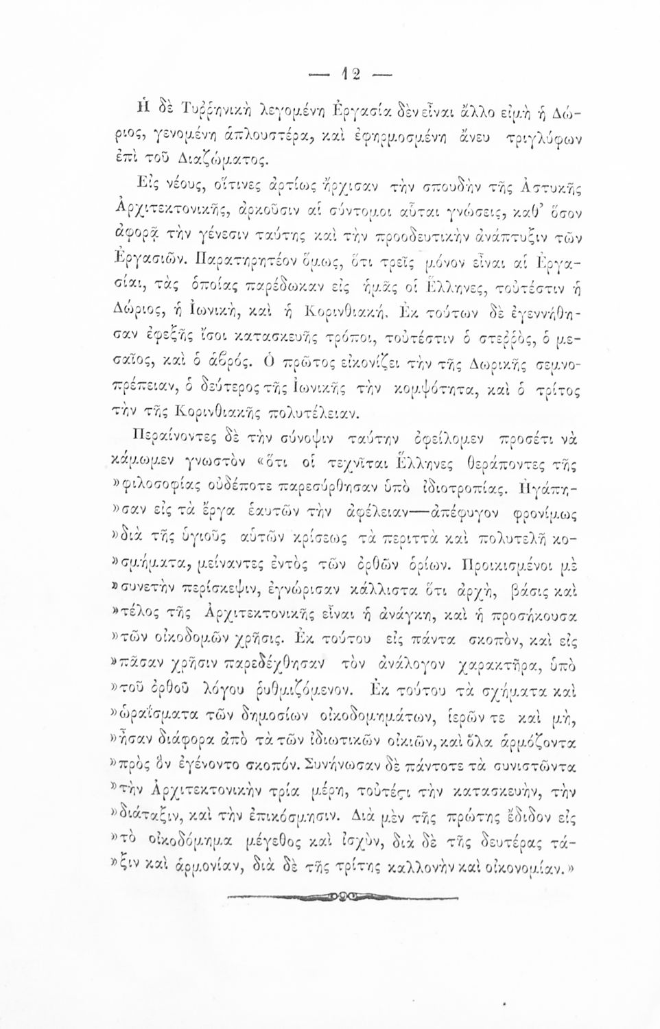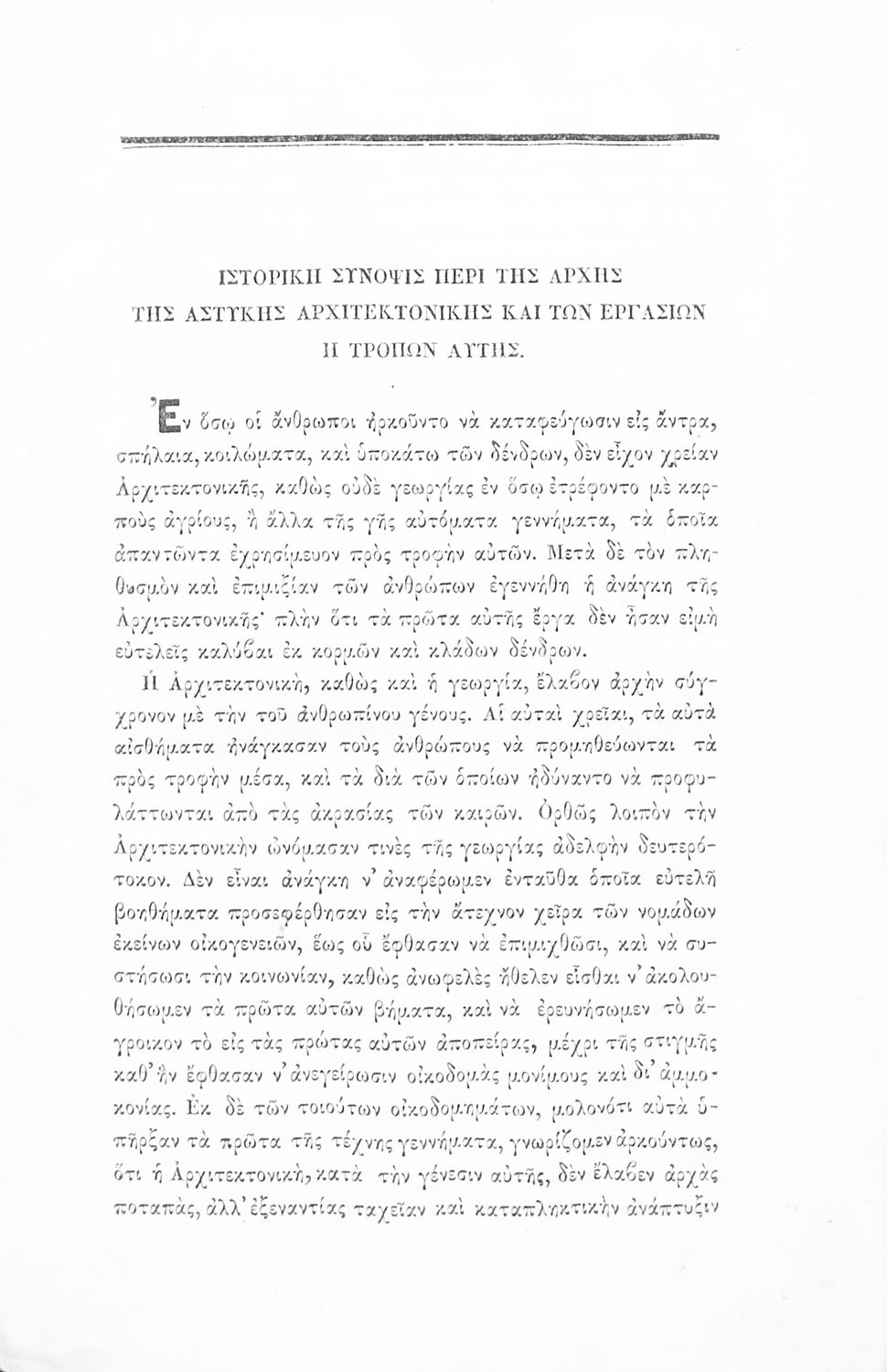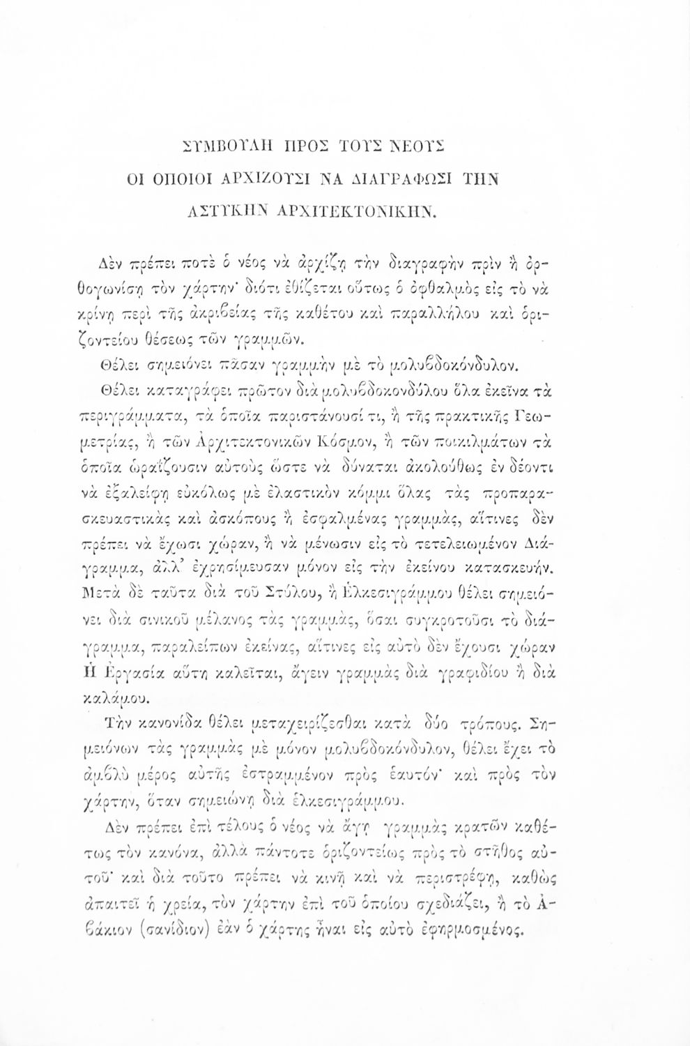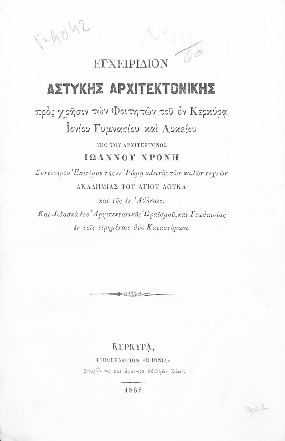 Σχολικό εγχειρίδιο το οποίο προοριζόταν για τη διδασκαλία στοιχείων αστικής αρχιτεκτονικής στους μαθητές του Ιονίου Γυμνασίου και Λυκείου.