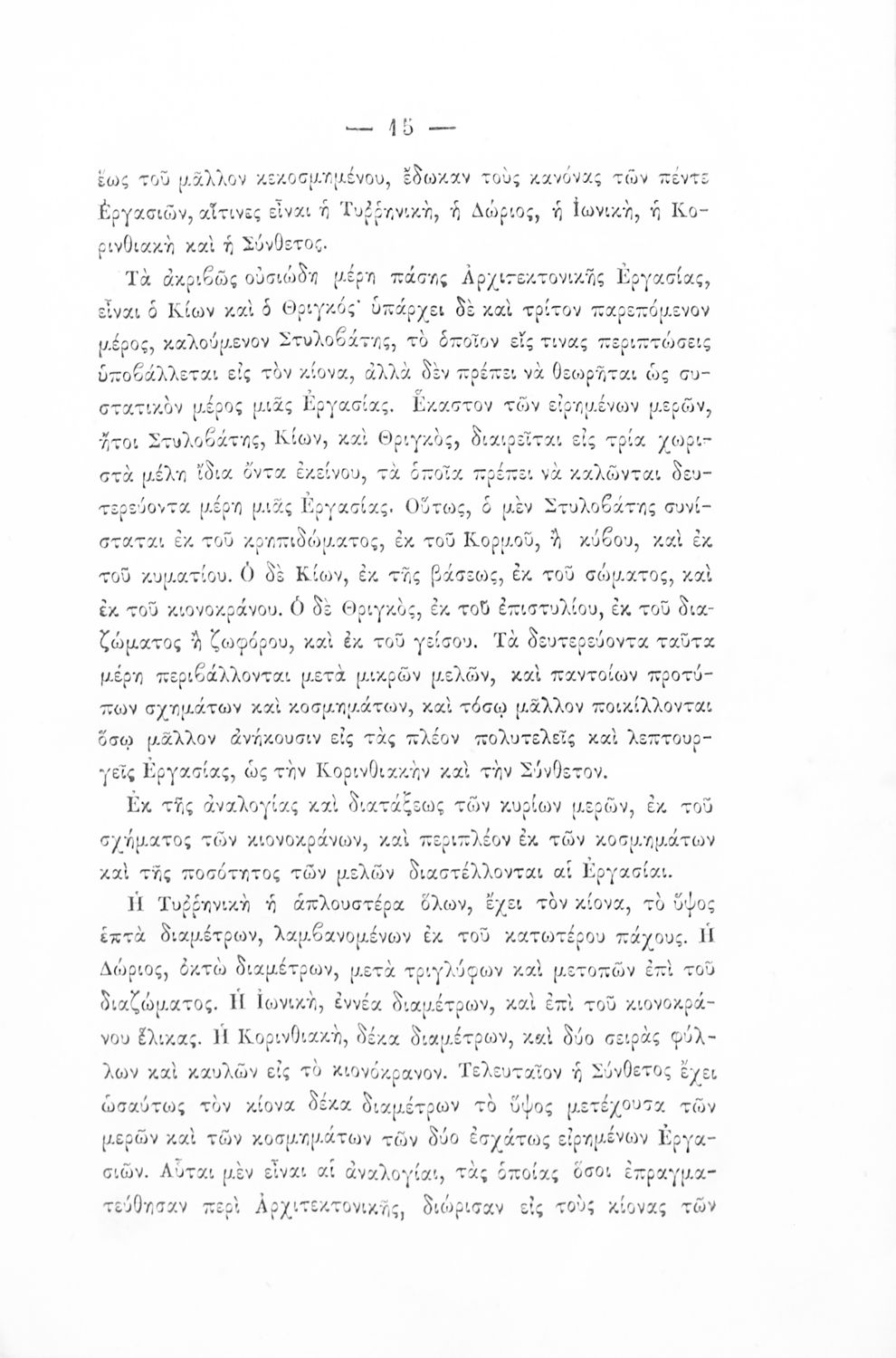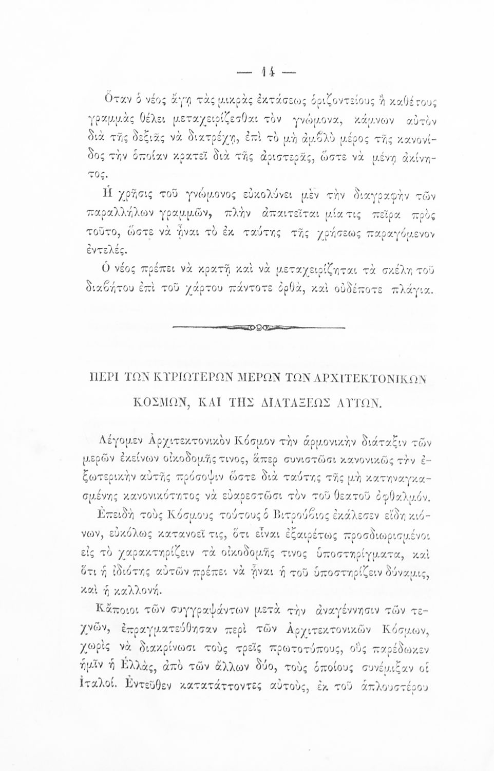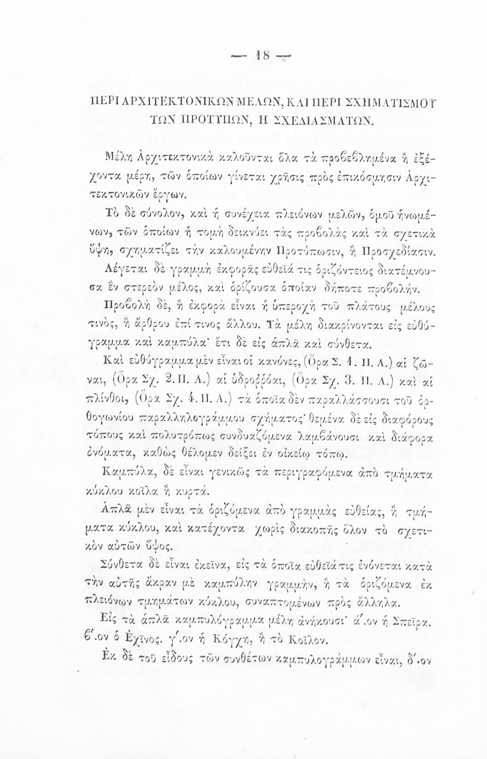 Βαθμίδα εκπαίδευσης: Δευτεροβάθμια Τάξη: Ιόνιο Γυμνάσιο / Λύκειο Γλώσσα: Καθαρεύουσα Παρουσίαση περιεχομένου: Σχολικό εγχειρίδιο το οποίο προοριζόταν για τη διδασκαλία στοιχείων αστικής αρχιτεκτονικής στους μαθητές του Ιονίου Γυμνασίου και Λυκείου. |