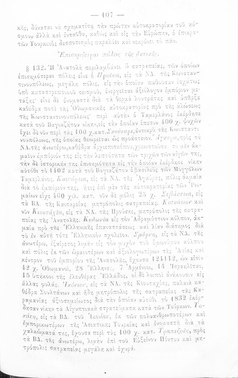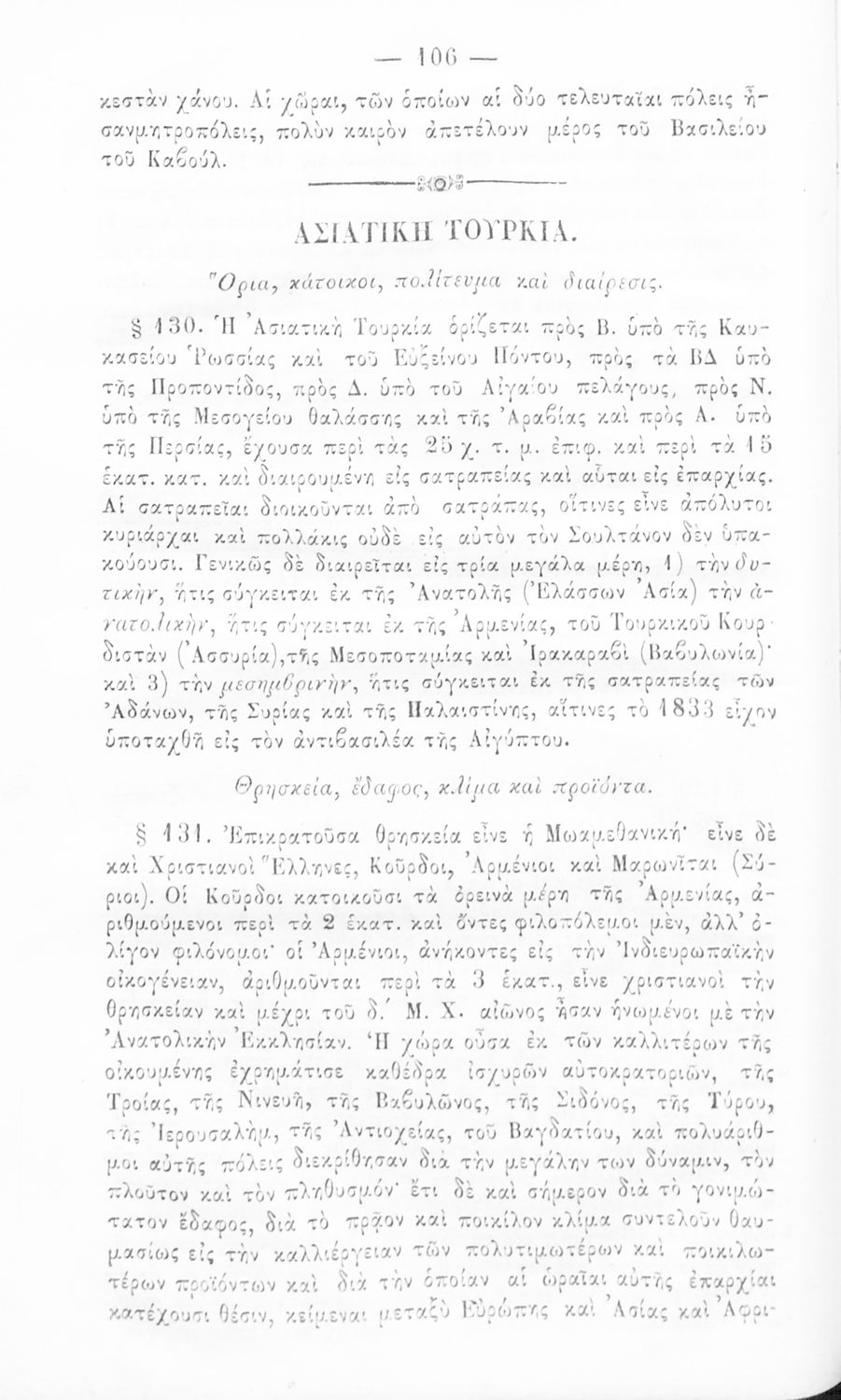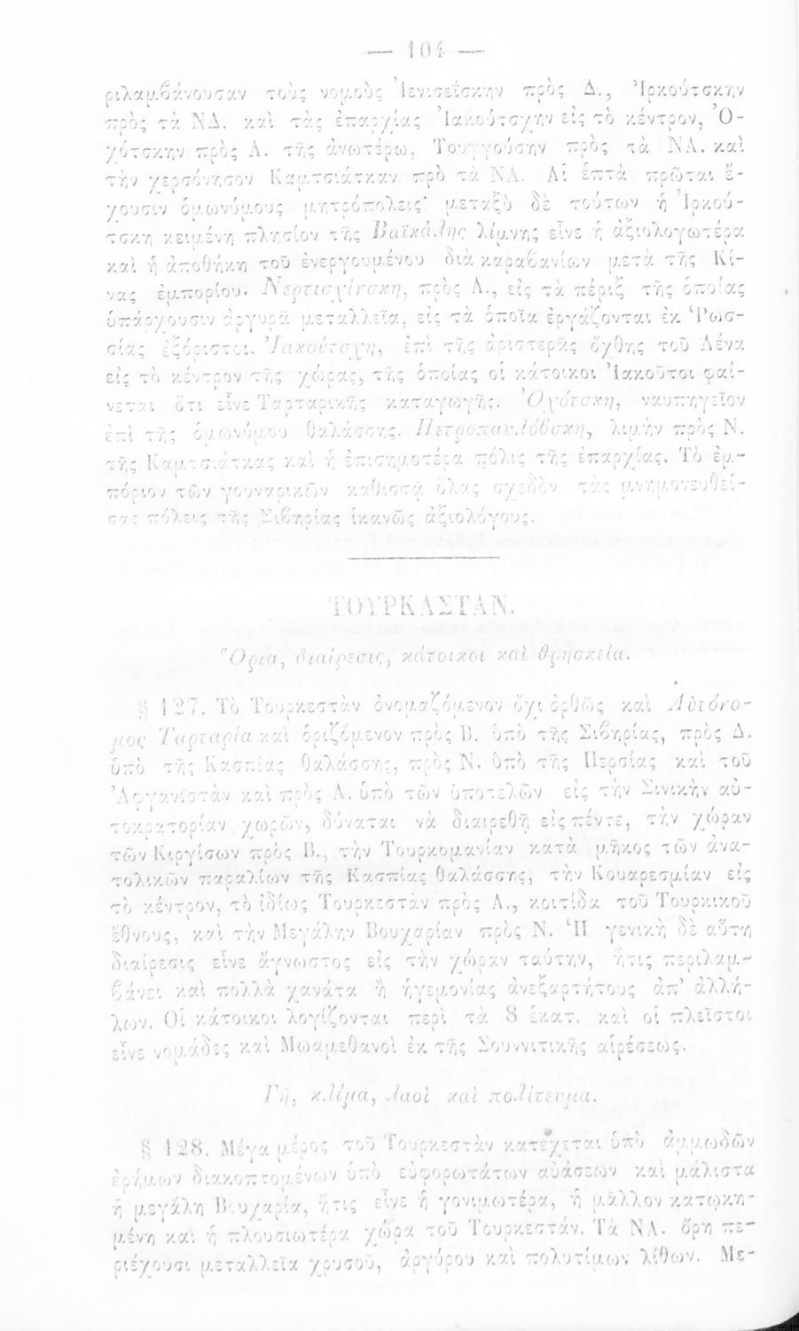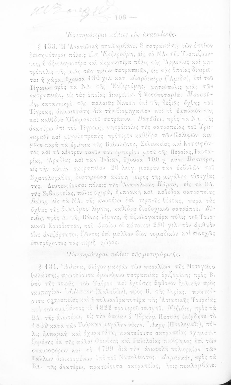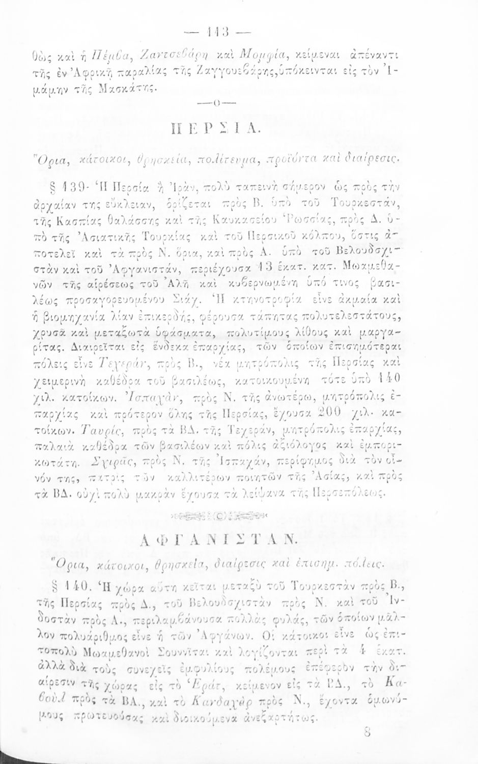 Σχολικό εγχειρίδιο Γεωγραφίας για τα Ελληνικά Σχολεία που περιλαμβάνει στοιχεία φυσικής, μαθηματικής και γεωπολιτικής γεωγραφίας και ανθρωπογεωγραφίας και αναλύει τις πέντε ηπείρους, την Ελλάδα αλλά και τη Φρυγία, τη Λυδία, τη Βιθυνία και τη Φοινίκη.