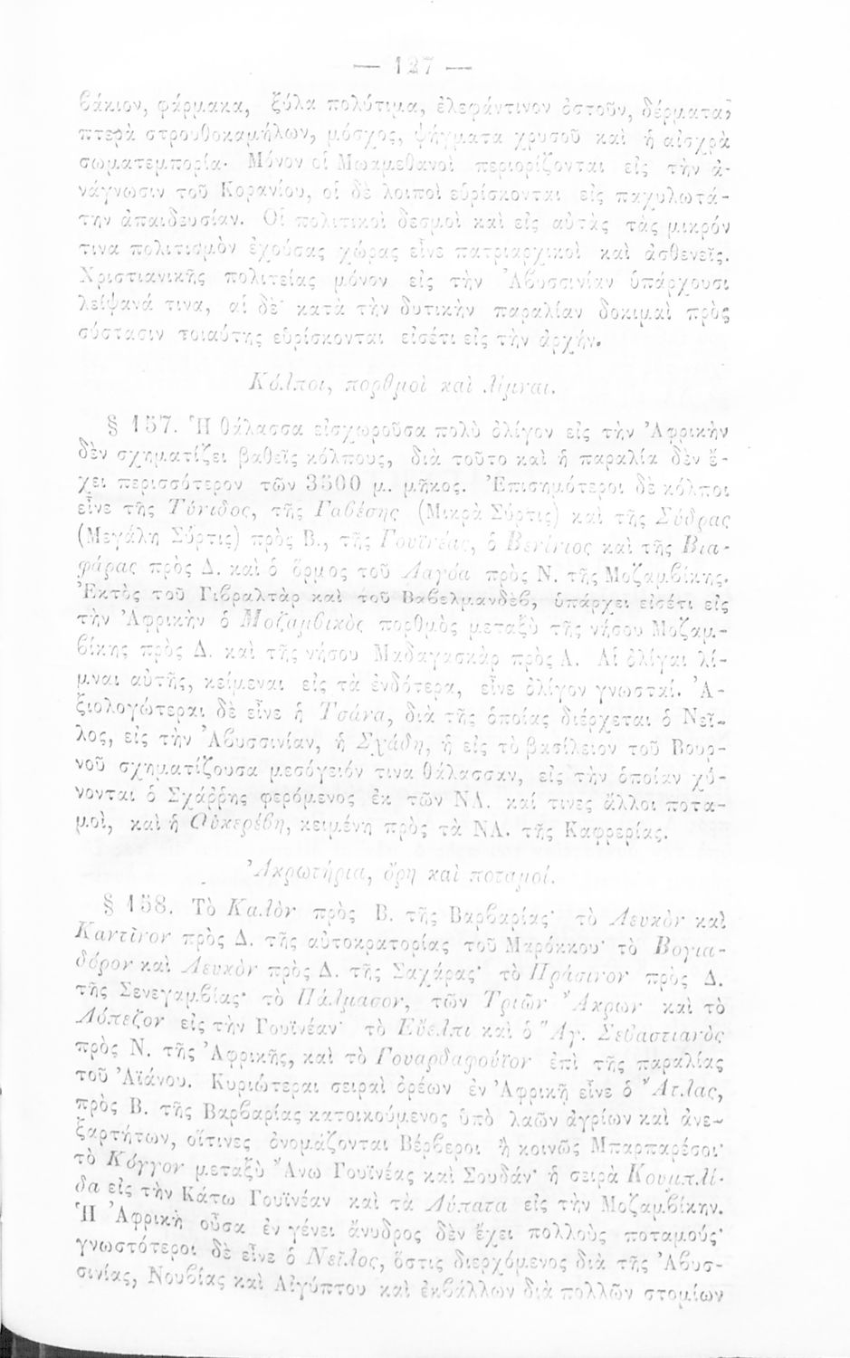 Σχολικό εγχειρίδιο Γεωγραφίας για τα Ελληνικά Σχολεία που περιλαμβάνει στοιχεία φυσικής, μαθηματικής και γεωπολιτικής γεωγραφίας και ανθρωπογεωγραφίας και αναλύει τις πέντε ηπείρους, την Ελλάδα αλλά και τη Φρυγία, τη Λυδία, τη Βιθυνία και τη Φοινίκη.