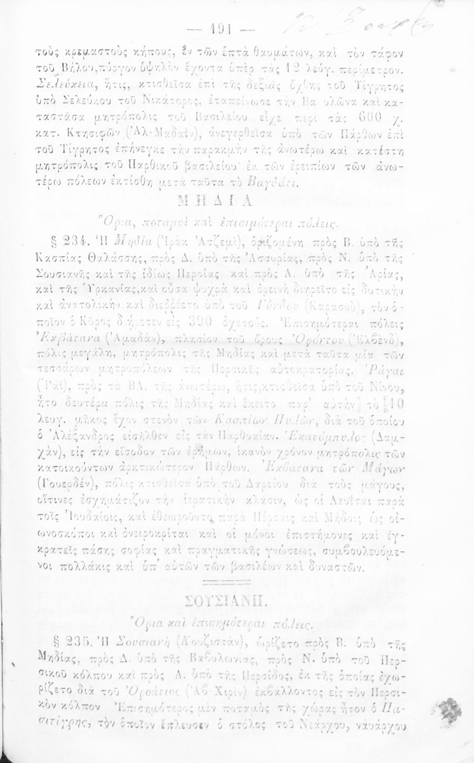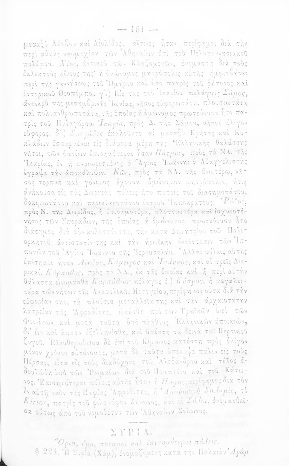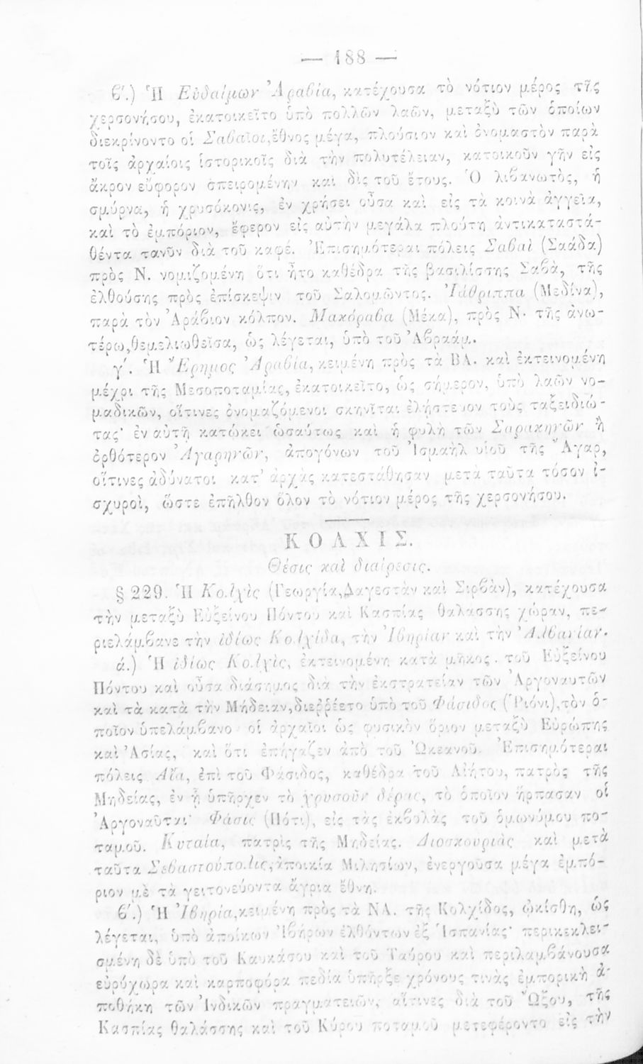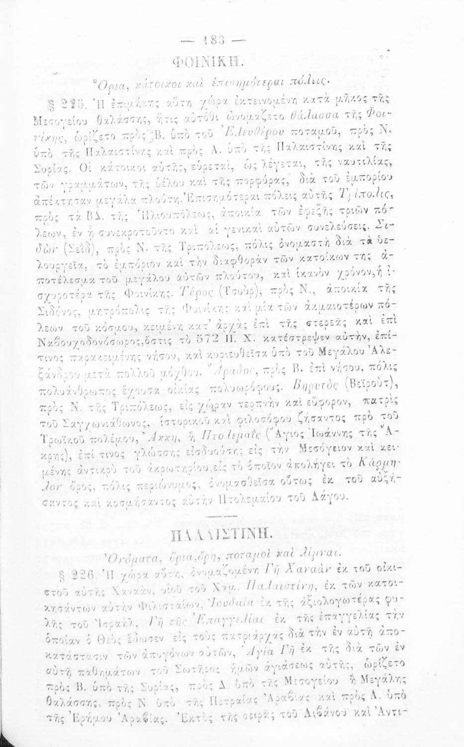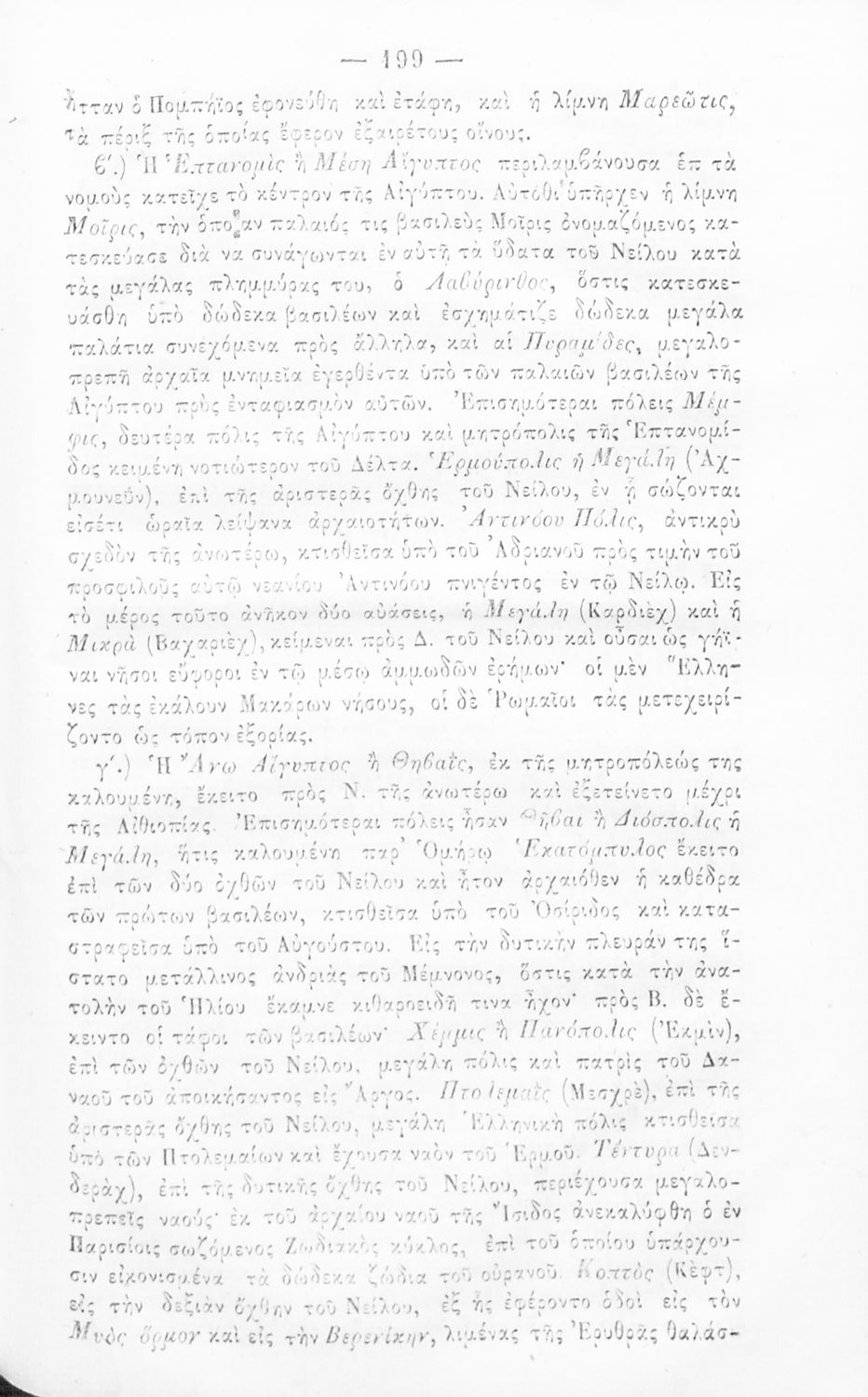 Σχολικό εγχειρίδιο Γεωγραφίας για τα Ελληνικά Σχολεία που περιλαμβάνει στοιχεία φυσικής, μαθηματικής και γεωπολιτικής γεωγραφίας και ανθρωπογεωγραφίας και αναλύει τις πέντε ηπείρους, την Ελλάδα αλλά και τη Φρυγία, τη Λυδία, τη Βιθυνία και τη Φοινίκη.