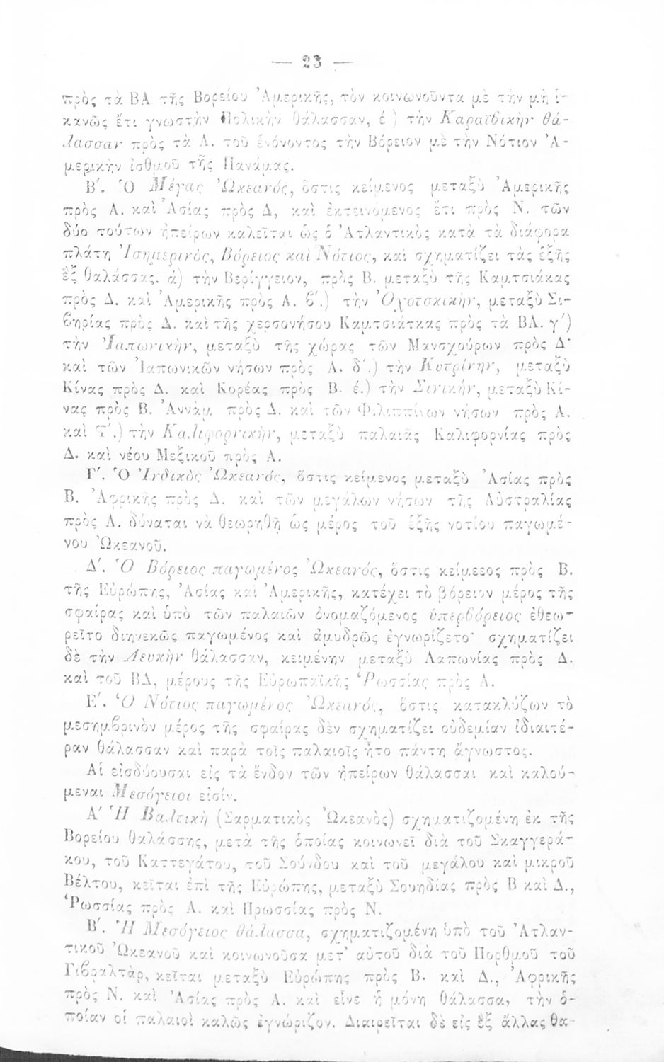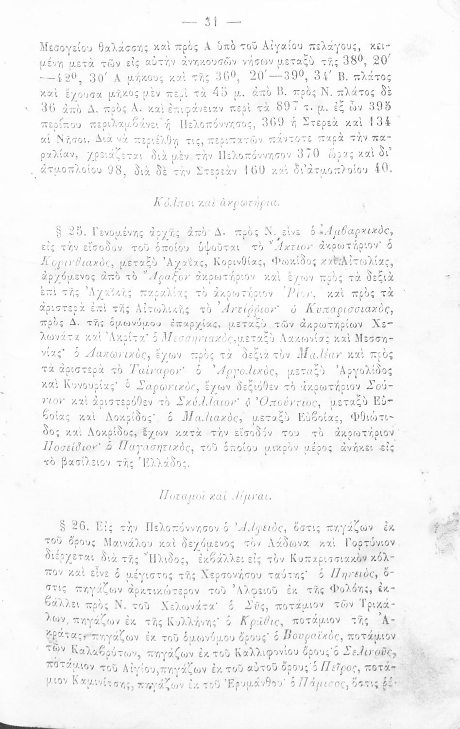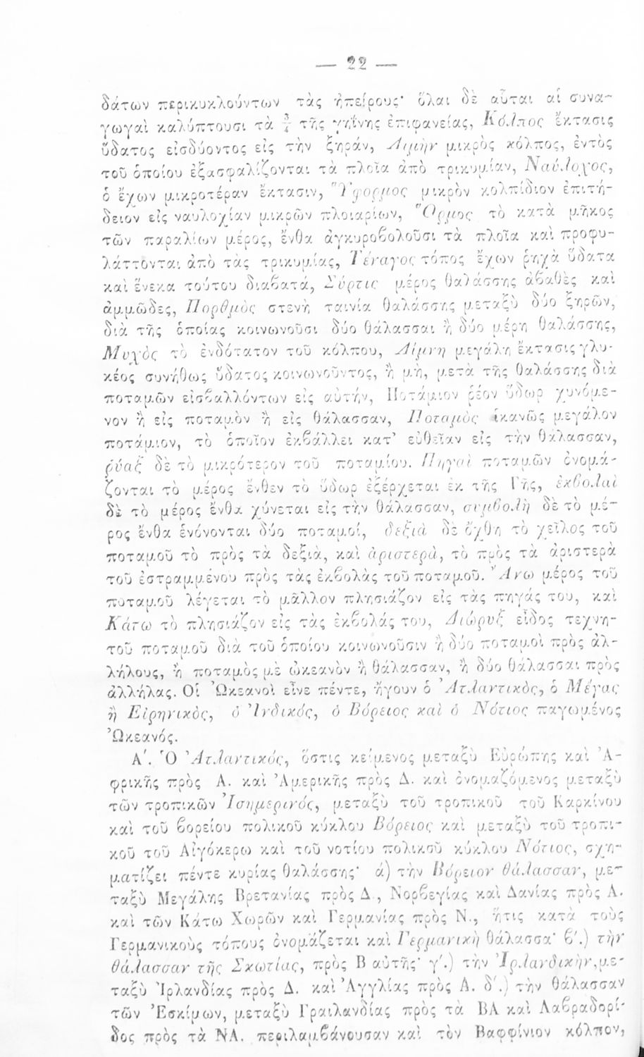 Σχολικό εγχειρίδιο Γεωγραφίας για τα Ελληνικά Σχολεία που περιλαμβάνει στοιχεία φυσικής, μαθηματικής και γεωπολιτικής γεωγραφίας και ανθρωπογεωγραφίας και αναλύει τις πέντε ηπείρους, την Ελλάδα αλλά και τη Φρυγία, τη Λυδία, τη Βιθυνία και τη Φοινίκη.