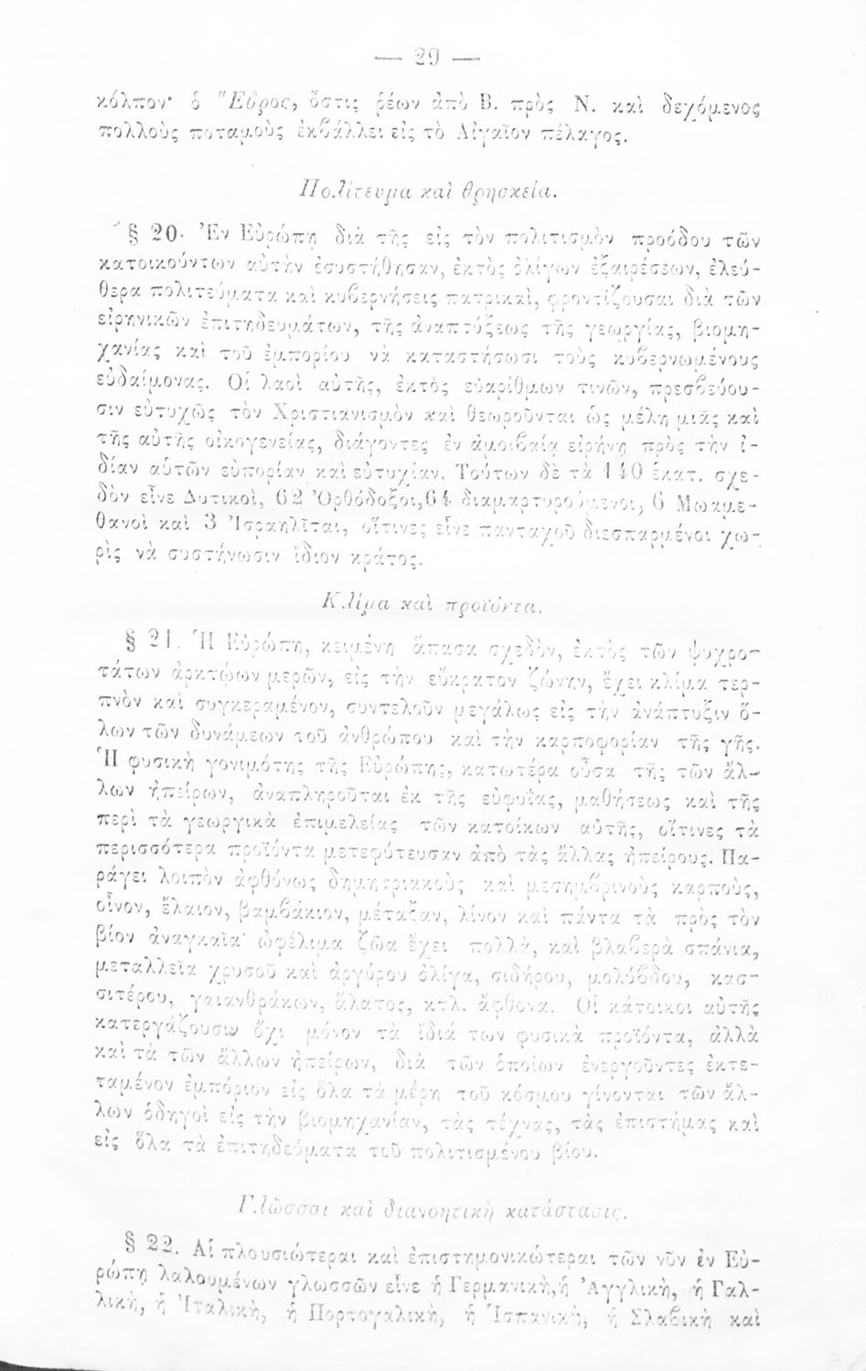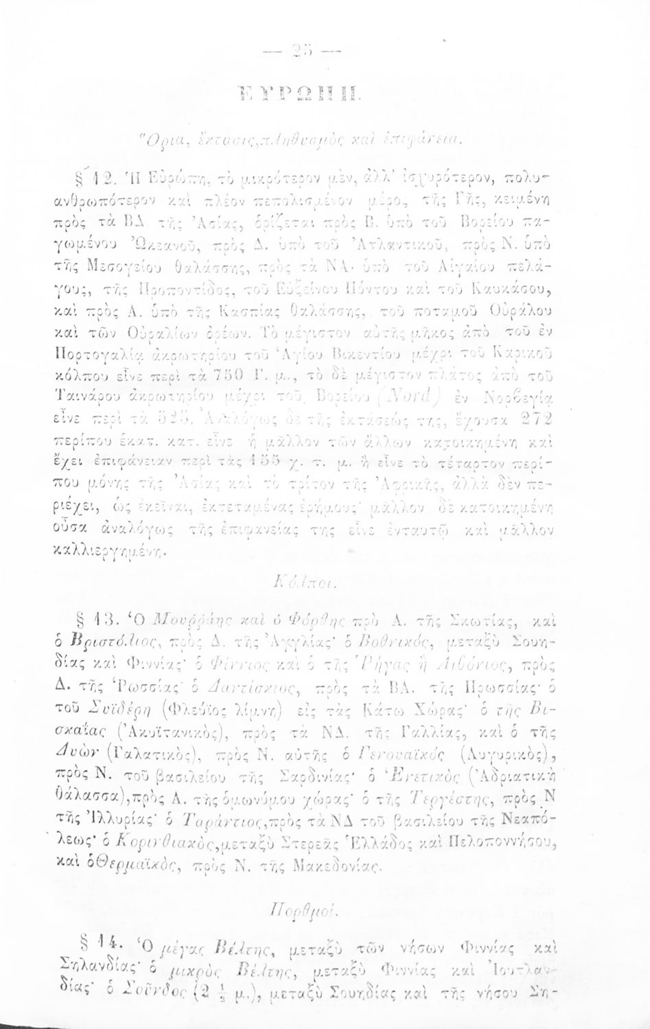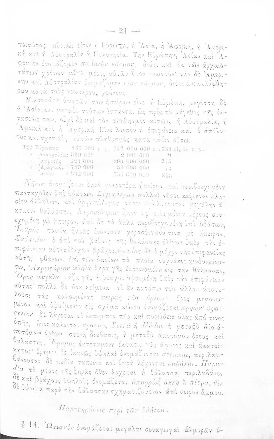 Σχολικό εγχειρίδιο Γεωγραφίας για τα Ελληνικά Σχολεία που περιλαμβάνει στοιχεία φυσικής, μαθηματικής και γεωπολιτικής γεωγραφίας και ανθρωπογεωγραφίας και αναλύει τις πέντε ηπείρους, την Ελλάδα αλλά και τη Φρυγία, τη Λυδία, τη Βιθυνία και τη Φοινίκη.