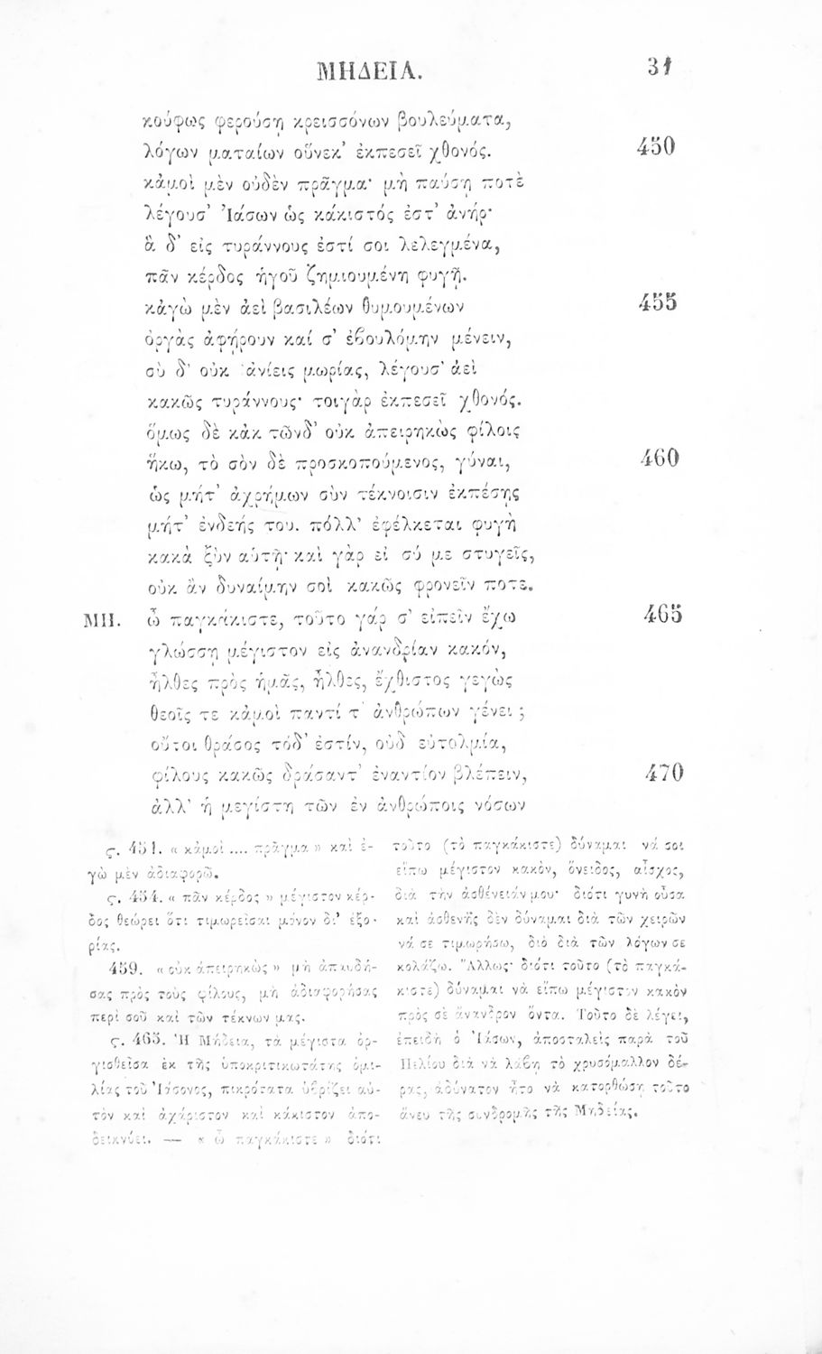 520 ## _aΣχολικό εγχειρίδιο Αρχαίων Ελληνικών που περιέχει την τραγωδία του Ευριπίδη, Μήδεια και γλωσσικά και πραγματολογικά σχόλια.