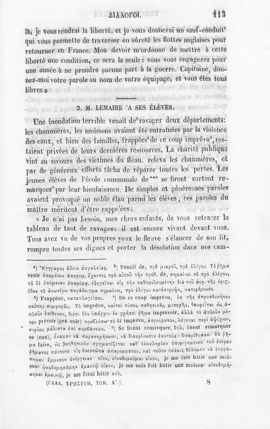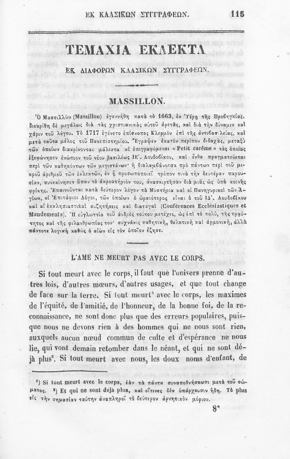 Γαλλική χρηστομάθεια περιέχουσα εκλεκτά και ηθικά τεμάχια κλασικών συγγραφέων πεζών τε και ποιητών μετά πολλών σημειώσεων, προς χρήσιν της σπουδαζούσης νεολαίας