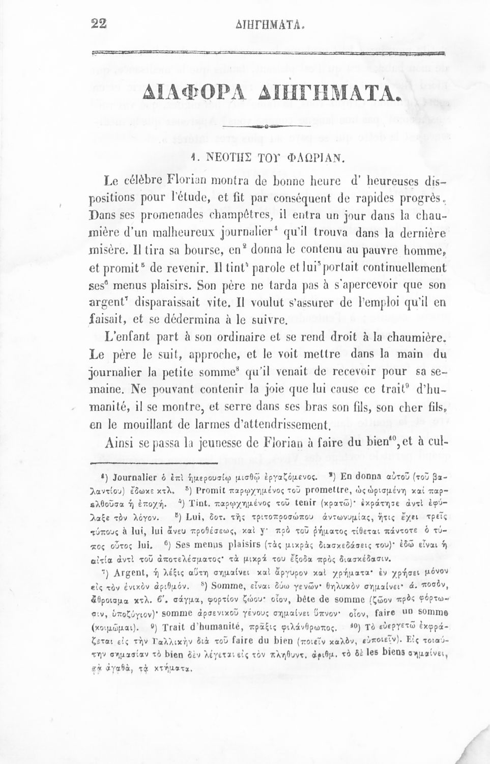 Γαλλική χρηστομάθεια περιέχουσα εκλεκτά και ηθικά τεμάχια κλασικών συγγραφέων πεζών τε και ποιητών μετά πολλών σημειώσεων, προς χρήσιν της σπουδαζούσης νεολαίας