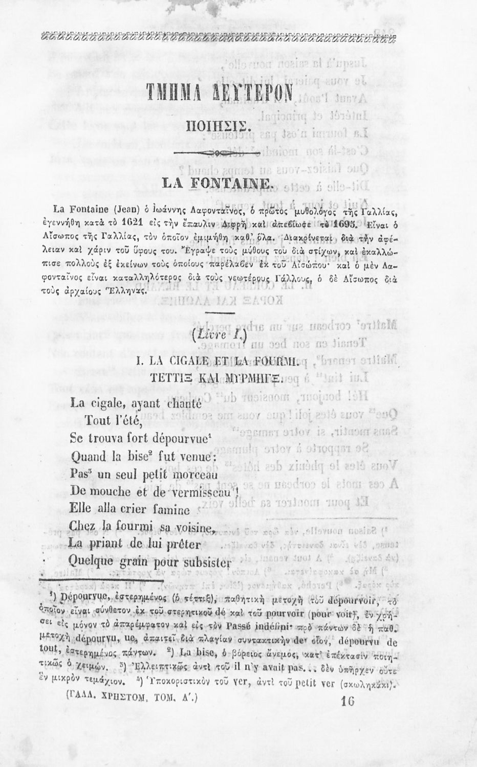 Γαλλική χρηστομάθεια περιέχουσα εκλεκτά και ηθικά τεμάχια κλασικών συγγραφέων πεζών τε και ποιητών μετά πολλών σημειώσεων, προς χρήσιν της σπουδαζούσης νεολαίας
