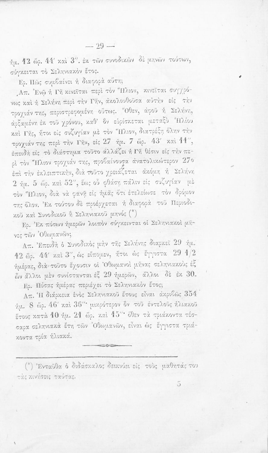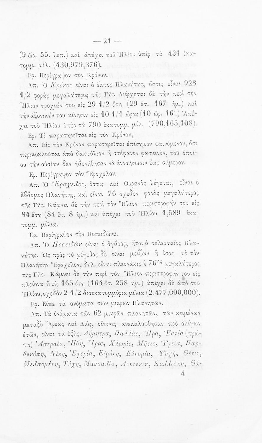 Σχολικό εγχειρίδιο Γεωγραφίας που περιέχει εισαγωγή στην έννοια του χρόνου και στους πλανήτες και περιλαμβάνει στοιχεία για τους κύκλους του Ήλιου και της Σελήνης, και ερωτήσεις κατανόησης.