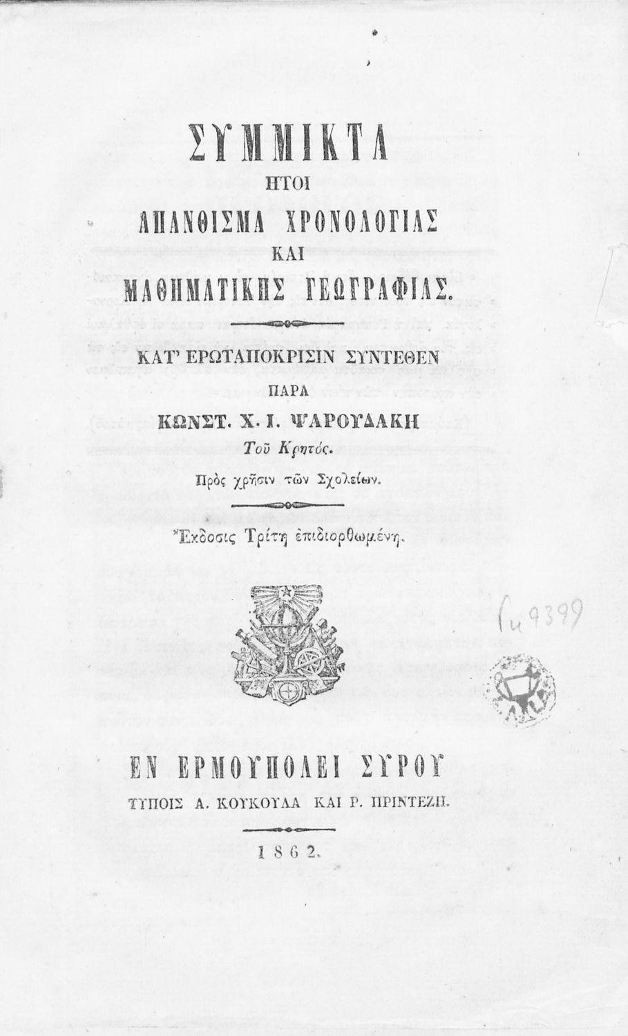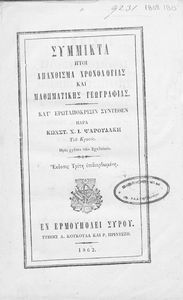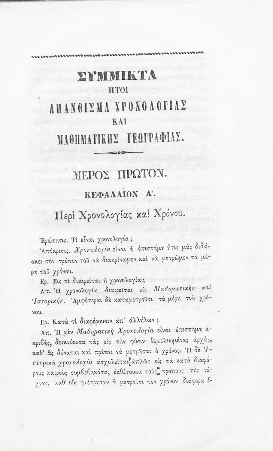Τίτλος: Σύμμικτα ήτοι απάνθισμα χρονολογίας και μαθηματικής γεωγραφίας προς χρήσιν των σχολείων