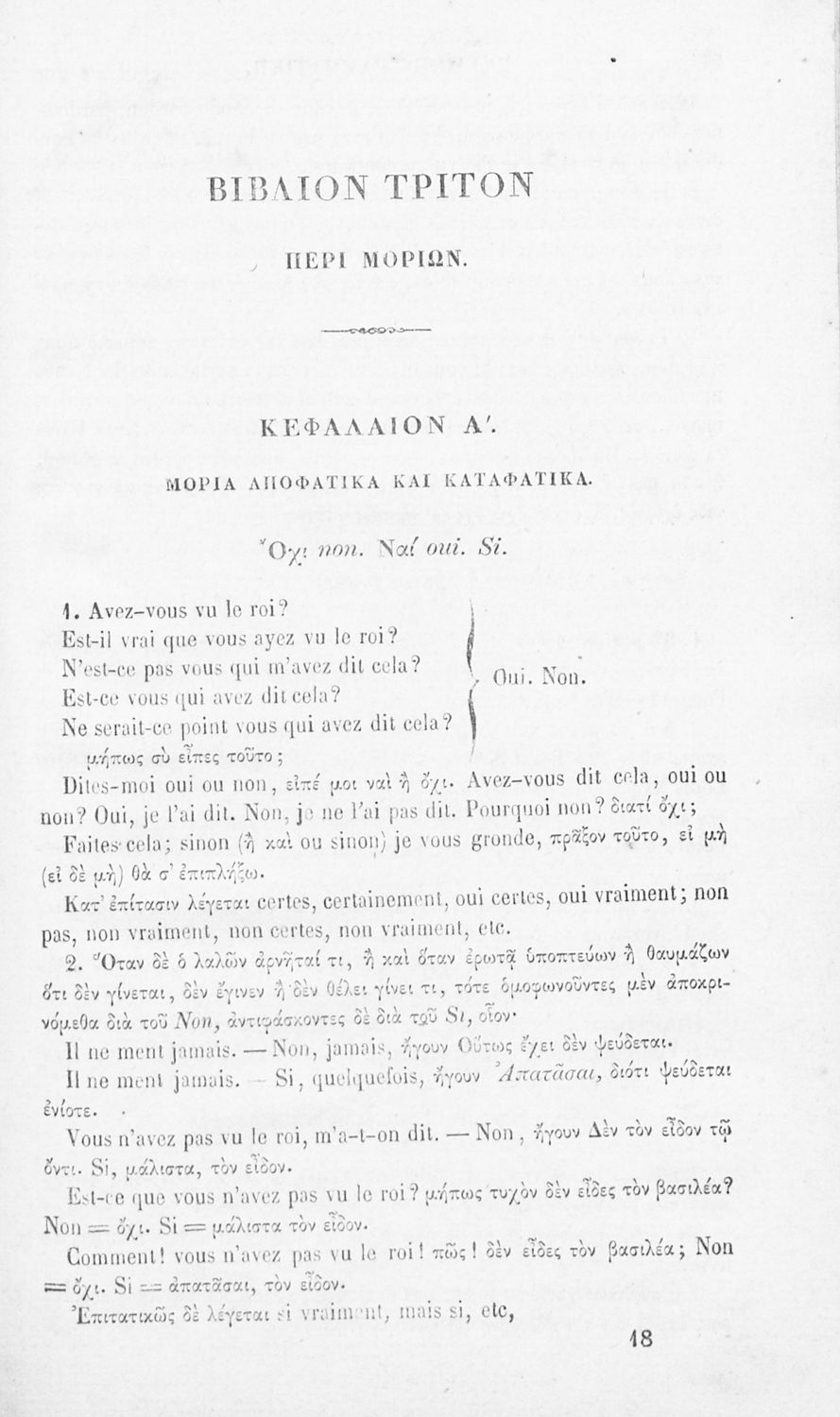 Τίτλος: Γραμματική της γαλλικής γλώσσης θεωρητική και πρακτική χάριν των Ελλήνων φιλοπονηθείσα
