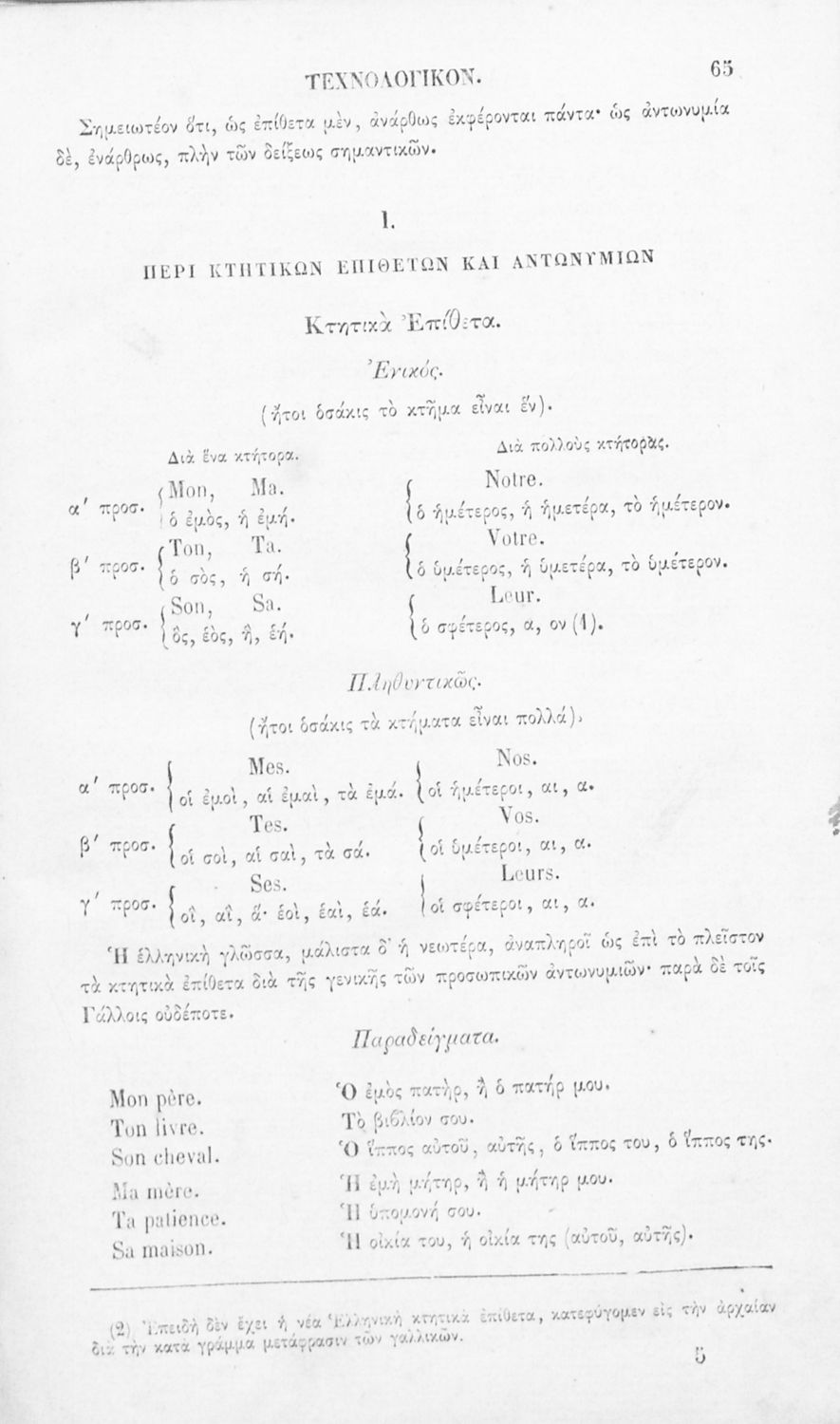 Τίτλος: Γραμματική της γαλλικής γλώσσης θεωρητική και πρακτική χάριν των Ελλήνων φιλοπονηθείσα