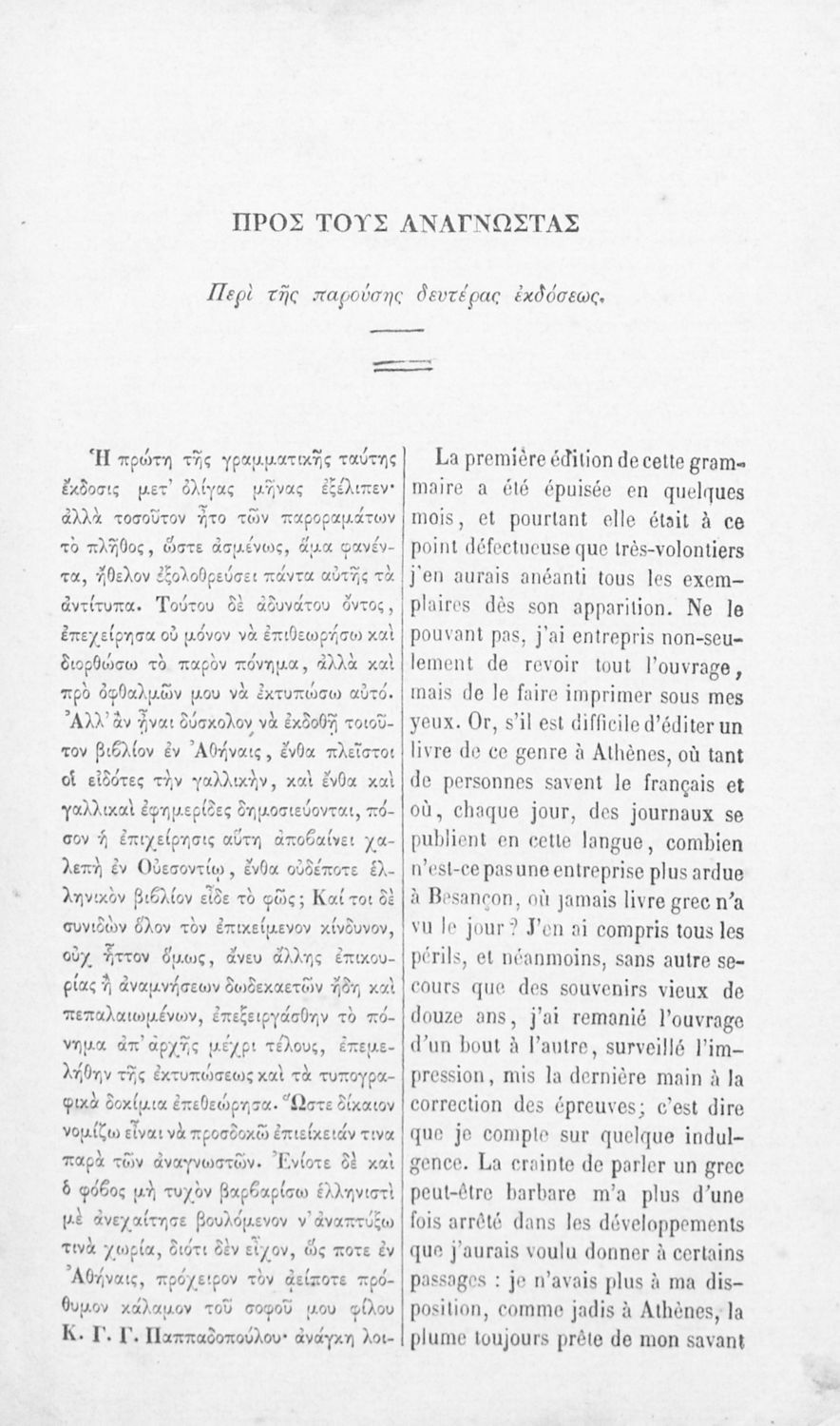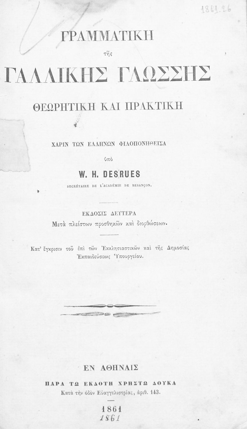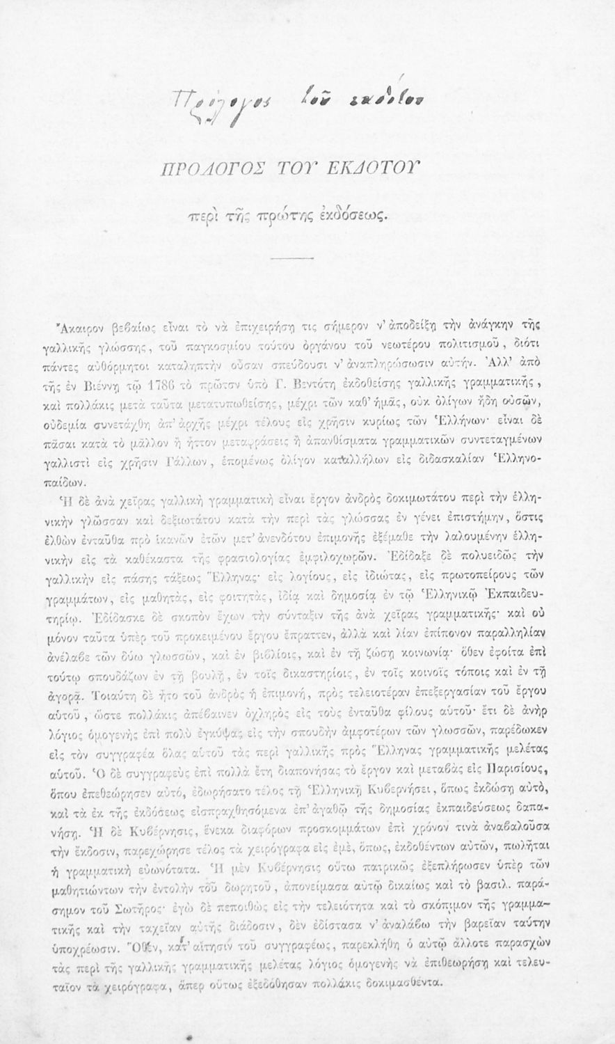 Τίτλος: Γραμματική της γαλλικής γλώσσης θεωρητική και πρακτική χάριν των Ελλήνων φιλοπονηθείσα