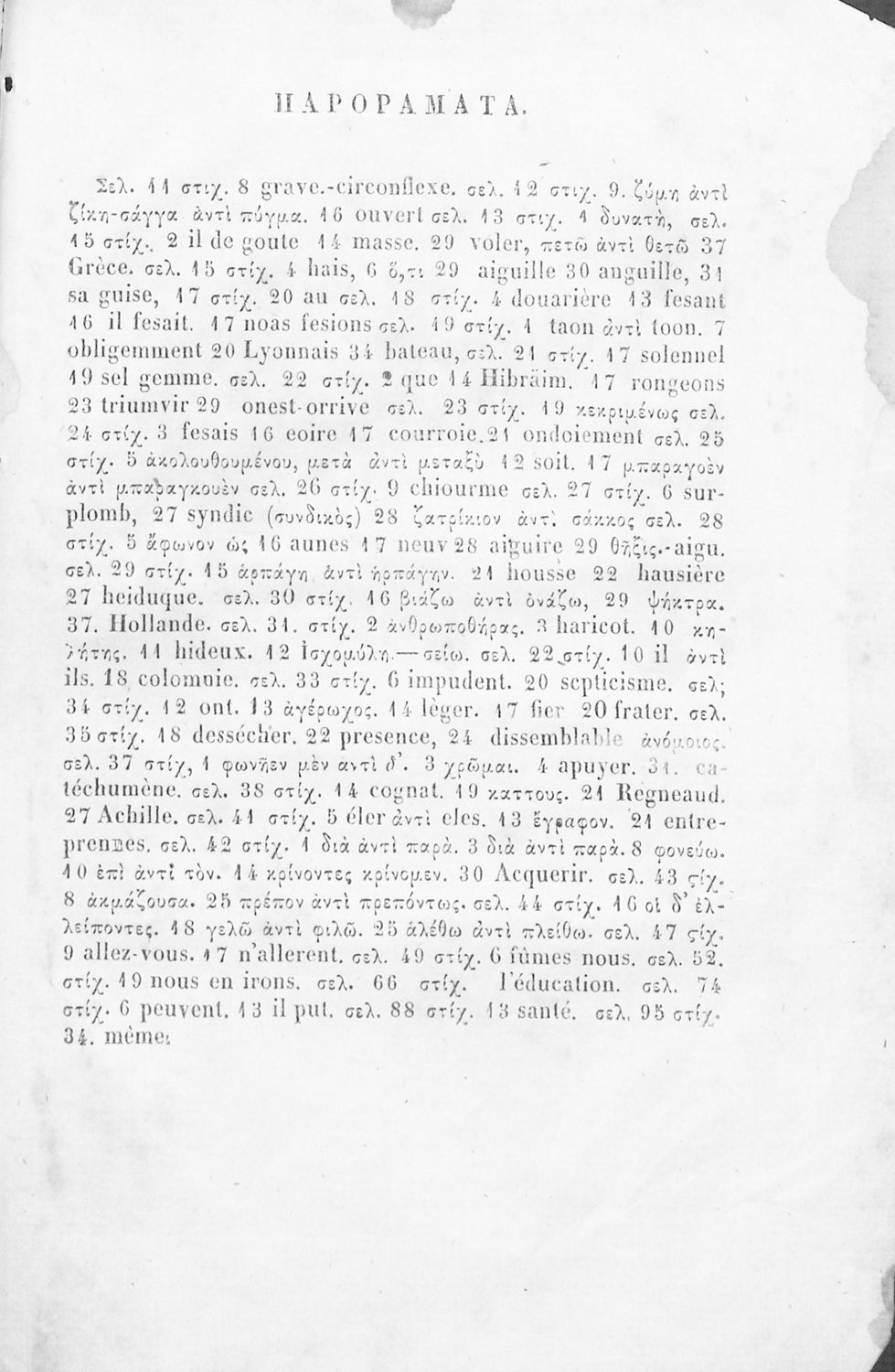 Τίτλος: Σύντομος διδασκαλία ή οδηγός προς εκμάθησιν της προφοράς της γαλλικής γλώσσης, συνταχθείς προς χρήσιν των εν τοις σχολείοις της Ελλάδος μαθητών