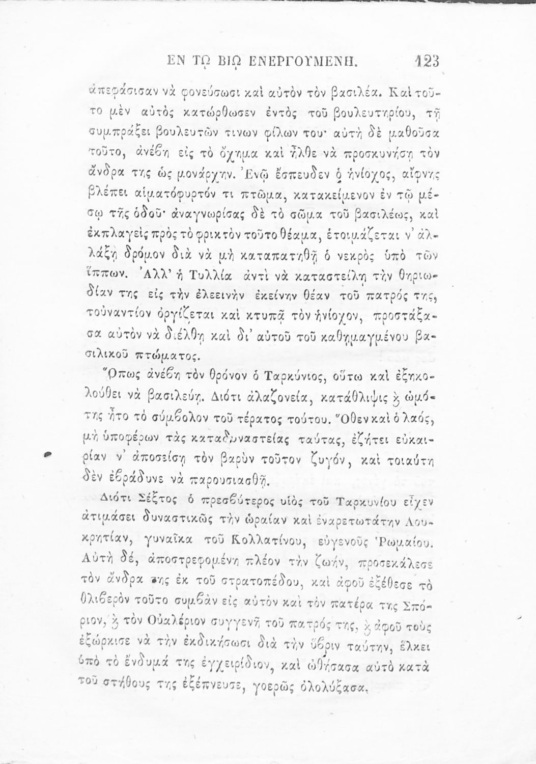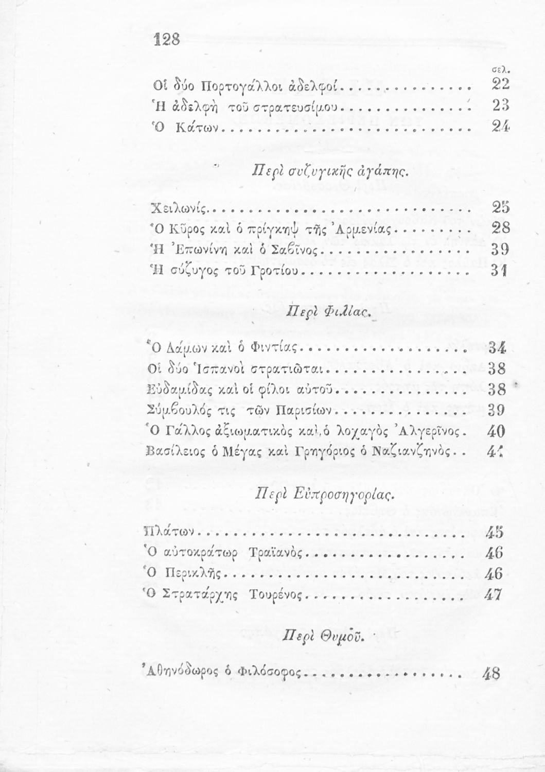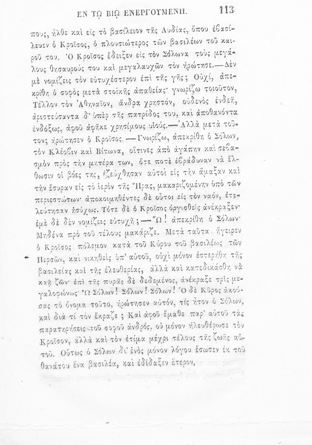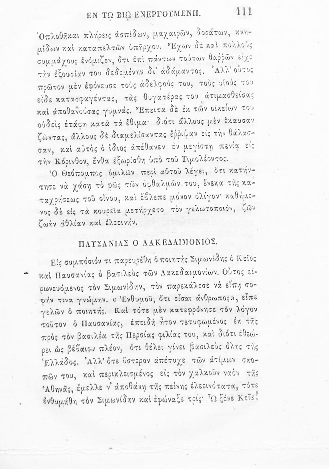 Τίτλος: Ηθική εν τω βίω ενεργουμένη ήτοι ηθικά τεμάχια διαφόρων συγγραφέων της τε παλαιάς και νεωτέρας ιστορίας, τα μεν μεταφρασθέντα τα δε ερανισθέντα, προς ηθικήν εφαρμογήν και χρήσιν των Δημοτικών Σχολείων