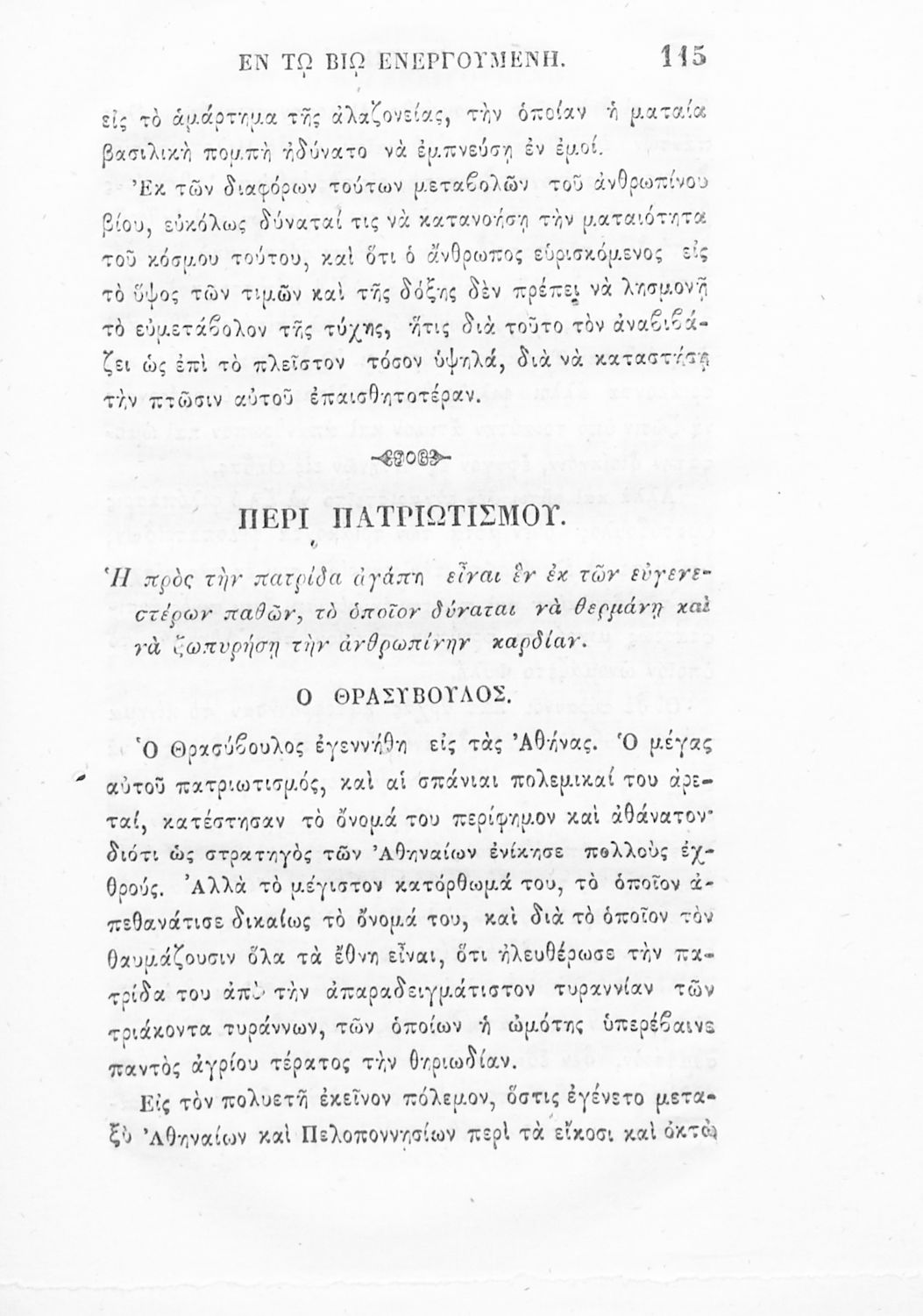 Ηθική εν τω βίω ενεργουμένη ήτοι ηθικά τεμάχια διαφόρων συγγραφέων της τε παλαιάς και νεωτέρας ιστορίας, τα μεν μεταφρασθέντα τα δε ερανισθέντα, προς ηθικήν εφαρμογήν και χρήσιν των Δημοτικών Σχολείων