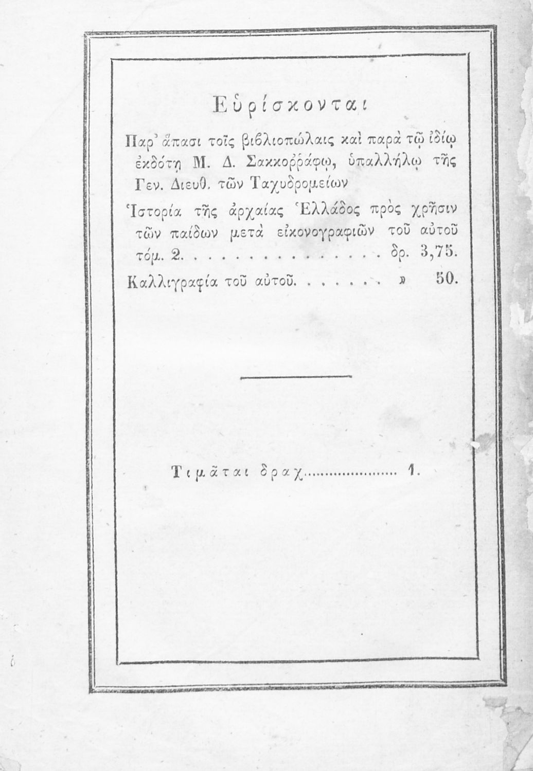 Εκδότης: Τυπογραφείο: Δ. Ειρηνίδου