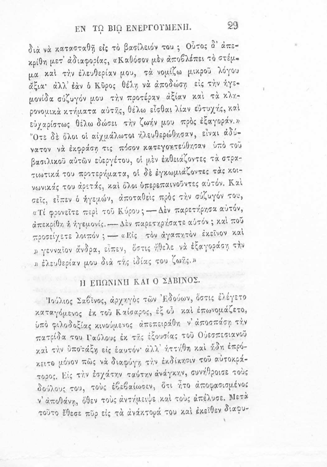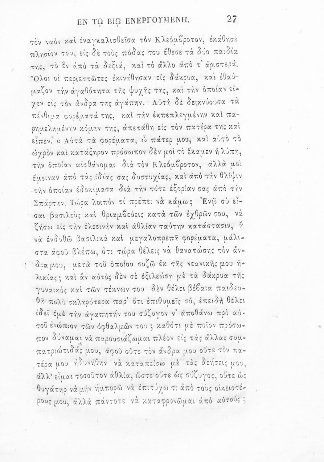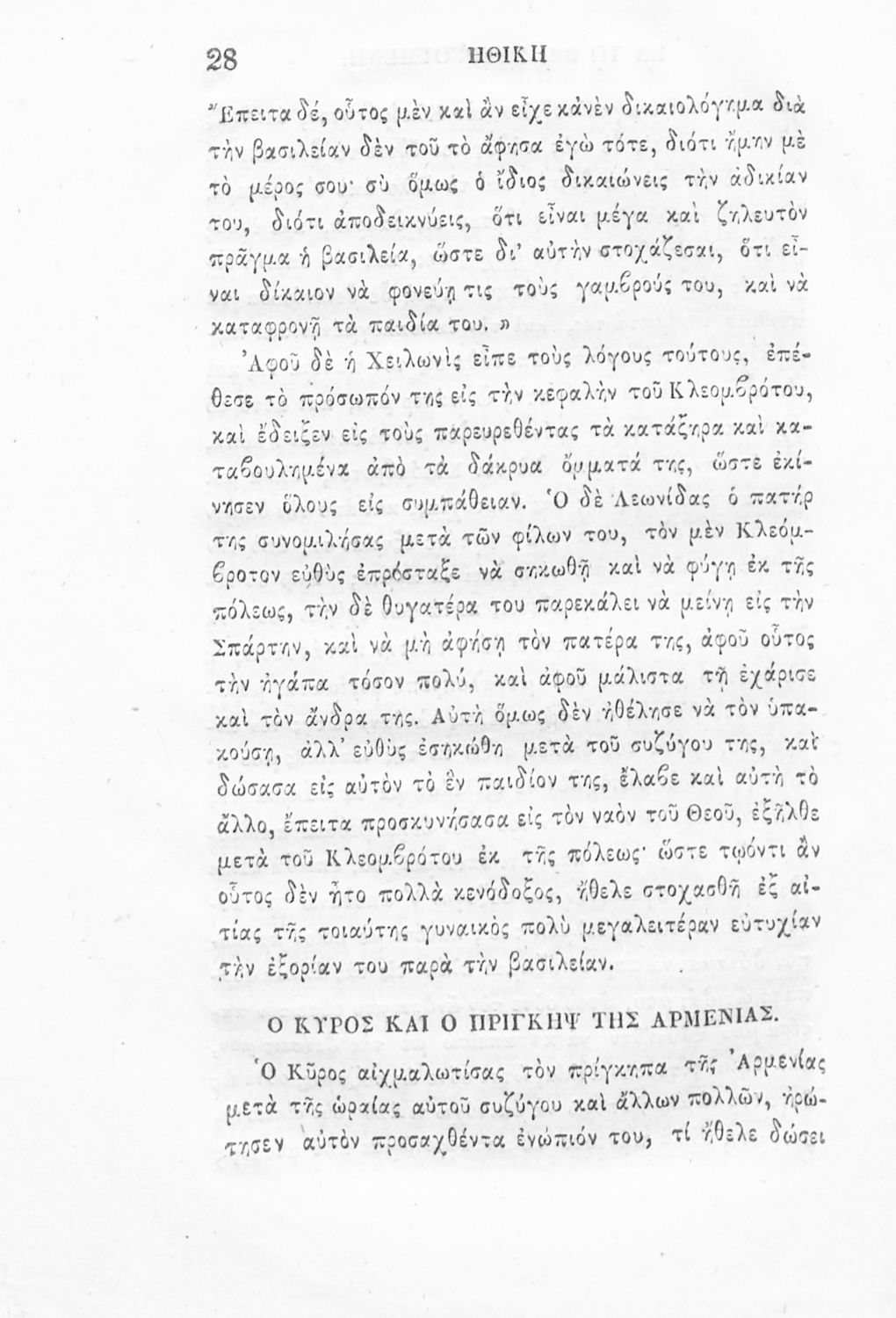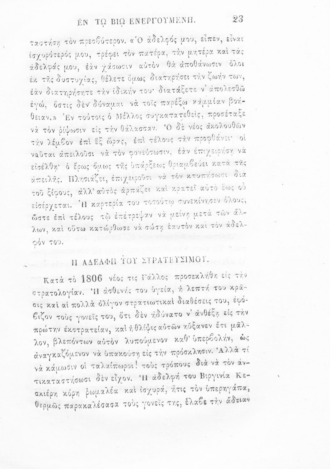 Τίτλος: Ηθική εν τω βίω ενεργουμένη ήτοι ηθικά τεμάχια διαφόρων συγγραφέων της τε παλαιάς και νεωτέρας ιστορίας, τα μεν μεταφρασθέντα τα δε ερανισθέντα, προς ηθικήν εφαρμογήν και χρήσιν των Δημοτικών Σχολείων
