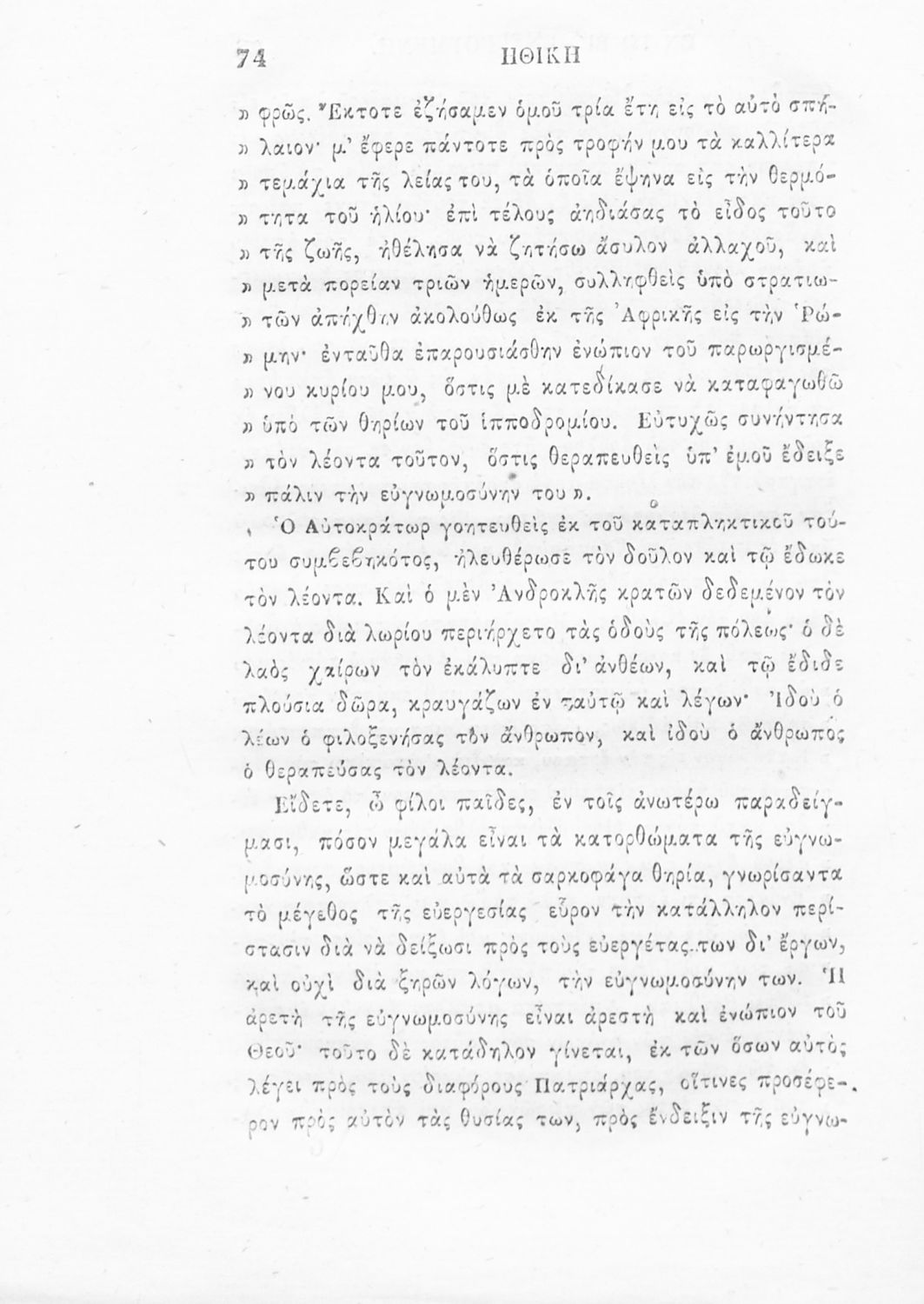 Βαθμίδα εκπαίδευσης: Πρωτοβάθμια Γλώσσα: Καθαρεύουσα Παρουσίαση περιεχομένου: Αναγνωστικό που περιλαμβάνει σύντομα διηγήματα ηθικοπλαστικού περιεχομένου εμπνευσμένα από τη θρησκευτική παράδοση, την αρχαία Ελλάδα, τη ρωμαϊκή και την σύγχρονη ευρωπαϊκή ιστορία. |