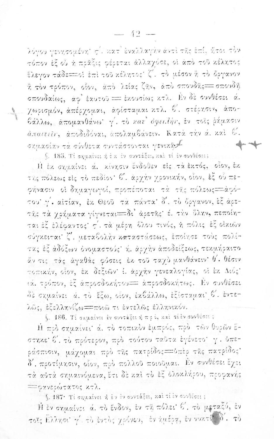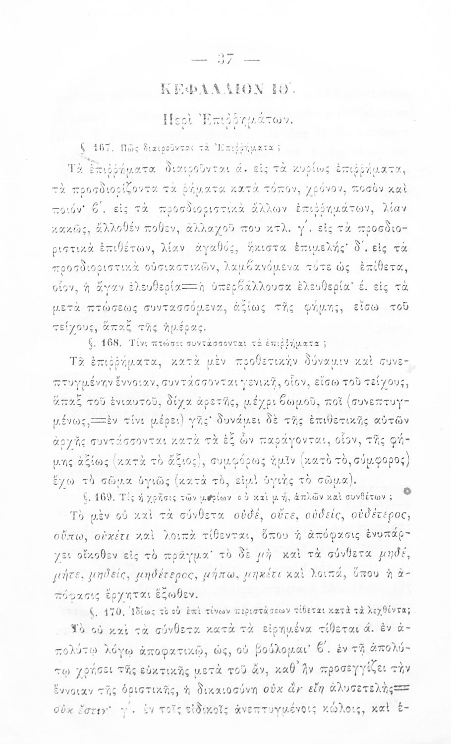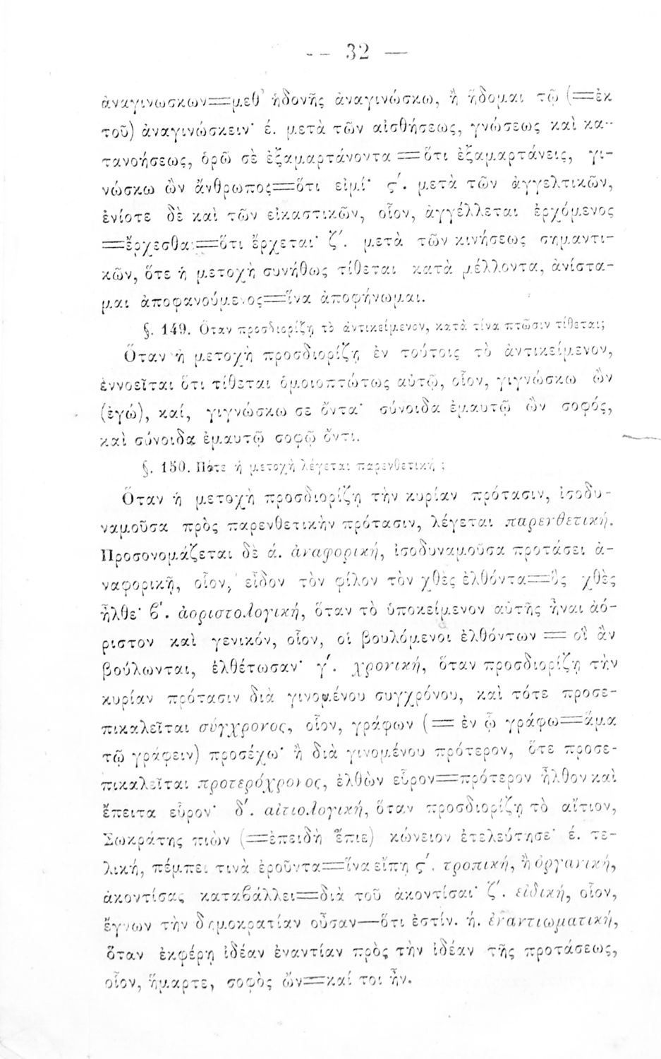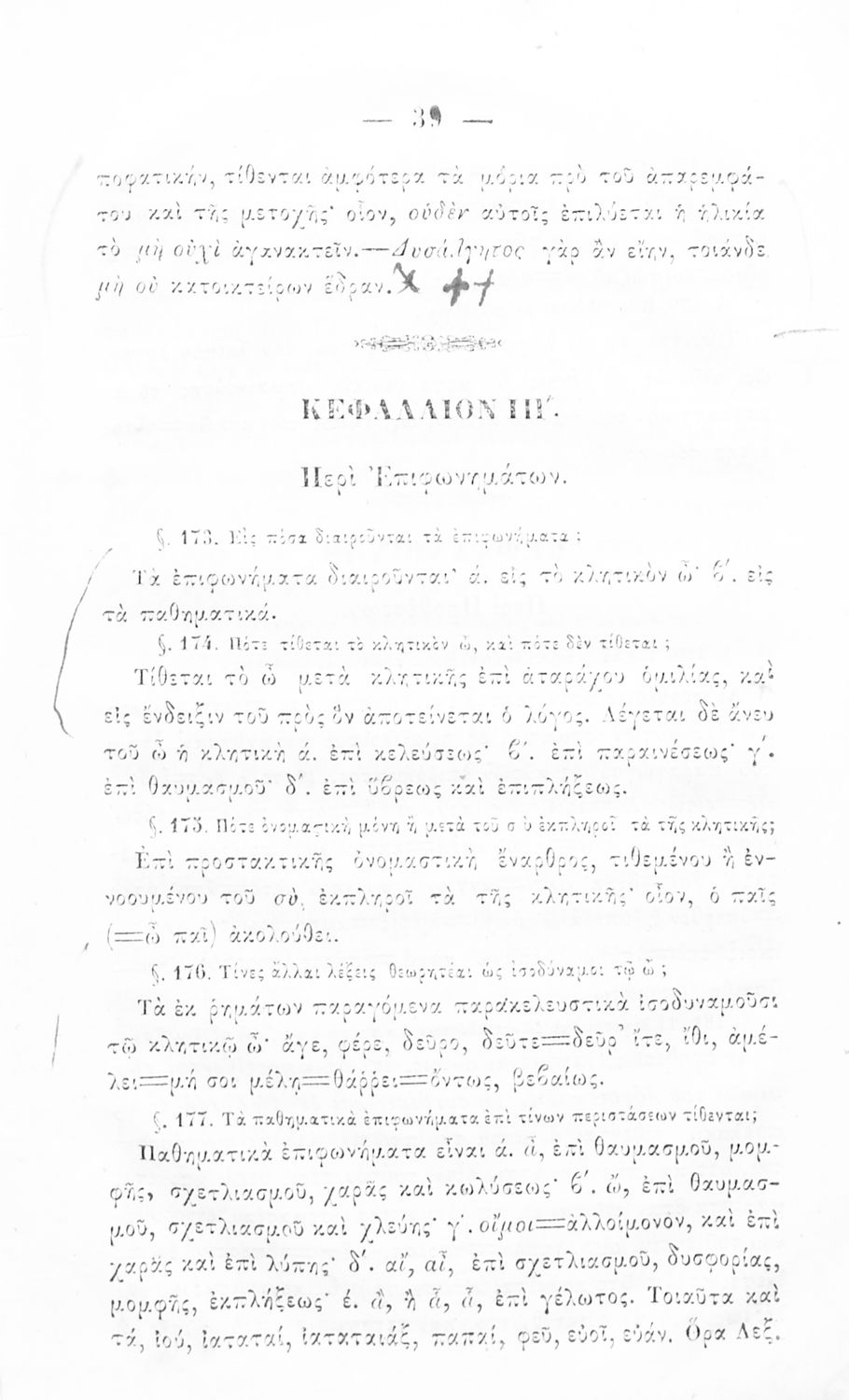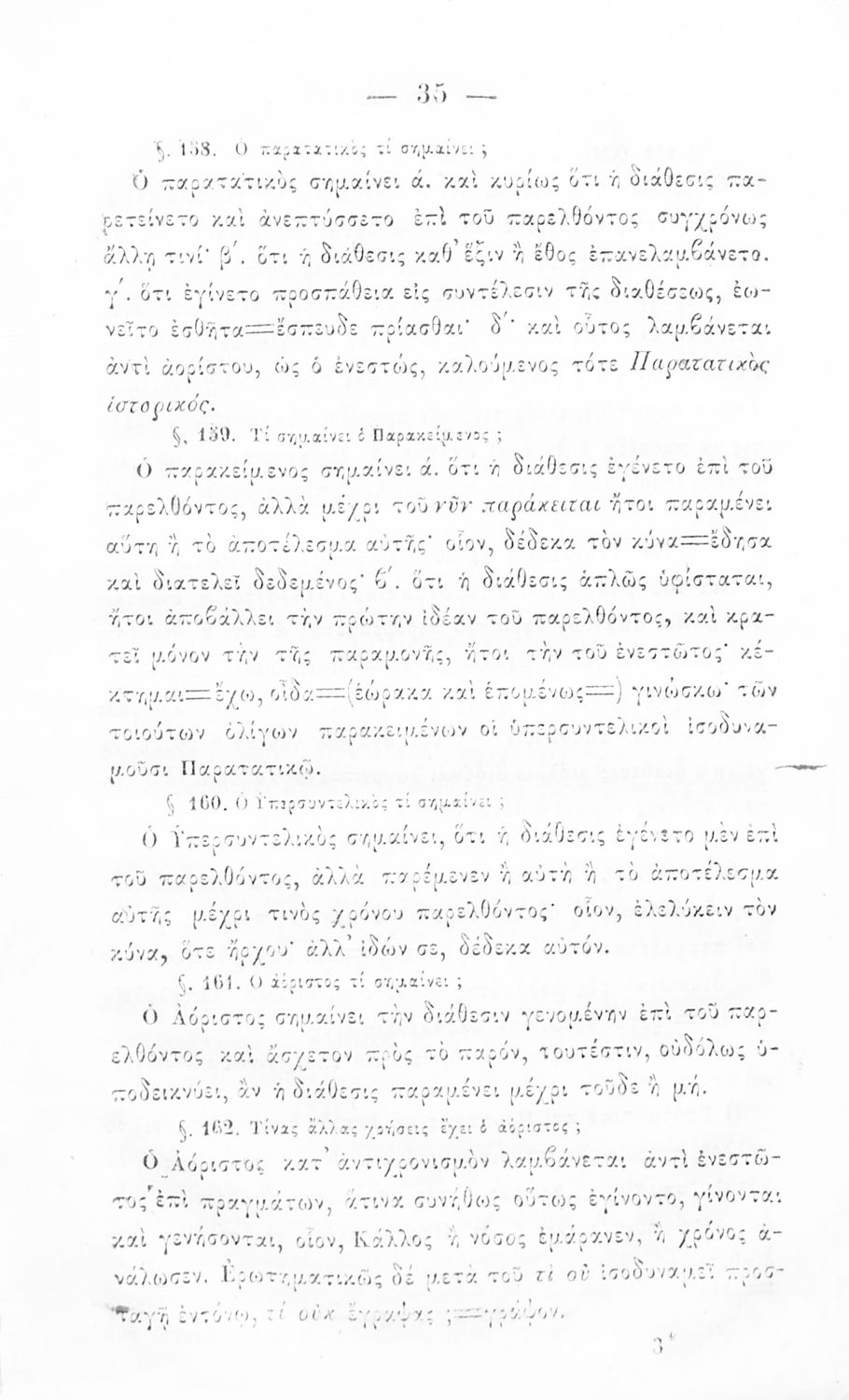 Σχολικό εγχειρίδιο Αρχαίων Ελληνικών για τα Ελληνικά Σχολεία και Παρθεναγωγεία που περιέχει τους κανόνες γραμματικής και είναι χωρισμένο σε φθογγολογικό, τυπολογικό και ετυμολογικό μέρος.