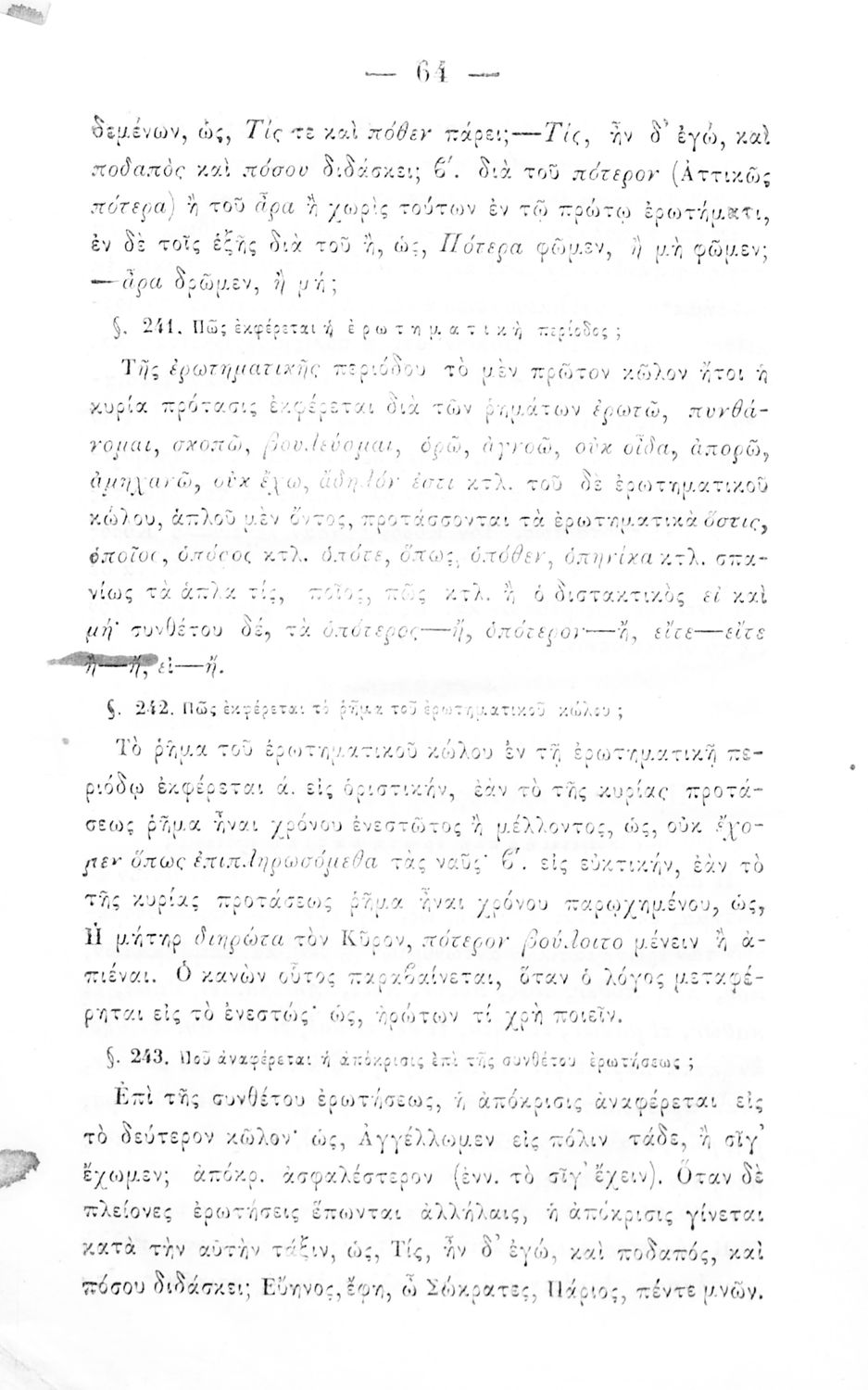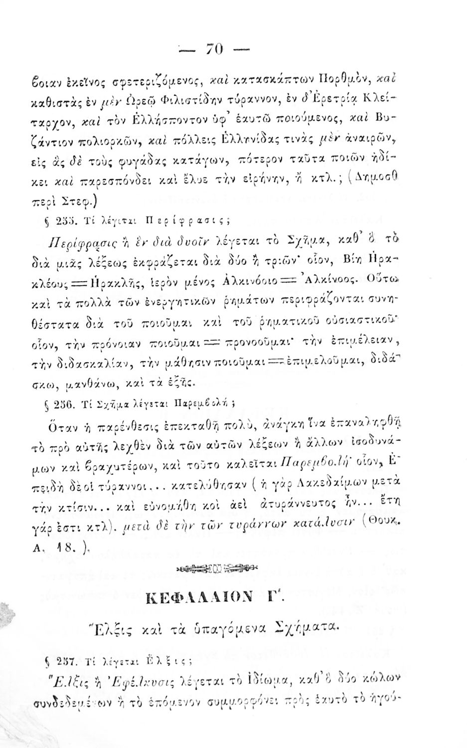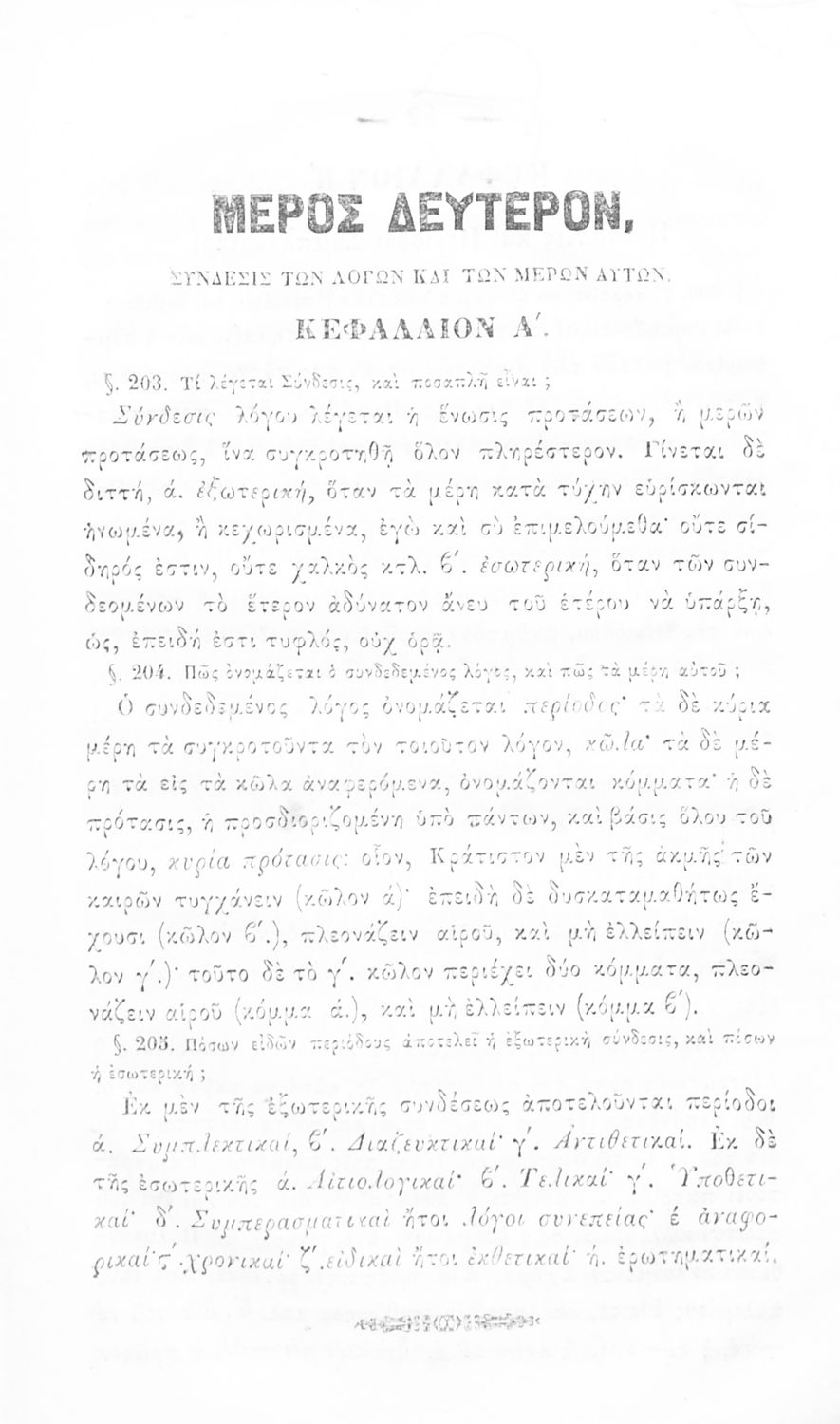 Σχολικό εγχειρίδιο Αρχαίων Ελληνικών για τα Ελληνικά Σχολεία και Παρθεναγωγεία που περιέχει τους κανόνες γραμματικής και είναι χωρισμένο σε φθογγολογικό, τυπολογικό και ετυμολογικό μέρος.