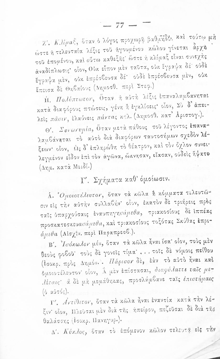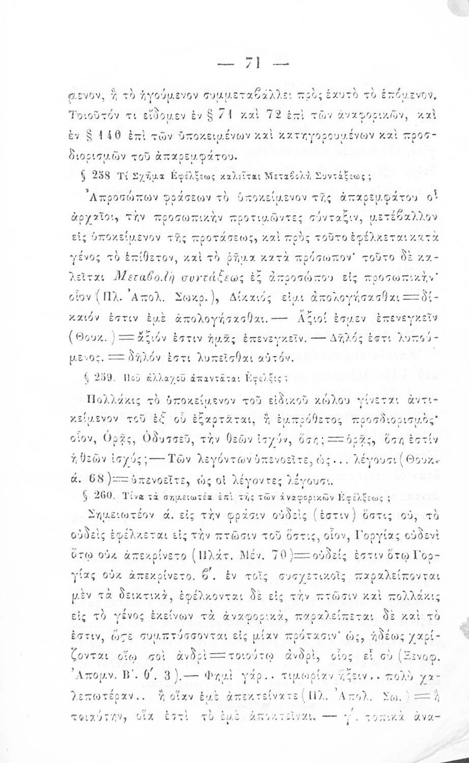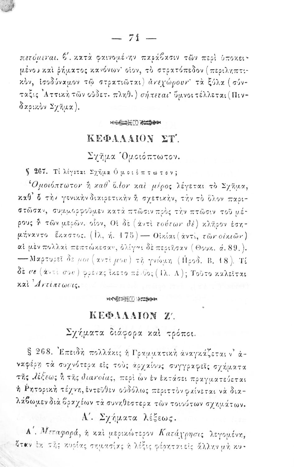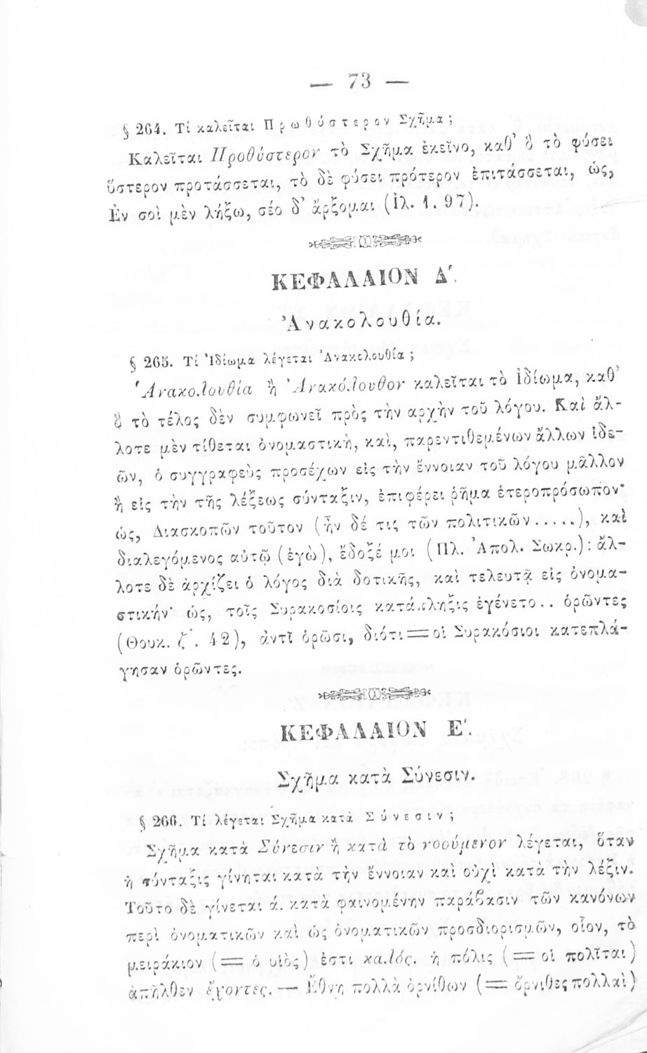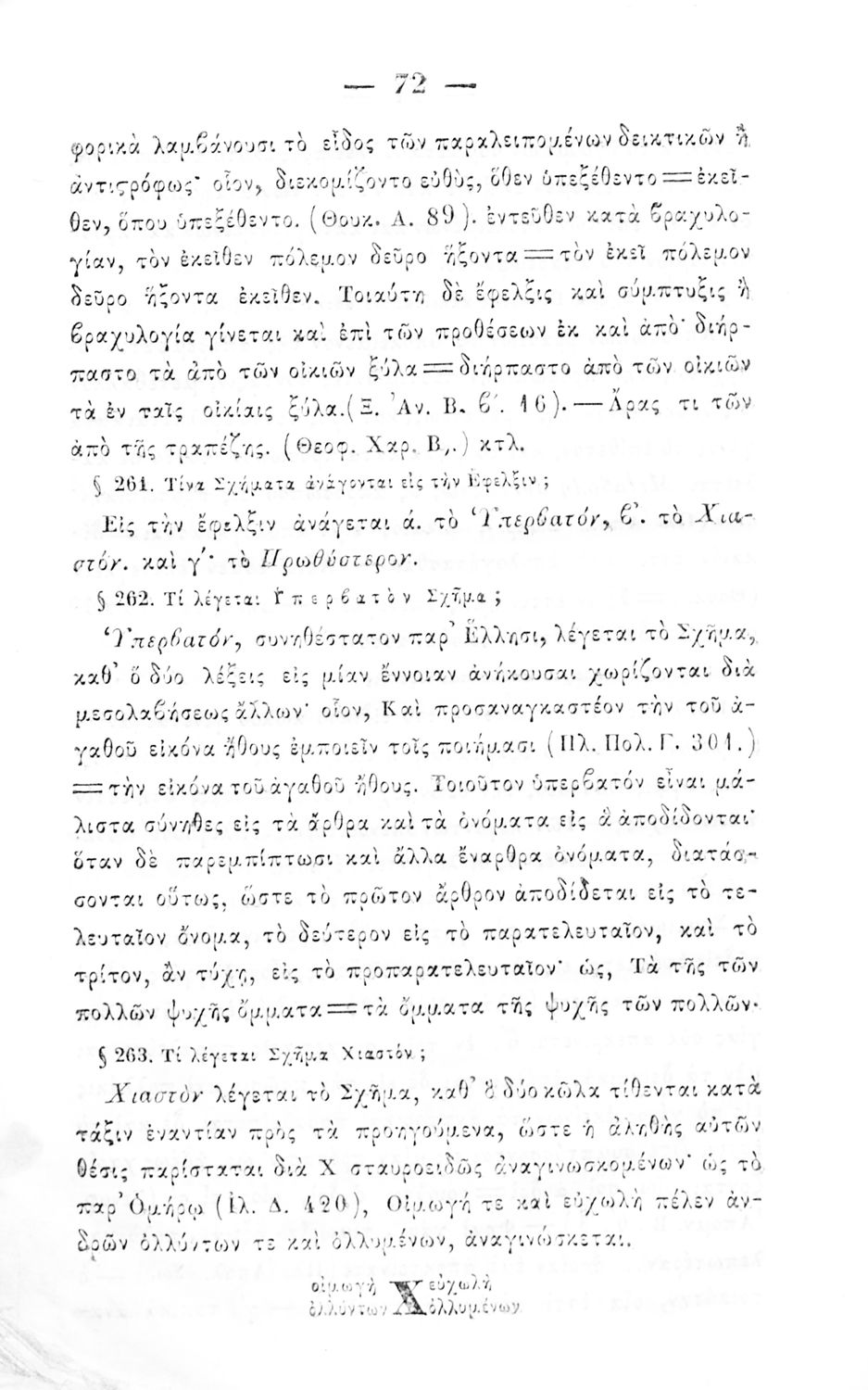 Σχολικό εγχειρίδιο Αρχαίων Ελληνικών για τα Ελληνικά Σχολεία και Παρθεναγωγεία που εστιάζει στα μέρη του λόγου και στην σύνταξή τους.