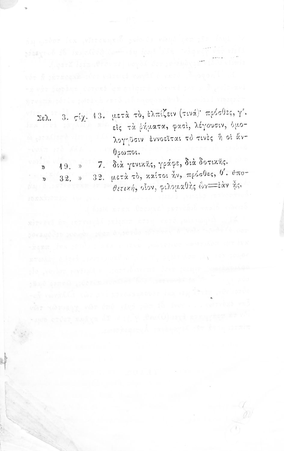 Κωδικός αναγνώρισης: 02-03076 Τίτλος: Συντακτικόν της αρχαίας ελληνικής γλώσσης προς χρήσιν των Ελληνικών Σχολείων και ιδίως των Παρθεναγωγείων Συγγραφέας: Δανιήλ Σουρμελής Μέγεθος και υπόστρωμα: Σχολικό εγχειρίδιο, σκληρό εξώφυλλο, 84 σελίδες. |