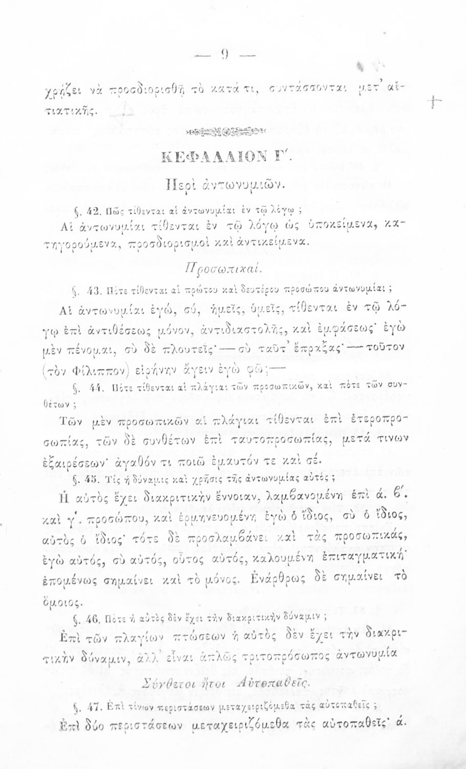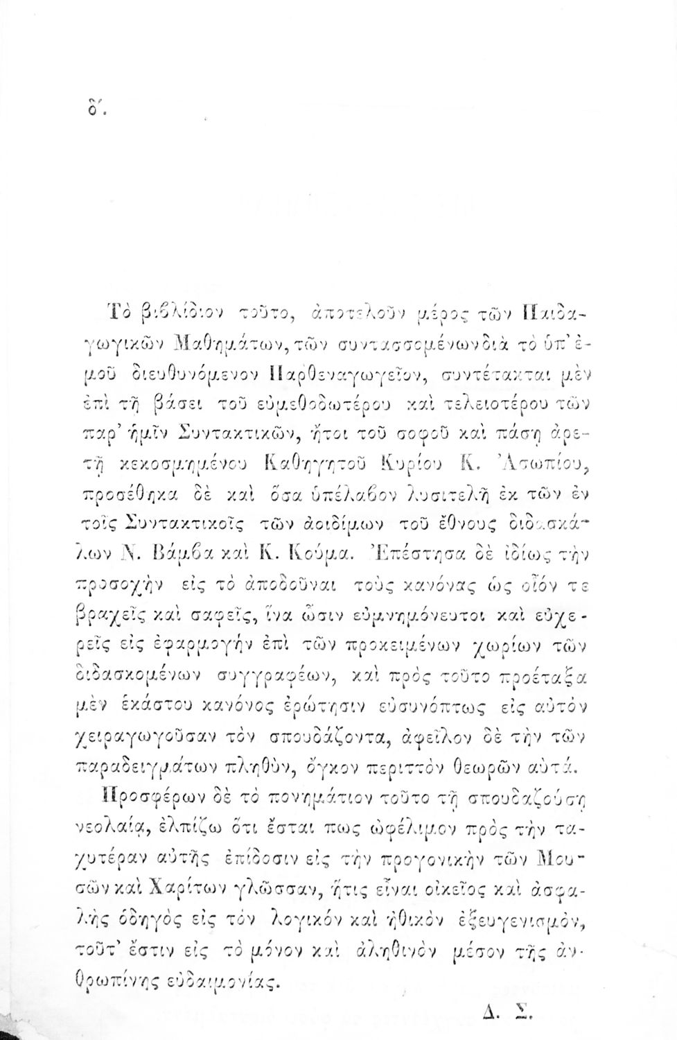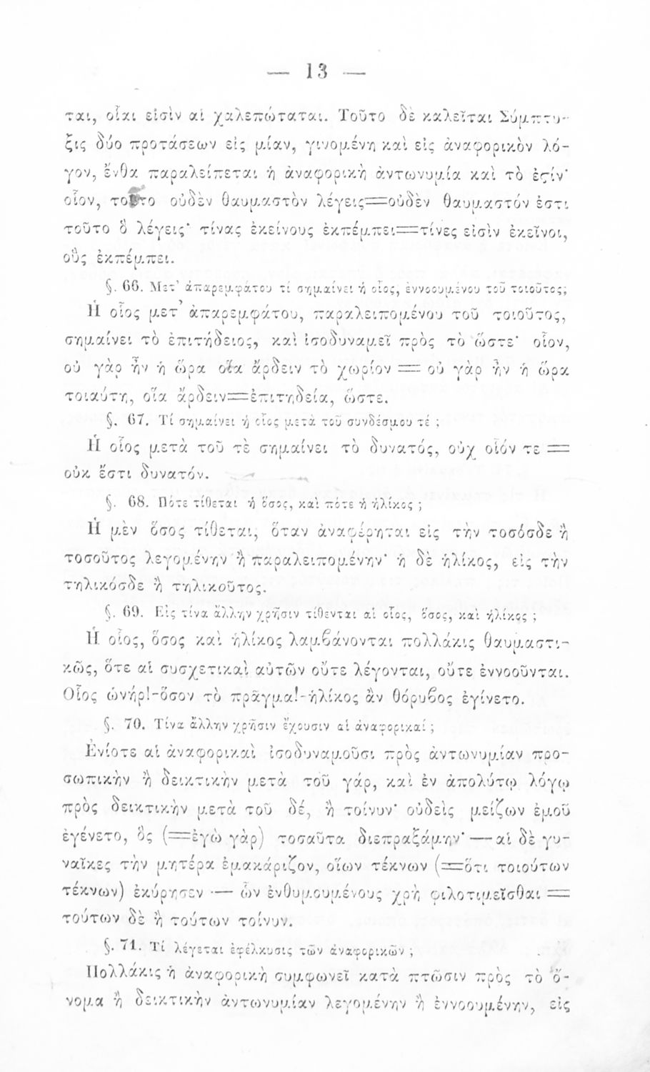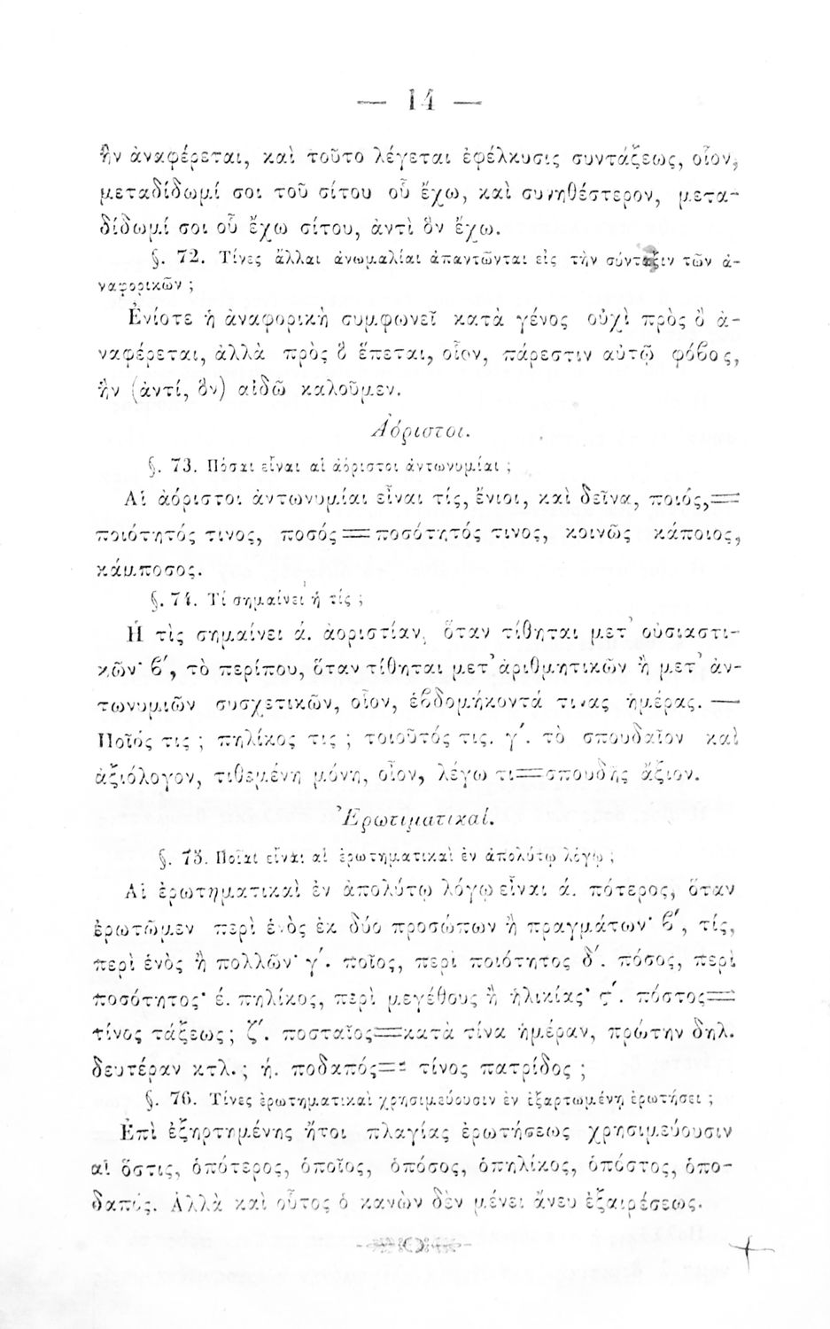 Σχολικό εγχειρίδιο Αρχαίων Ελληνικών για τα Ελληνικά Σχολεία και Παρθεναγωγεία που εστιάζει στα μέρη του λόγου και στην σύνταξή τους.
