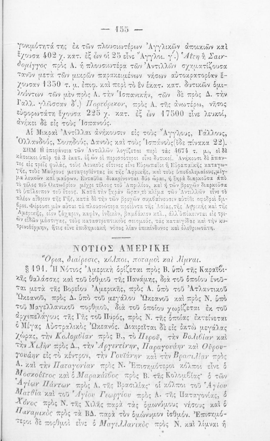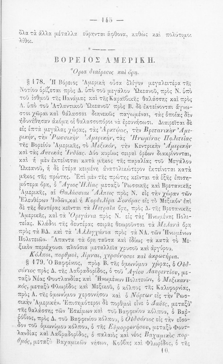 Σχολικό εγχειρίδιο Γεωγραφίας για τα Ελληνικά Σχολεία που περιλαμβάνει εισαγωγή στις βασικές έννοιες και ορισμούς της επιστήμης, και στοιχεία μαθηματικής, φυσικής και πολιτικής γεωγραφίας των πέντε ηπείρων.