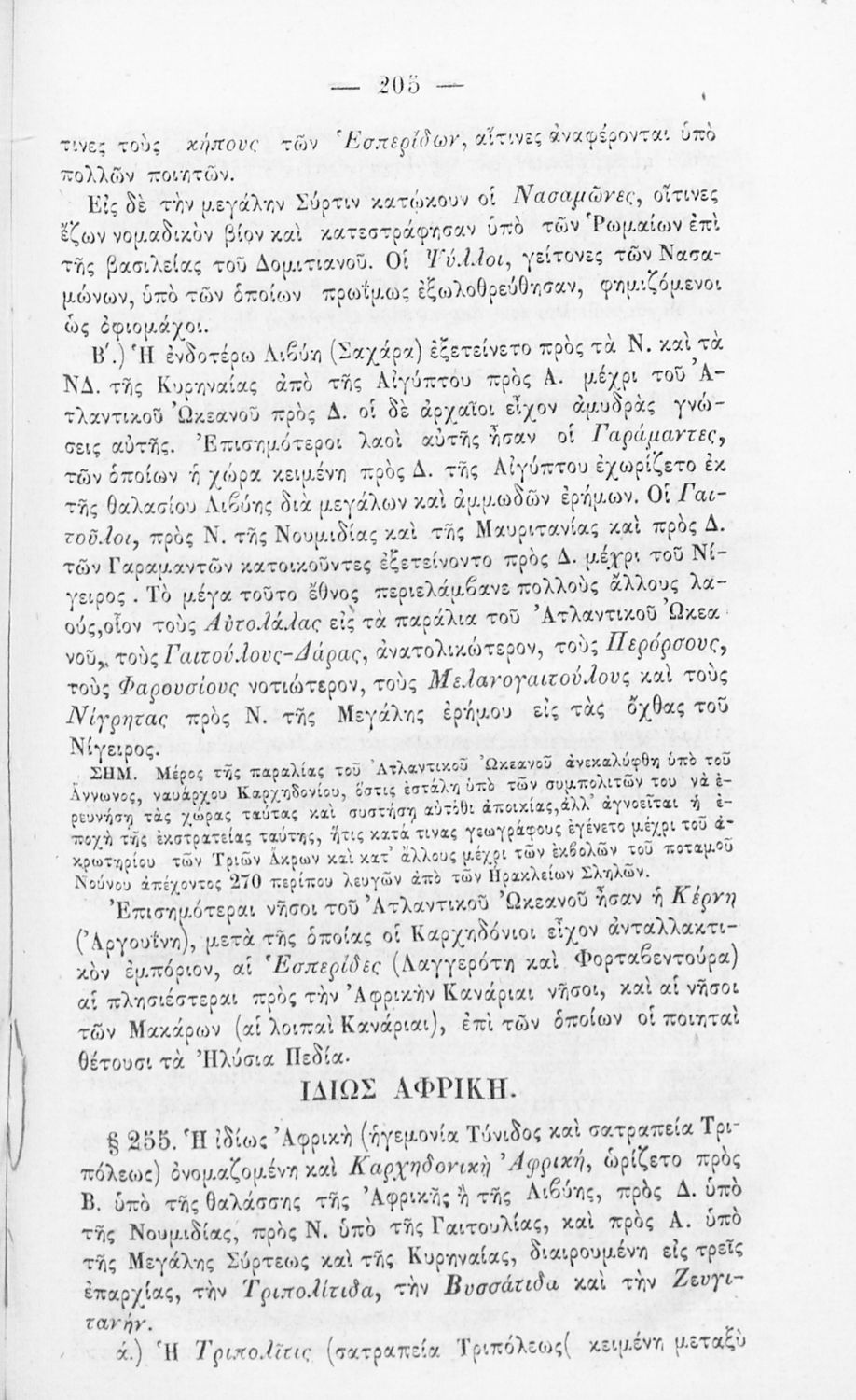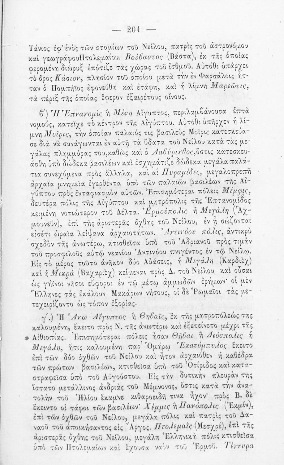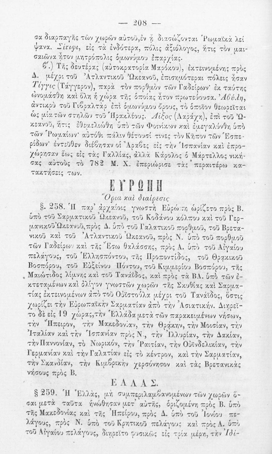 Σχολικό εγχειρίδιο Γεωγραφίας για τα Ελληνικά Σχολεία που περιλαμβάνει στοιχεία φυσικής, μαθηματικής και γεωπολιτικής γεωγραφίας και ανθρωπογεωγραφίας και αναλύει τις πέντε ηπείρους, την Ελλάδα αλλά και τη Φρυγία, τη Λυδία, τη Βιθυνία και τη Φοινίκη.