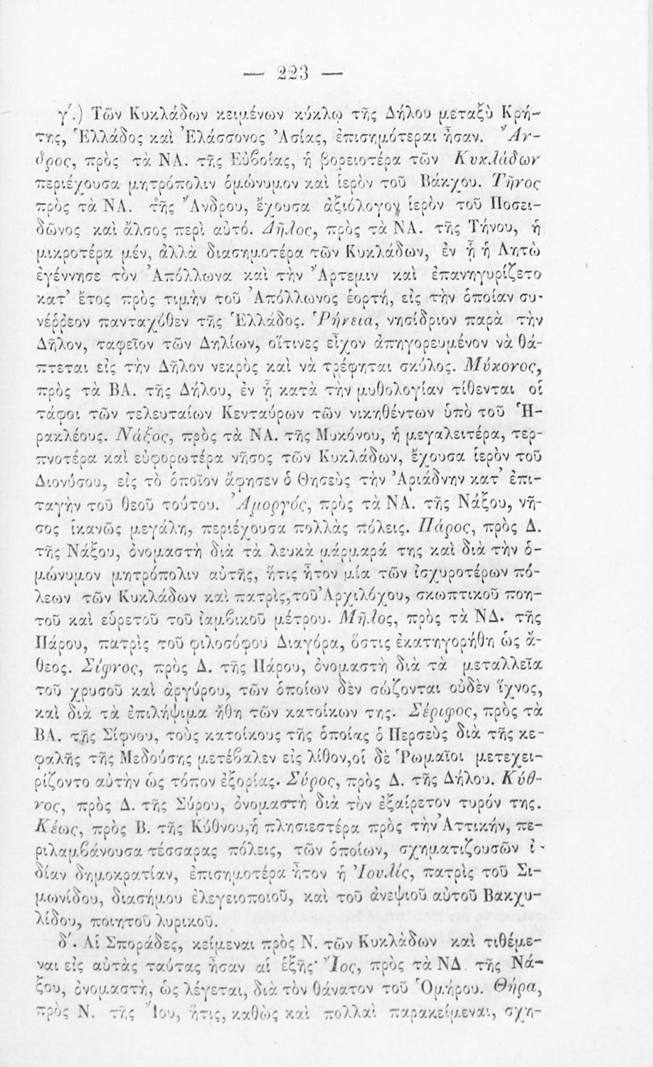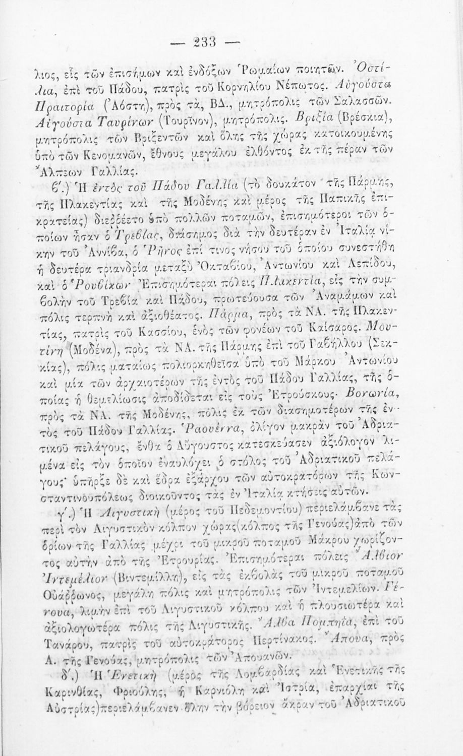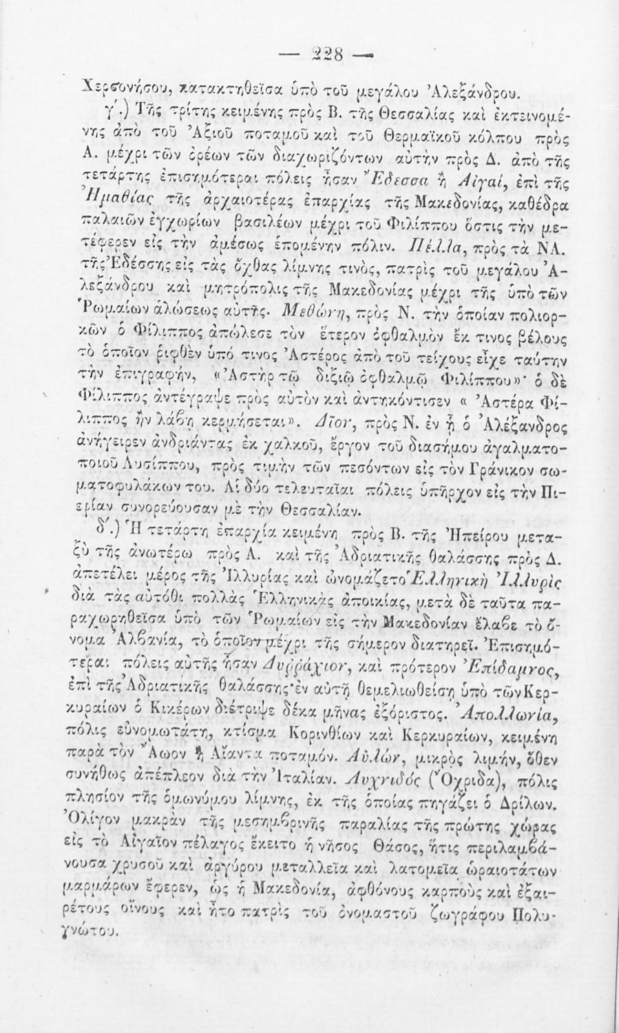 Σχολικό εγχειρίδιο Γεωγραφίας για τα Ελληνικά Σχολεία που περιλαμβάνει στοιχεία φυσικής, μαθηματικής και γεωπολιτικής γεωγραφίας και ανθρωπογεωγραφίας και αναλύει τις πέντε ηπείρους, την Ελλάδα αλλά και τη Φρυγία, τη Λυδία, τη Βιθυνία και τη Φοινίκη.