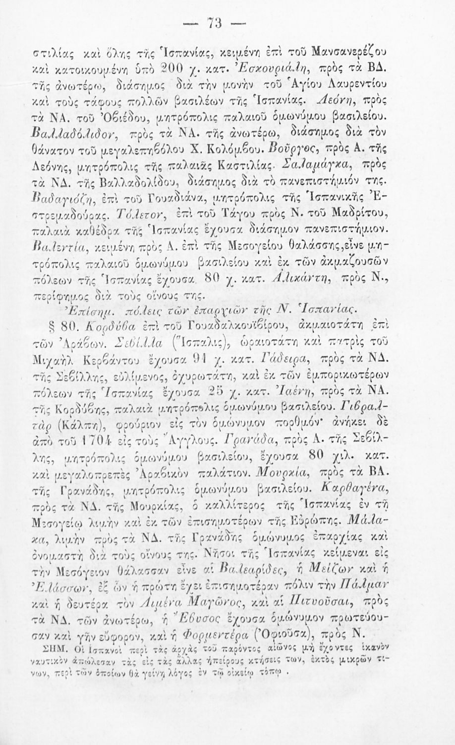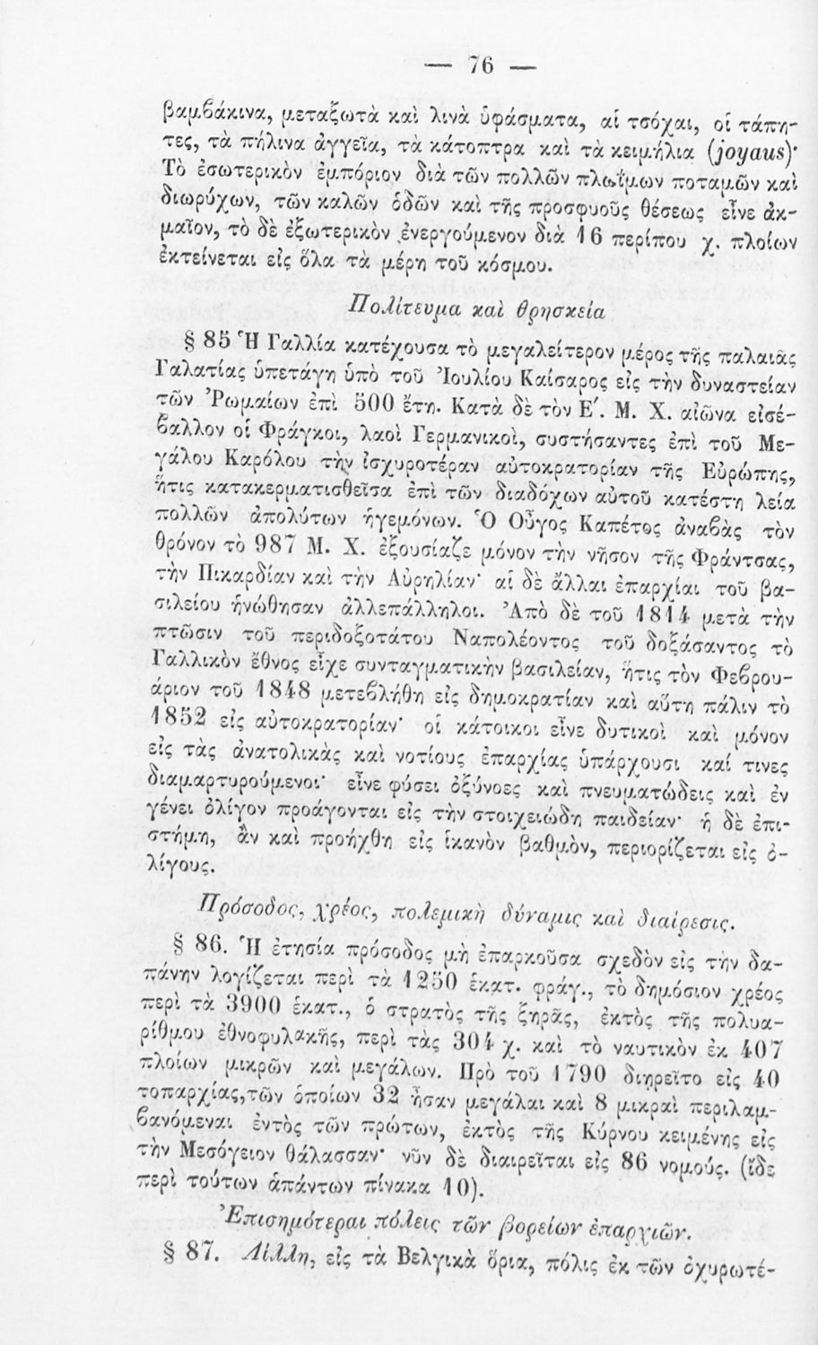 Σχολικό εγχειρίδιο Γεωγραφίας για τα Ελληνικά Σχολεία που περιλαμβάνει στοιχεία φυσικής, μαθηματικής και γεωπολιτικής γεωγραφίας και ανθρωπογεωγραφίας και αναλύει τις πέντε ηπείρους, την Ελλάδα αλλά και τη Φρυγία, τη Λυδία, τη Βιθυνία και τη Φοινίκη.