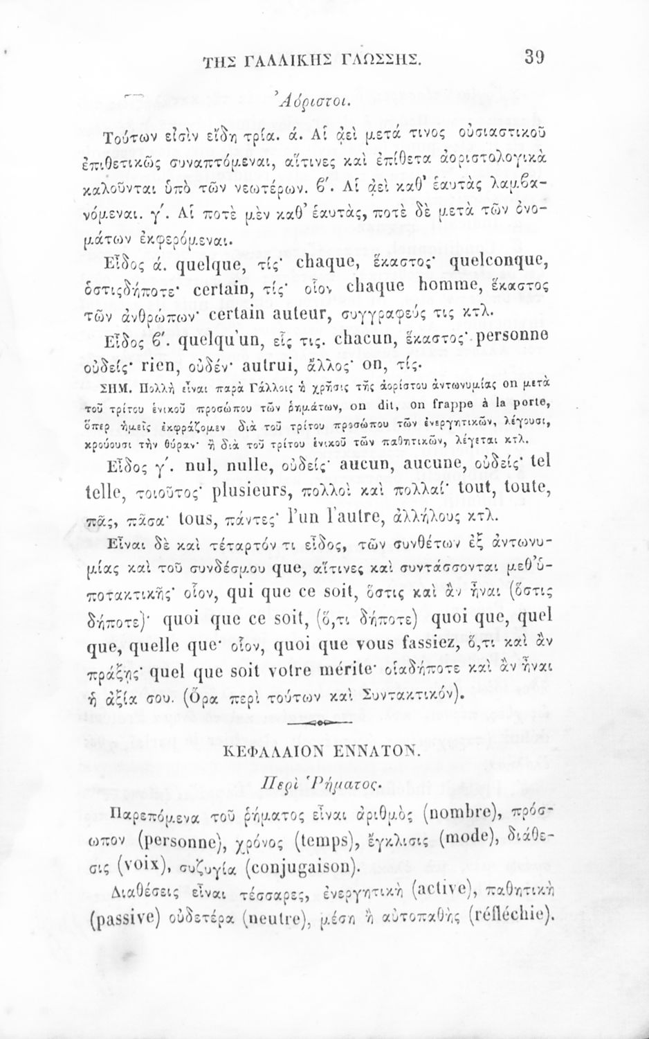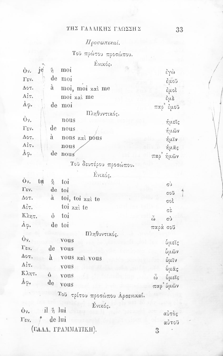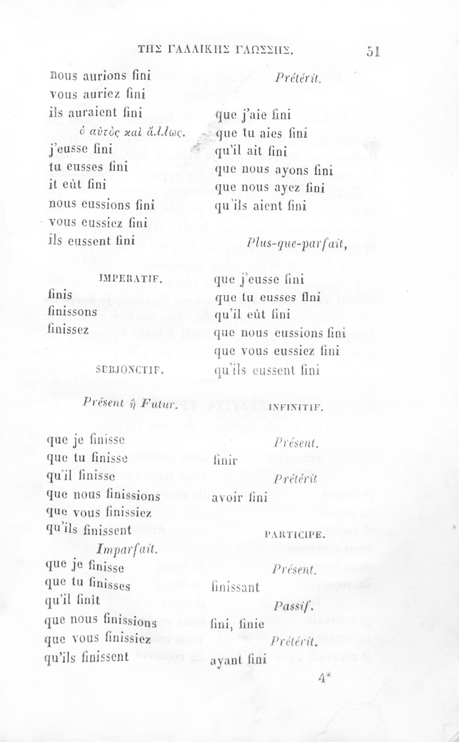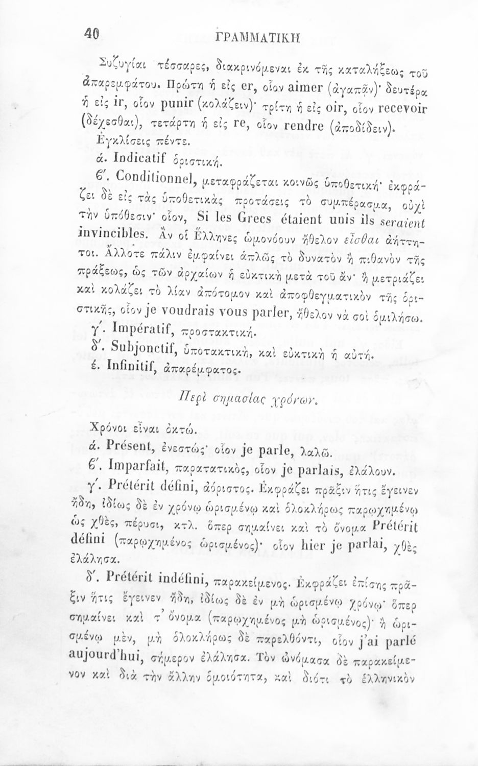 Κωδικός αναγνώρισης: 02-03092 Τίτλος: Γραμματική της γαλλικής γλώσσης, συνταχθείσα προς χρήσιν των Γυμνασίων και σχολείων της Ελλάδος Συγγραφέας: Ιωάννης Δ. Καρασούτσας Μέγεθος και υπόστρωμα: Σχολικό εγχειρίδιο, μαλακό εξώφυλλο, 174 σελίδες. |