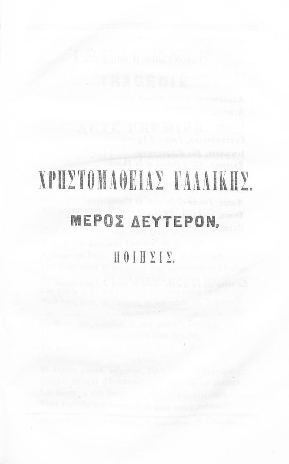 Κωδικός αναγνώρισης: 02-03093 Τίτλος: Χρηστομάθεια γαλλική ήτοι συλλογή τεμαχίων και ολοσχερών έργων εκ των αρίστων λογογράφων και ποιητών της Γαλλίας παλαιών τε και νεωτέρων, μετά σημειώσεων εξηγητικών του κειμένου Συγγραφέας: Ιωάννης Δ. Καρασούτσας Μέγεθος και υπόστρωμα: Μαθητικό βοήθημα, σκληρό εξώφυλλο, 494 σελίδες. |