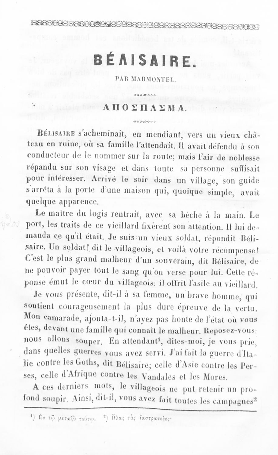 Τίτλος: Χρηστομάθεια γαλλική ήτοι συλλογή τεμαχίων και ολοσχερών έργων εκ των αρίστων λογογράφων και ποιητών της Γαλλίας παλαιών τε και νεωτέρων, μετά σημειώσεων εξηγητικών του κειμένου