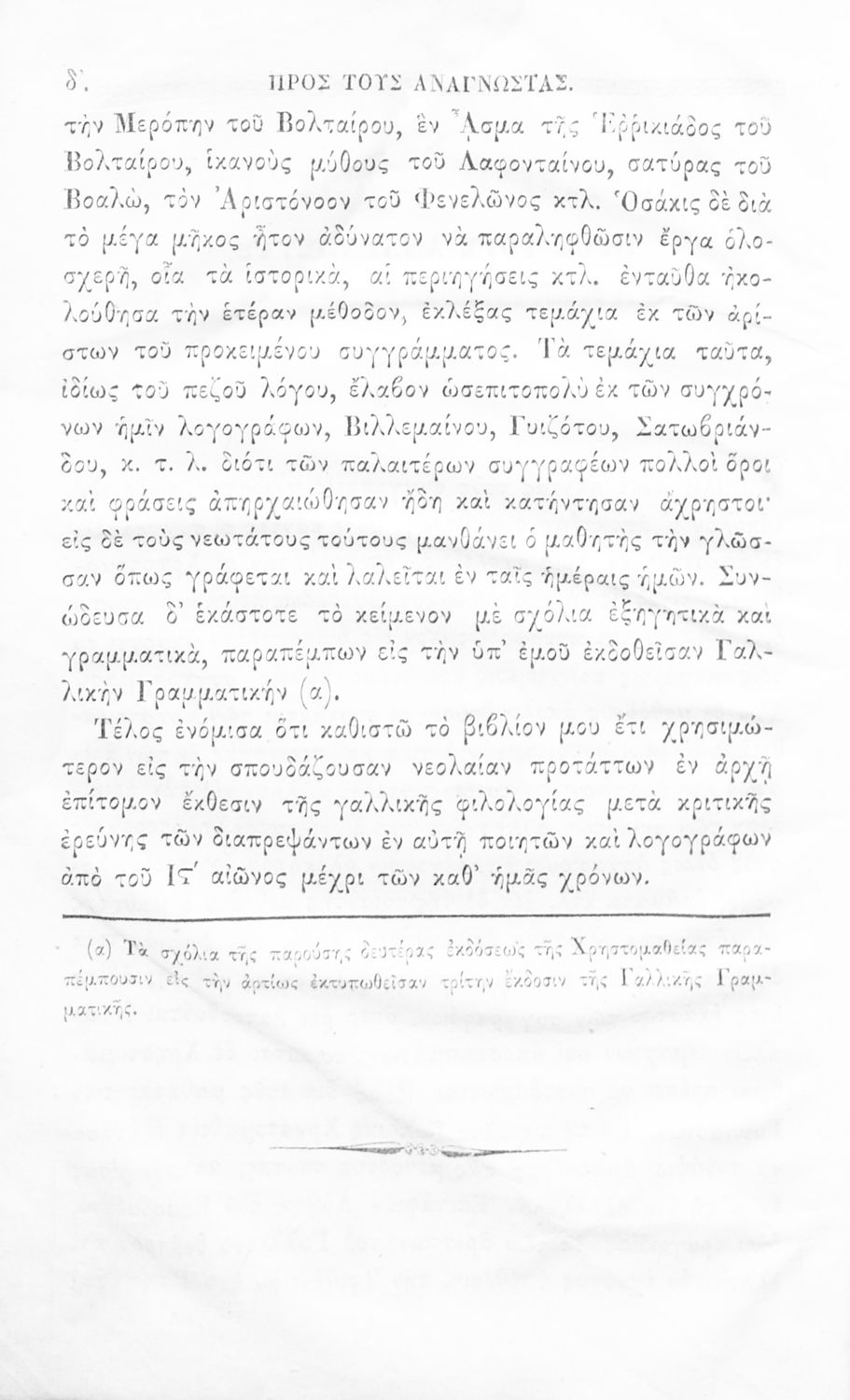 Χρηστομάθεια γαλλική ήτοι συλλογή τεμαχίων και ολοσχερών έργων εκ των αρίστων λογογράφων και ποιητών της Γαλλίας παλαιών τε και νεωτέρων, μετά σημειώσεων εξηγητικών του κειμένου