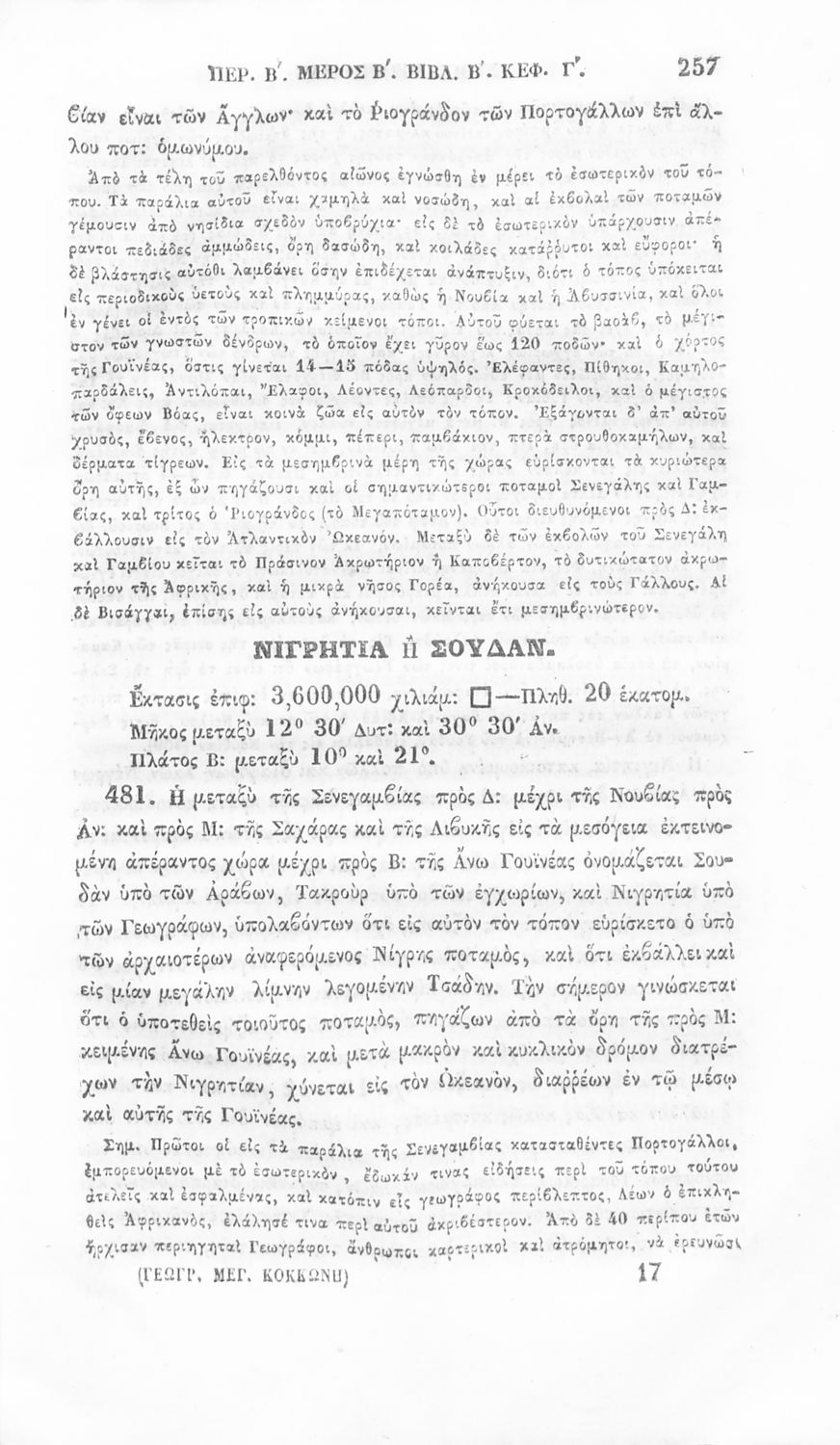 Γεωγραφία Στοιχειώδης. Μαθηματική, Φυσική και Πολιτική Αρχαία και Νεωτέρα, Περιόδου Β΄ . Προς χρήσιν των Ελληνικών Σχολείων