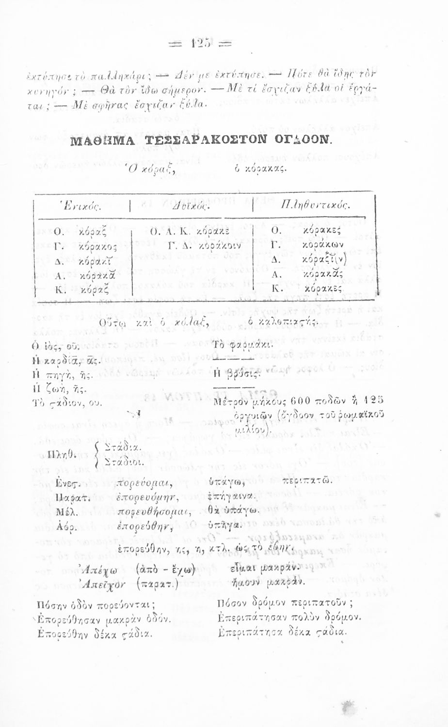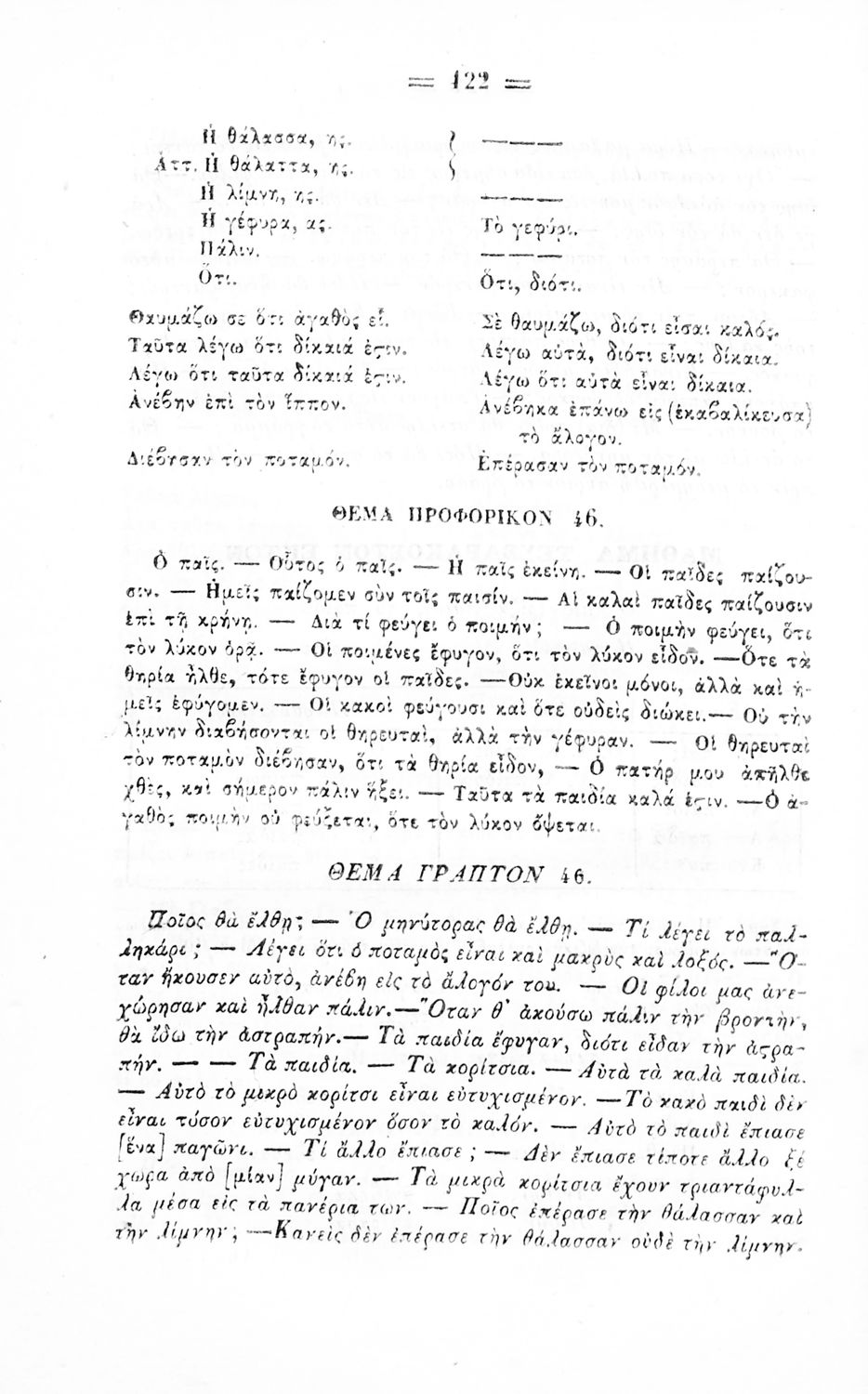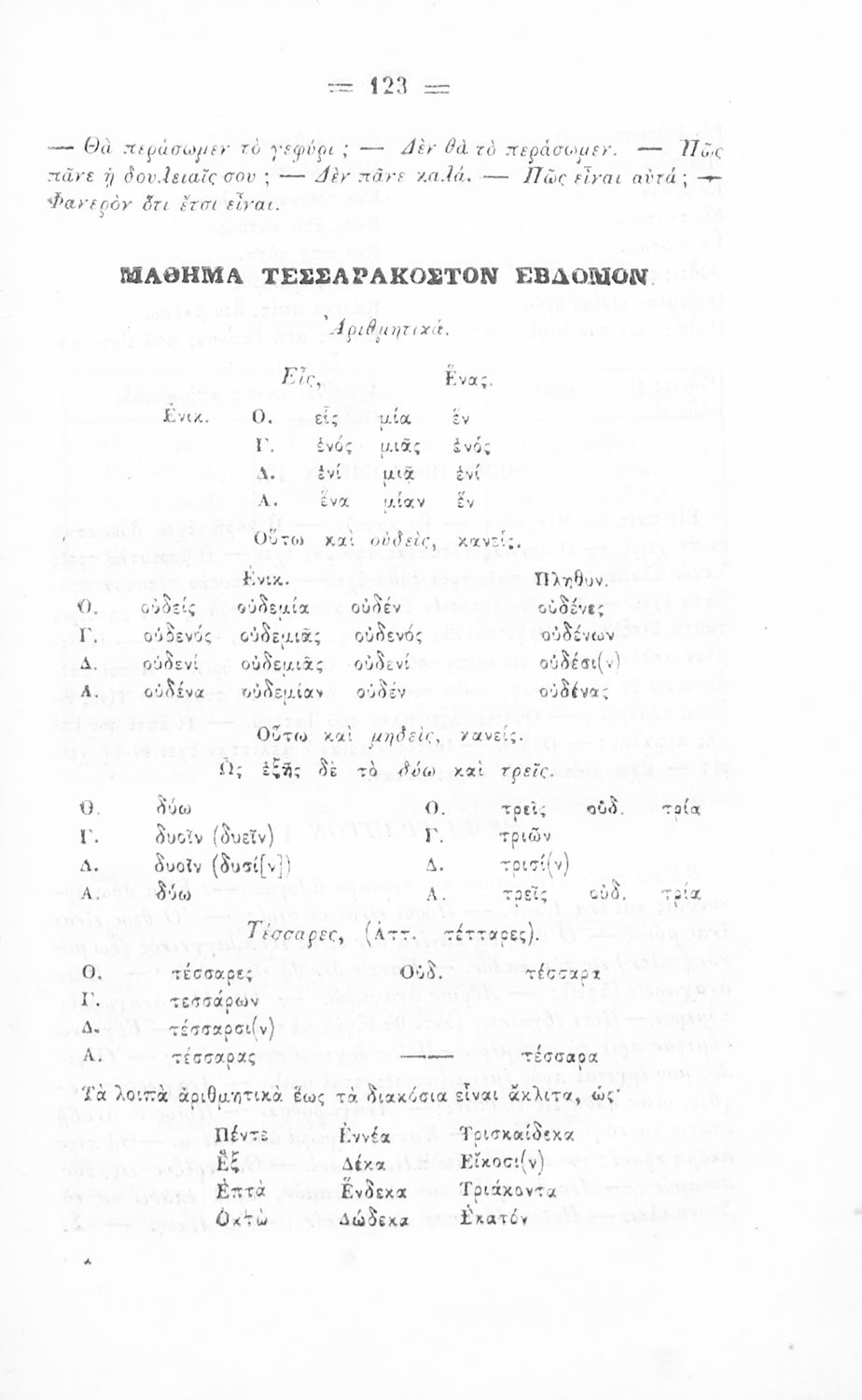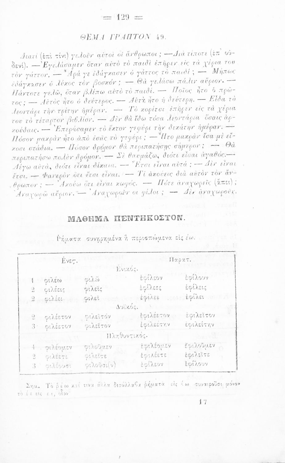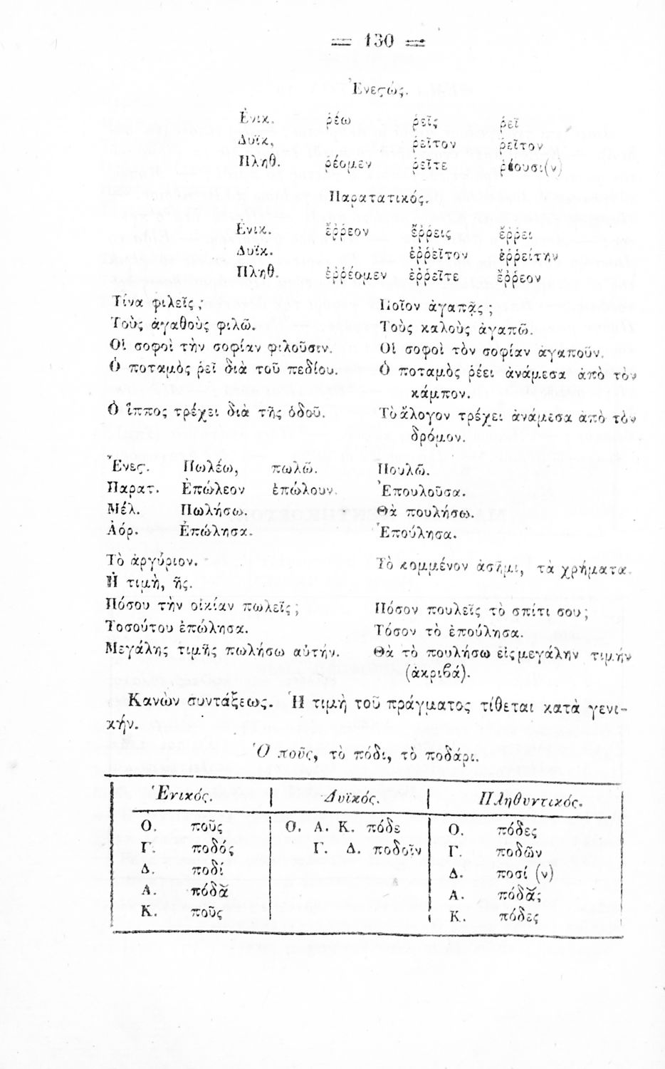 Σχολικό εγχειρίδιο Αρχαίων Ελληνικών για τα Ελληνικά Σχολεία και Παρθεναγωγεία που περιέχει τους κανόνες γραμματικής και είναι χωρισμένο σε φθογγολογικό, τυπολογικό και ετυμολογικό μέρος.