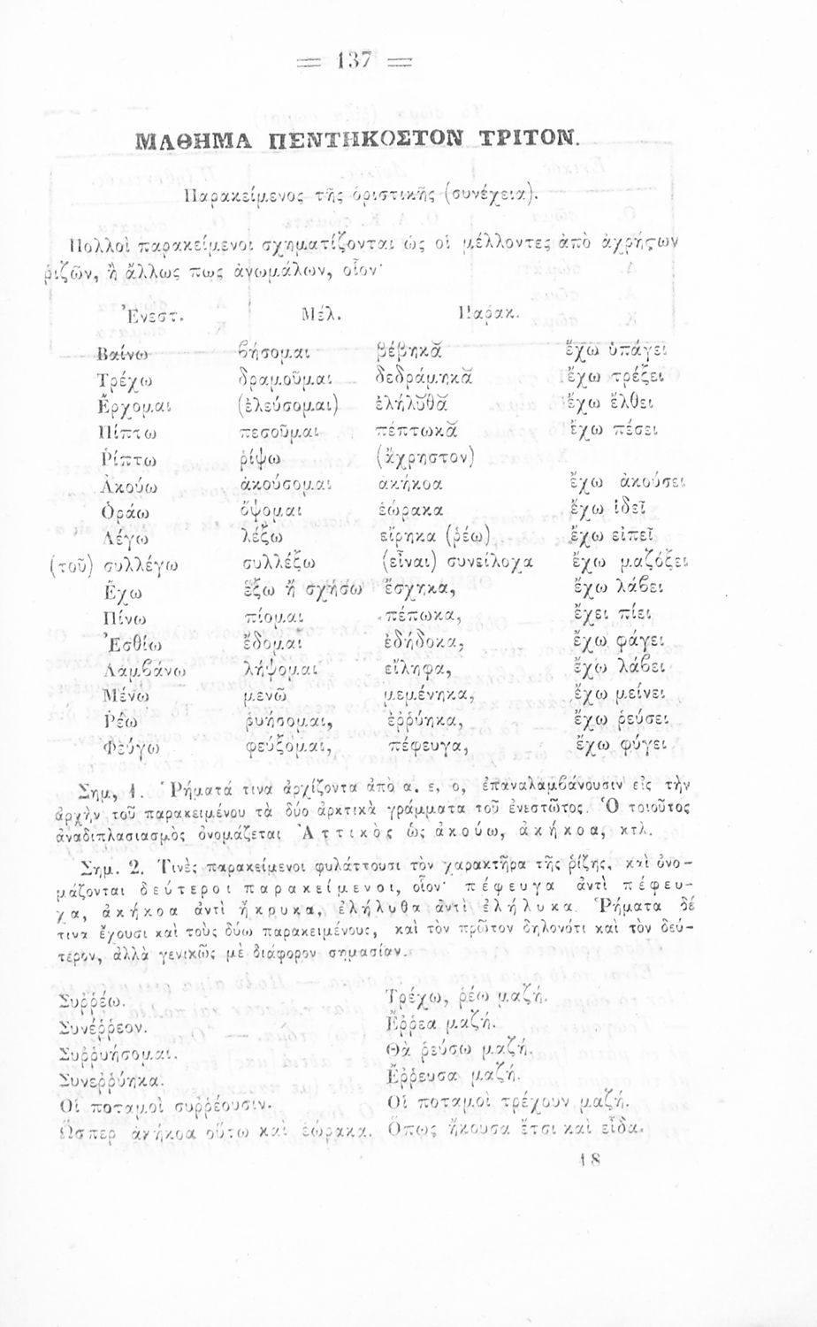 Μαθητικό βοήθημα Αρχαίων Ελληνικών Γυμνασίου, Ελληνικού Σχολείου και Παρθεναγωγείου που περιέχει τα ανώμαλα ρήματα της αττικής διαλέκτου και γραμματικές σημειώσεις.