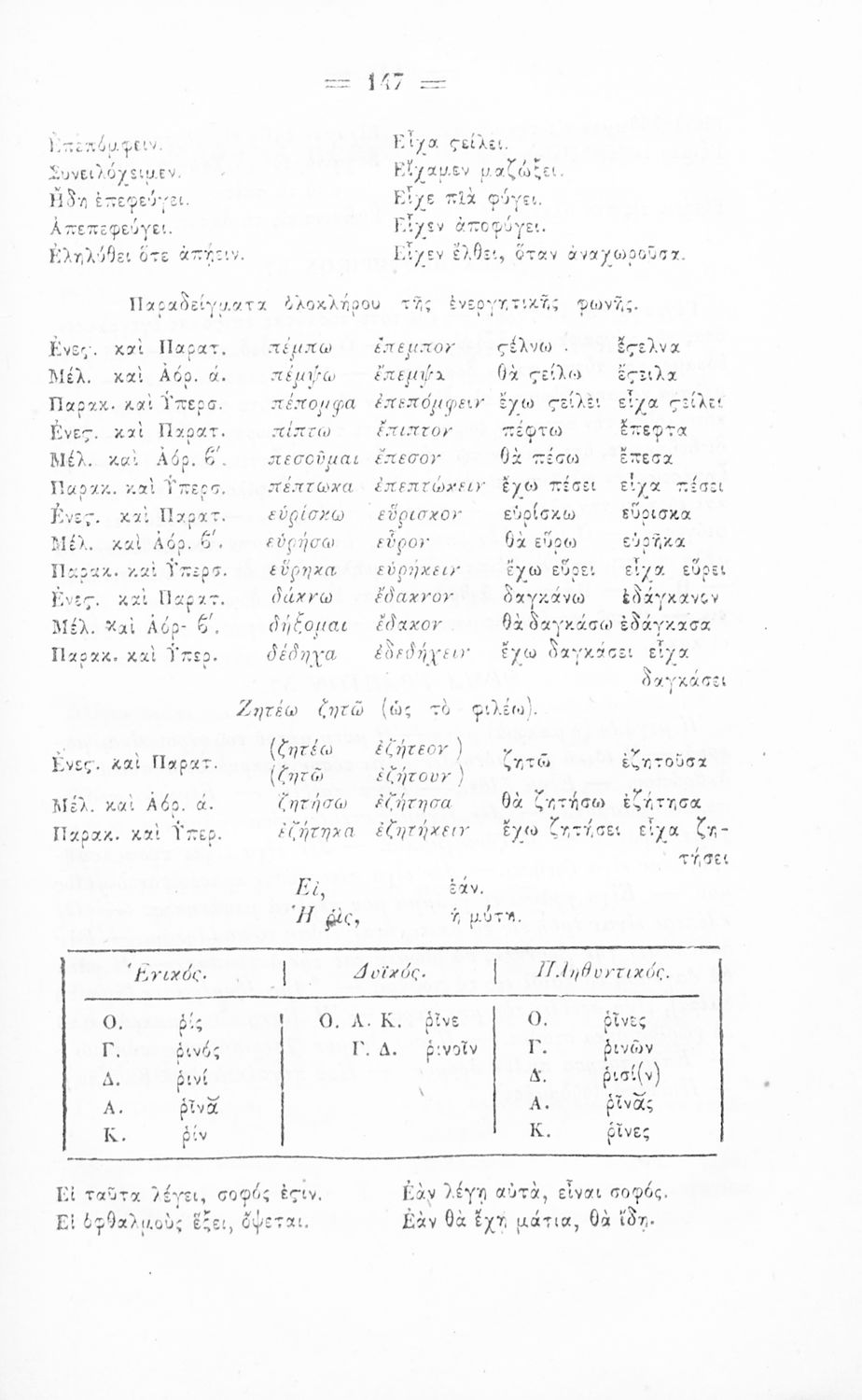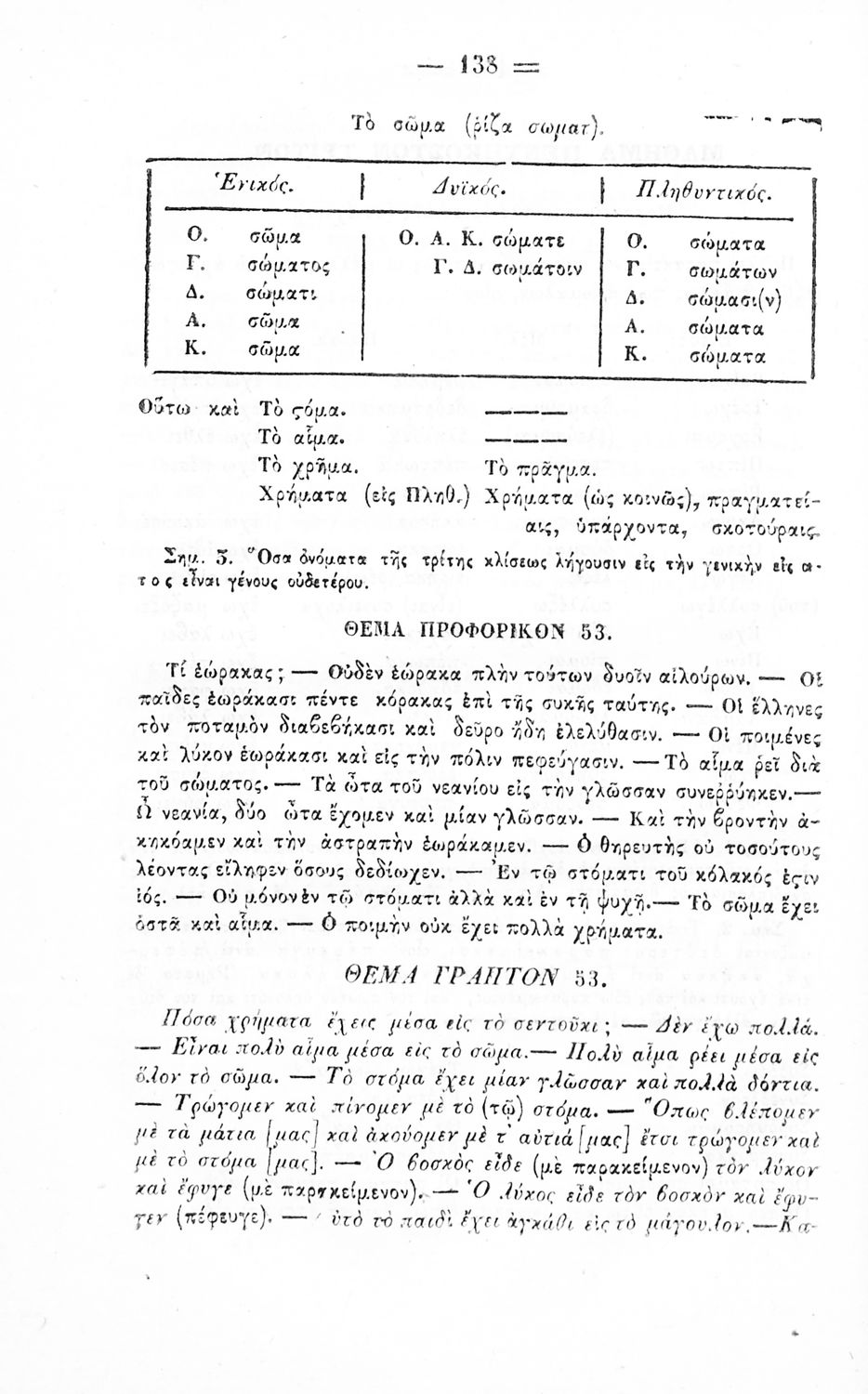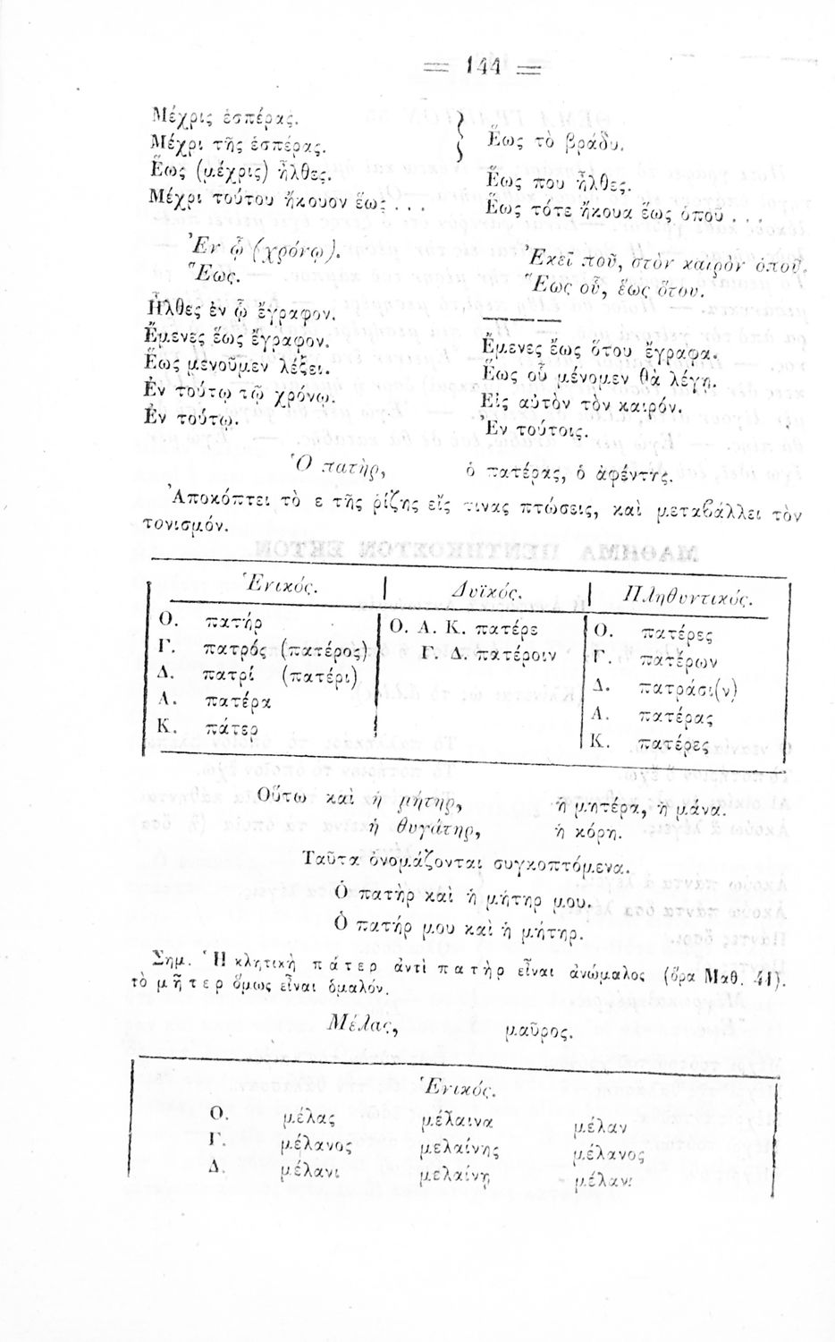 Σχολικό εγχειρίδιο Αρχαίων Ελληνικών για τα Ελληνικά Σχολεία, Παρθεναγωγεία και Γυμνάσια που περιέχει τους κανόνες γραμματικής και είναι χωρισμένο σε φθογγολογικό, τυπολογικό και ετυμολογικό μέρος.