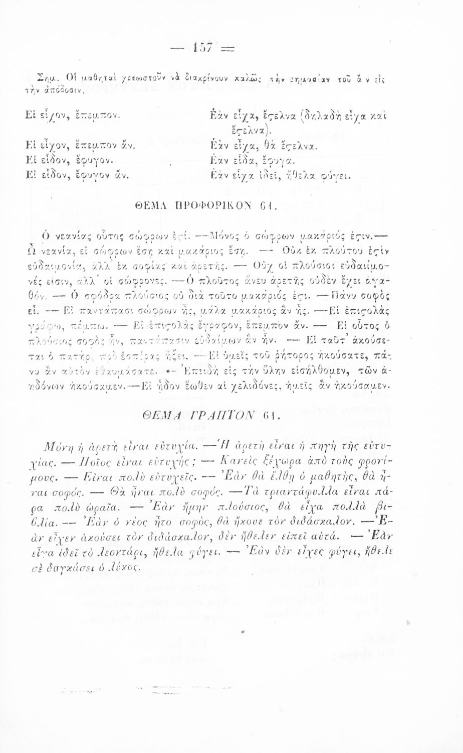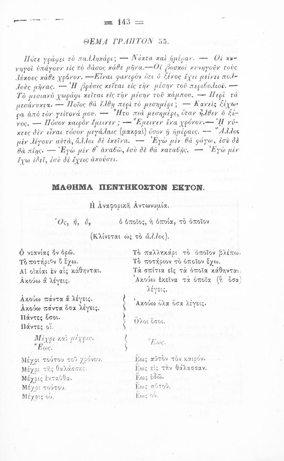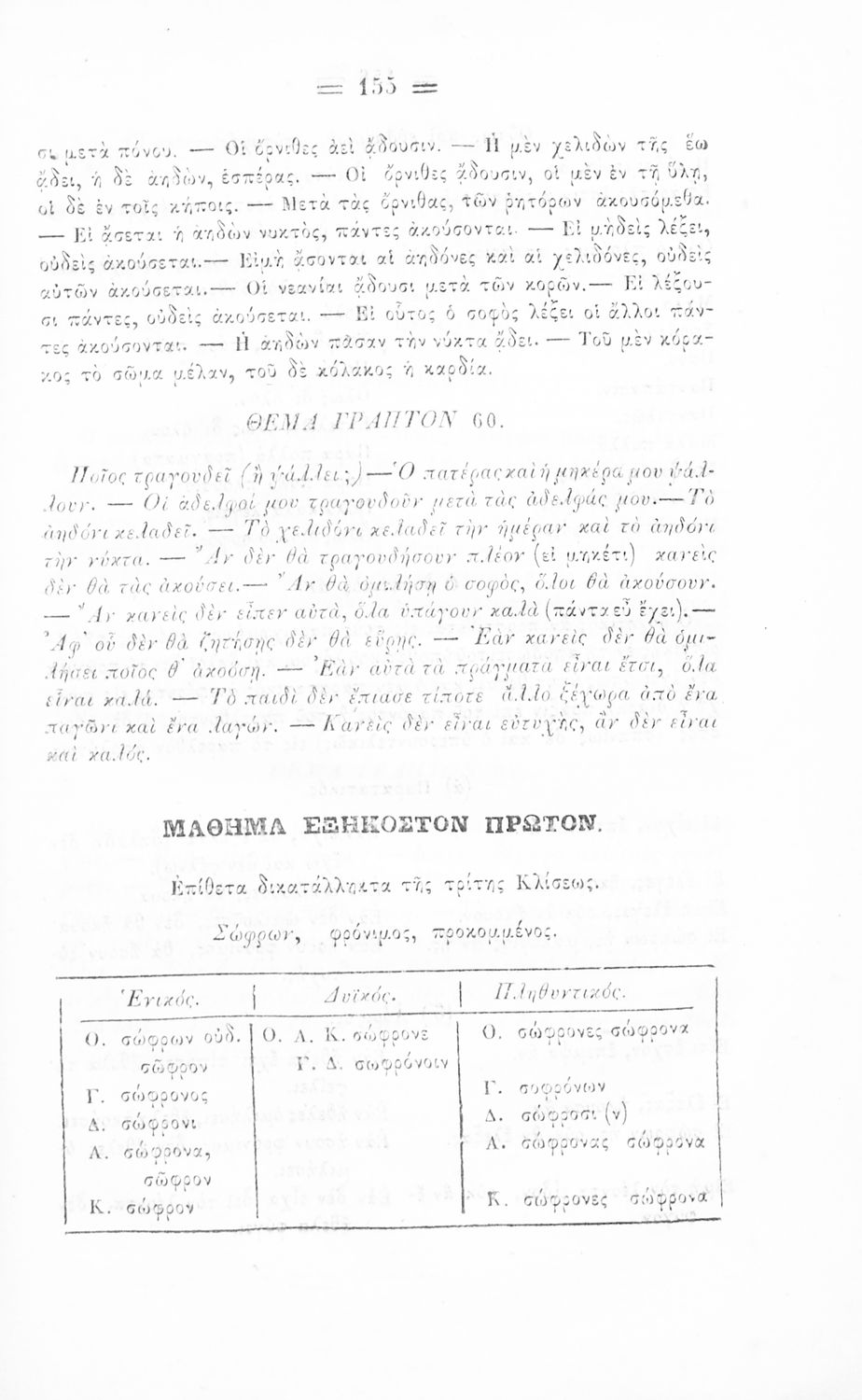 Σχολικό εγχειρίδιο Αρχαίων Ελληνικών για τα Ελληνικά Σχολεία, Παρθεναγωγεία και Γυμνάσια που περιέχει τους κανόνες γραμματικής και είναι χωρισμένο σε φθογγολογικό, τυπολογικό και ετυμολογικό μέρος.