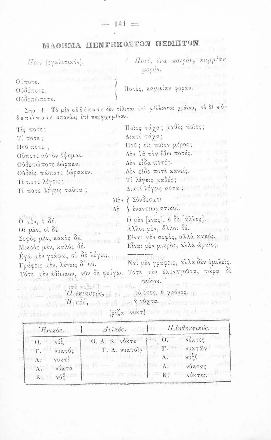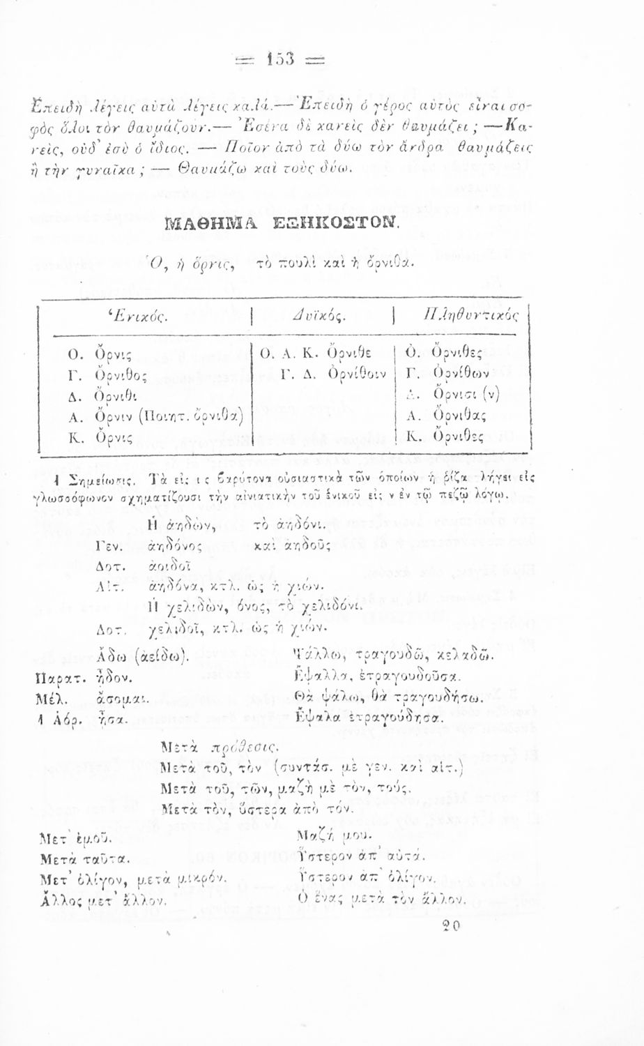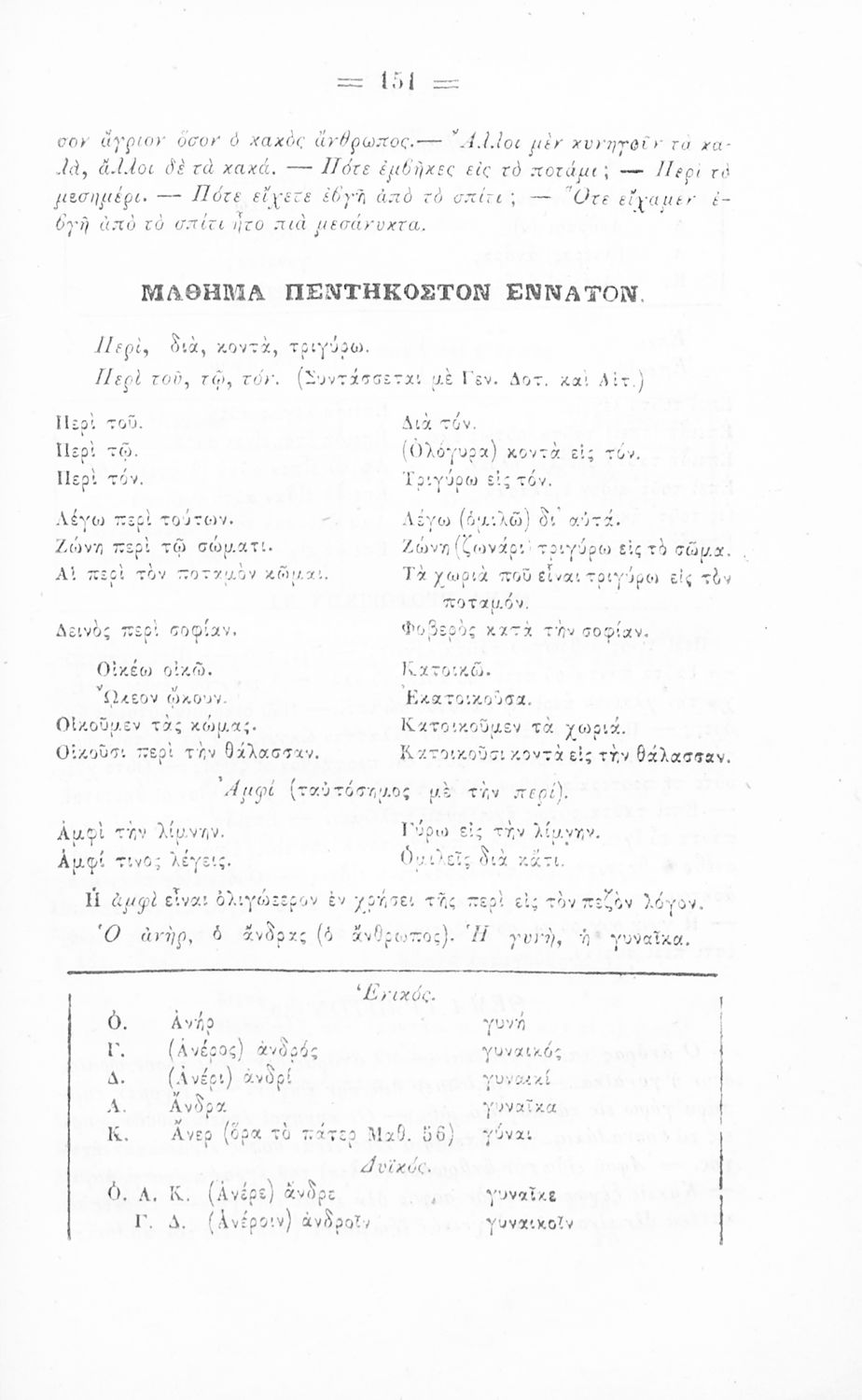 Σχολικό εγχειρίδιο Αρχαίων Ελληνικών για τα Ελληνικά Σχολεία και τα Ανώτερα Παρθεναγωγεία που εξετάζει τα μέρη του λόγου και την σύνταξή τους.