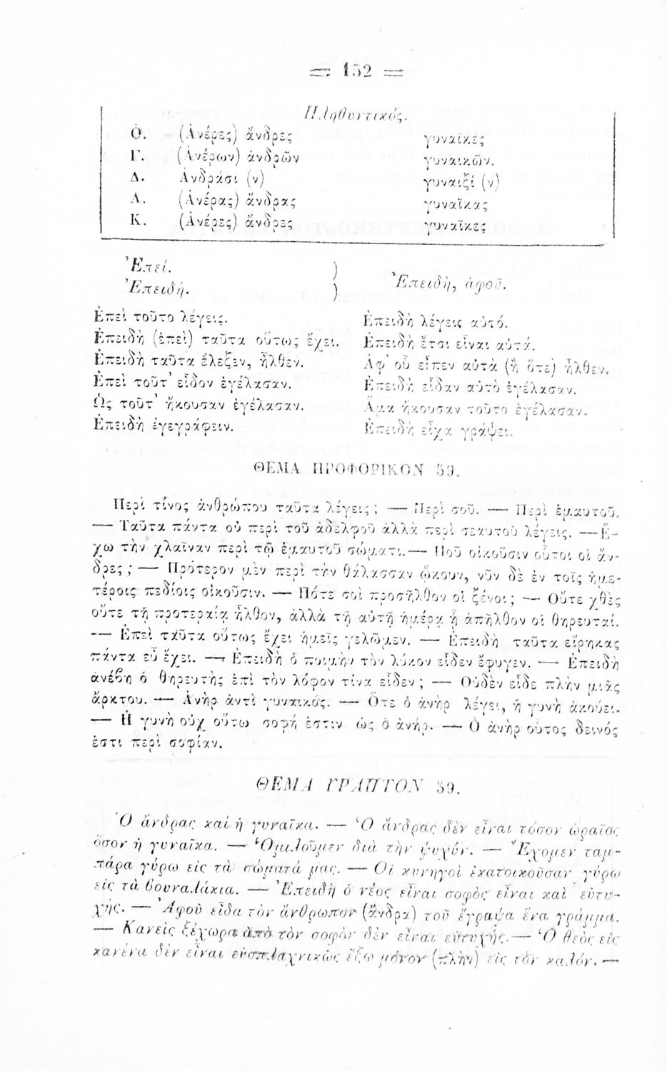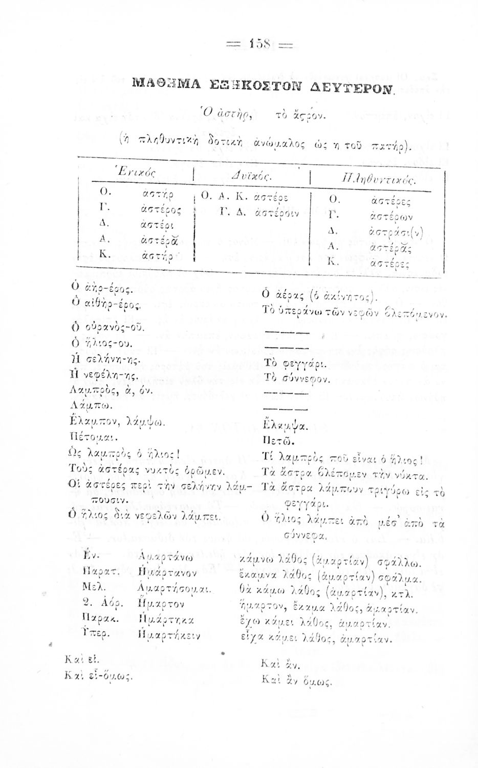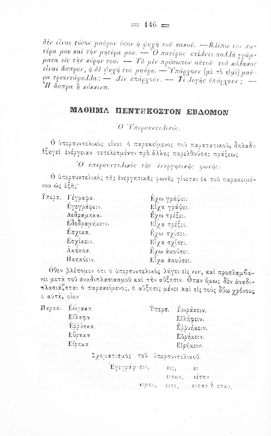 Σχολικό εγχειρίδιο Αρχαίων Ελληνικών για τα Ελληνικά Σχολεία και Παρθεναγωγεία που περιέχει τους κανόνες γραμματικής και είναι χωρισμένο σε φθογγολογικό, τυπολογικό και ετυμολογικό μέρος.